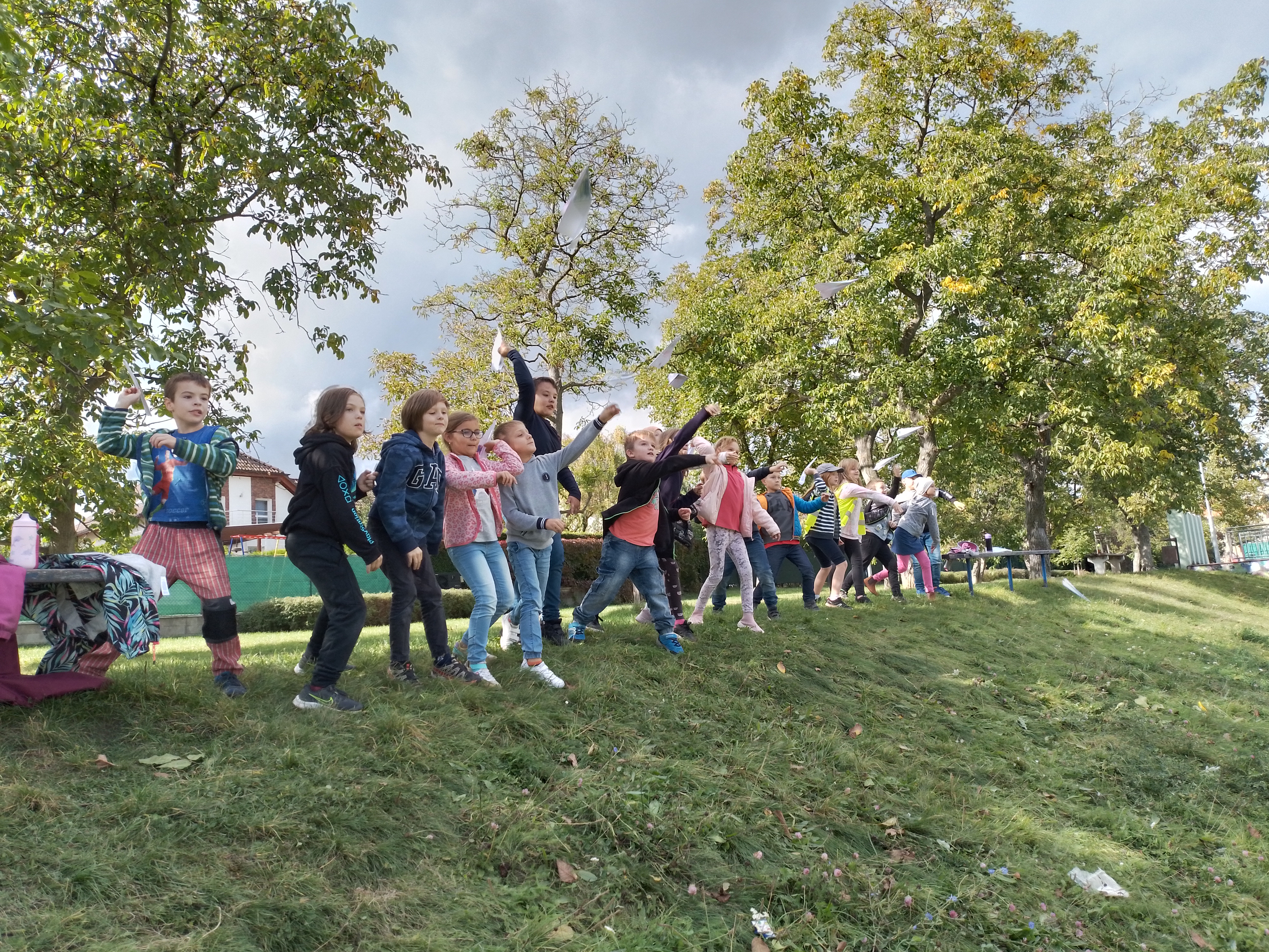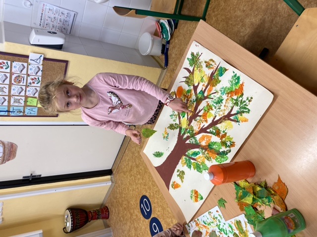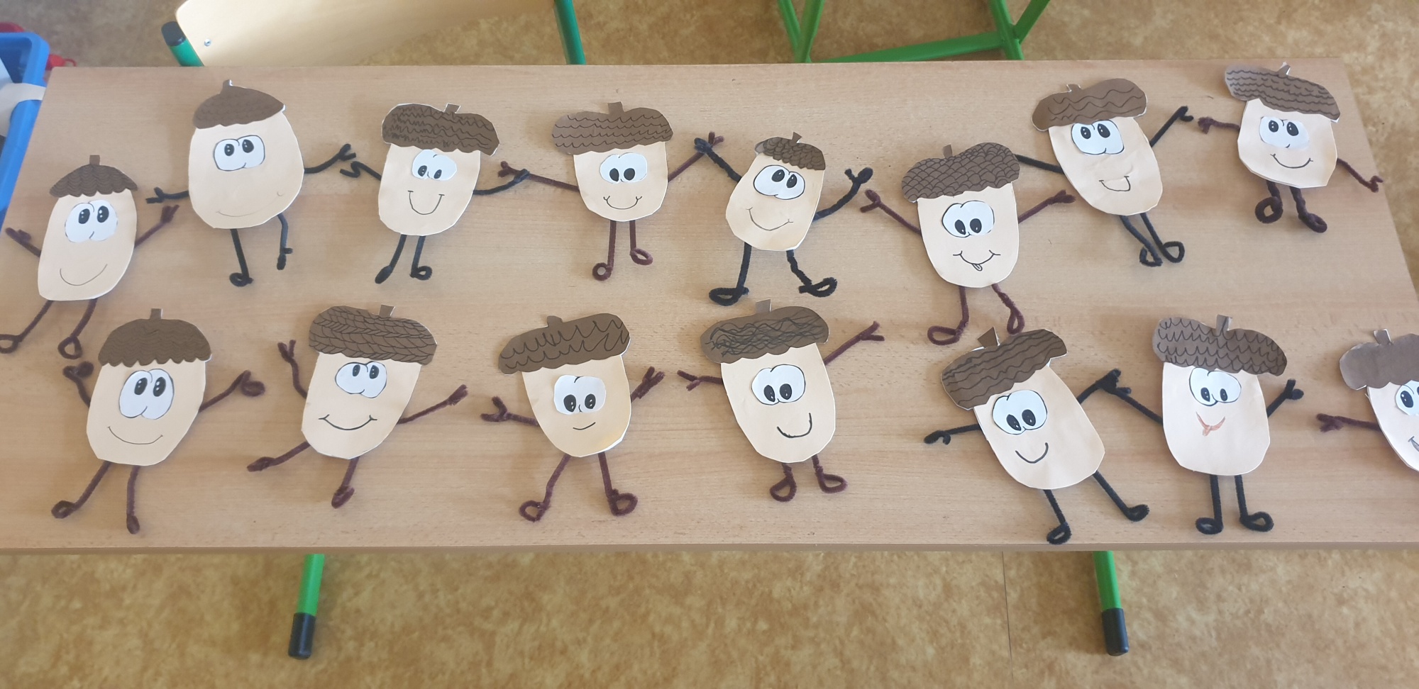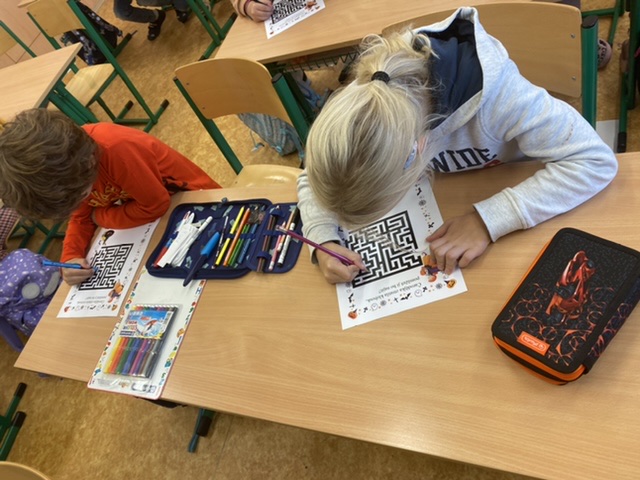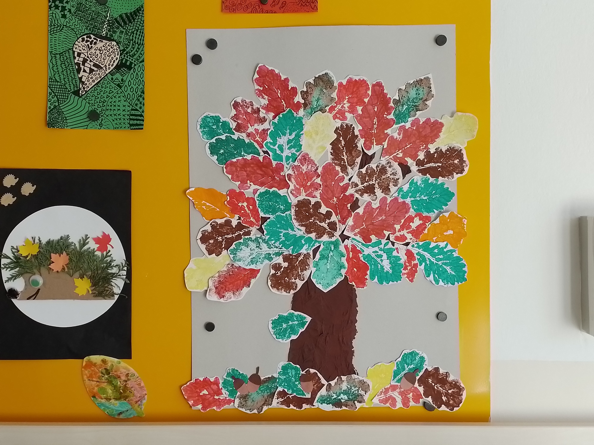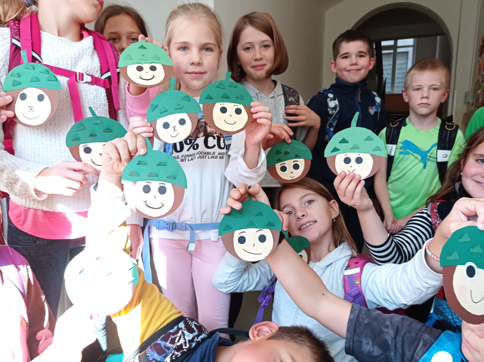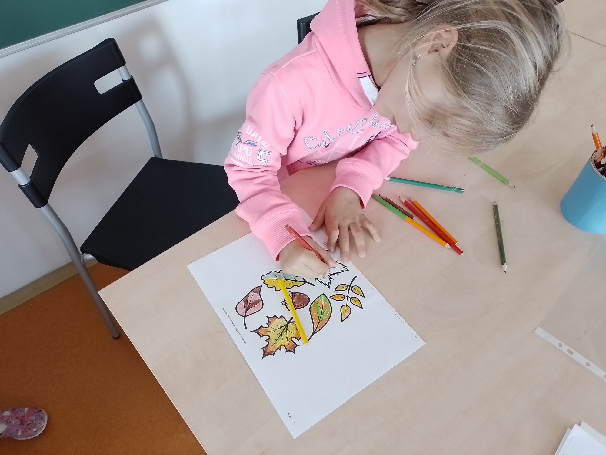za naše oddělení školní družiny mohu říci, že listopad byl velmi zajímavý. Dělali jsme spoustu aktivit. Uvnitř jsme často před vycházkou tvořili a tak můžete vidět i zde několik našich výrobků – deštníček, panáčky z vystříhaných lístků či parádního podzimního lvíčka. Také jsme si utvořili na naši nástěnku celoroční strom, který nám pomůže lépe sledovat změny v přírodě a budeme je tedy na něj promítat. Vytvořili jsme si také pestrého a veselého podzimního draka. Na nástěnce nechybí ani procvičování učiva, a tak pečlivě opakujeme jednotlivá naučená písmena. Chodíme také ven, a to prakticky každý den. Místa, která jsme od začátku školního roku navštívili, nespočítáme na prstech jedné ruky. Na fotkách můžete vidět naše oblíbené stavění domečků v lese. Také jsme foukali bubliny, to byla zábava! Bylo sice pod mrakem, ale zjistili jsme, že jsou parádně barevné a na jejich počítání nám nestačily všechny prstíky naší družiny. Samozřejmě hrajeme i spoustu her a nejraději máme běhací pexesa.