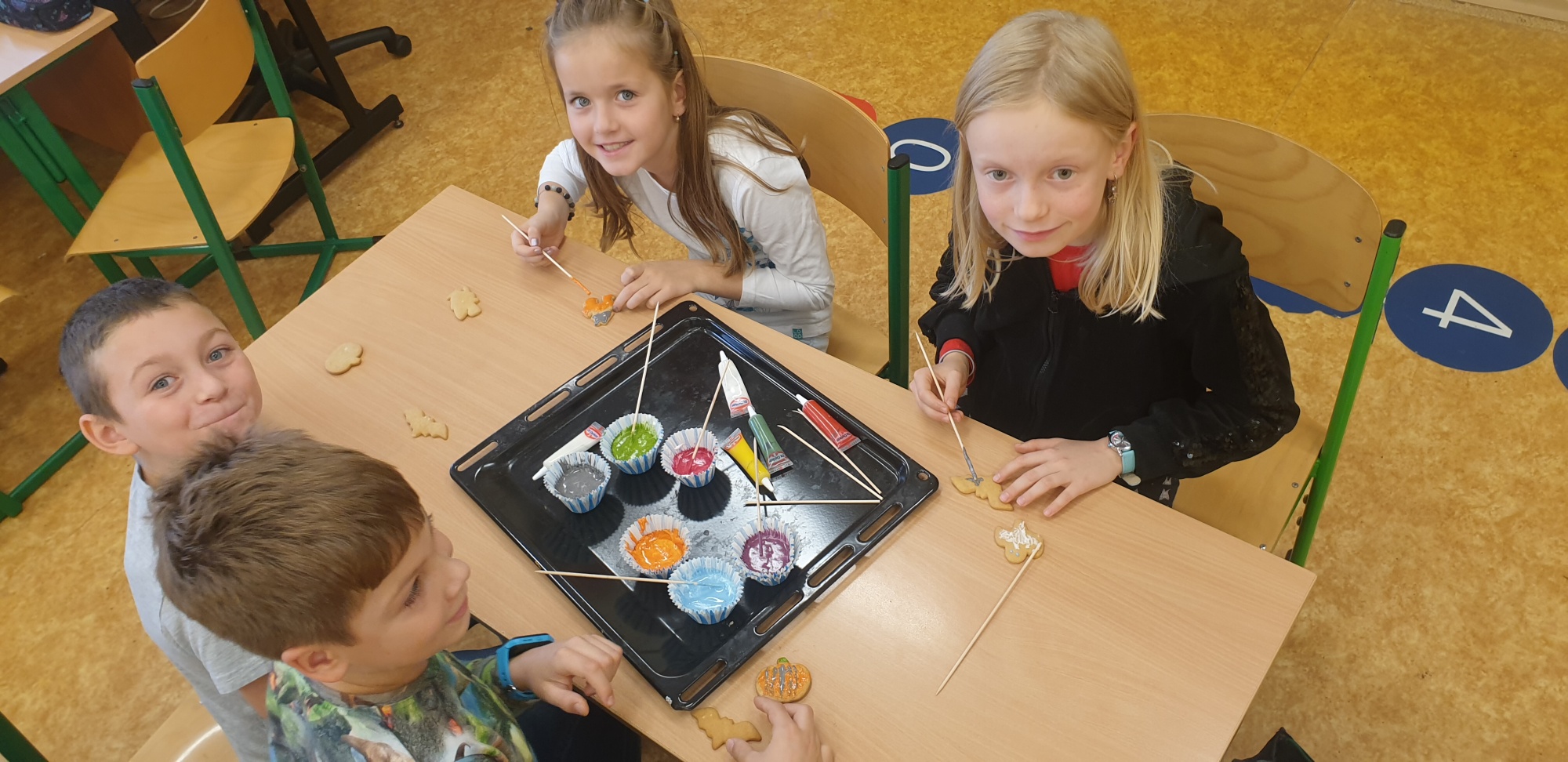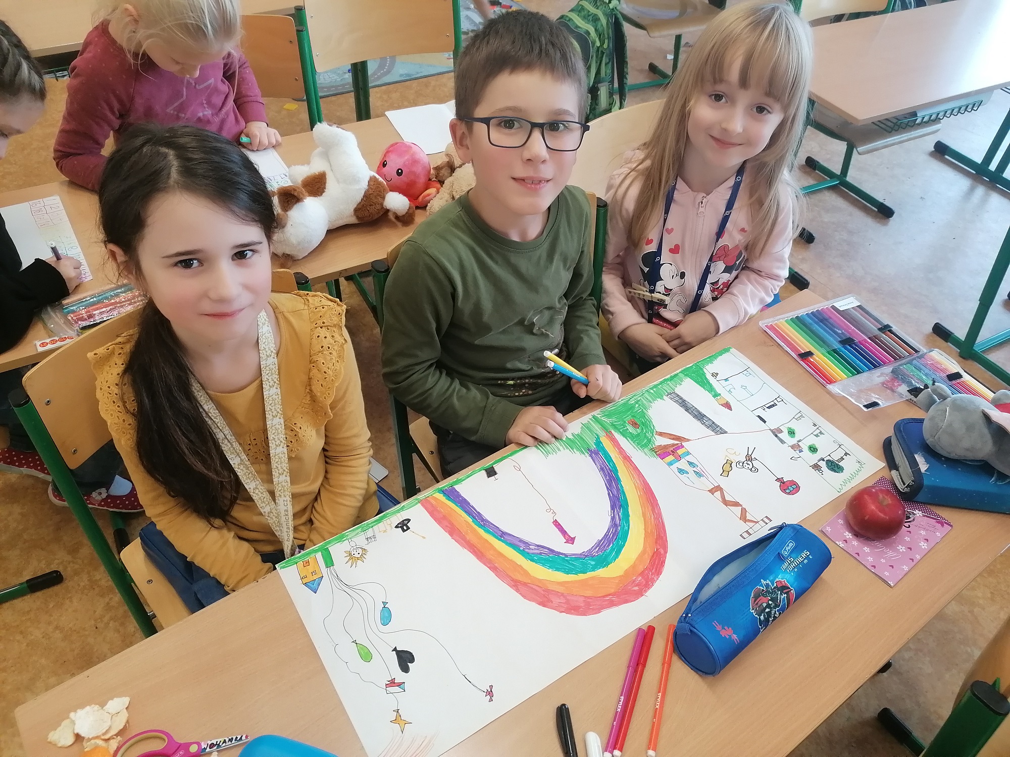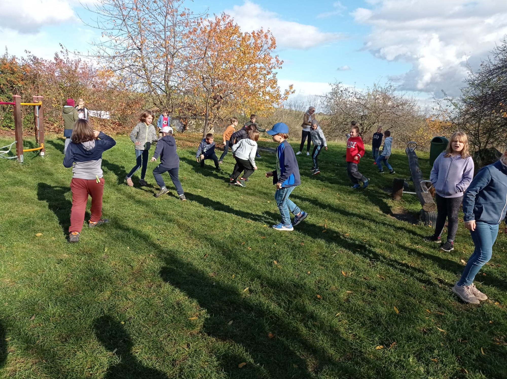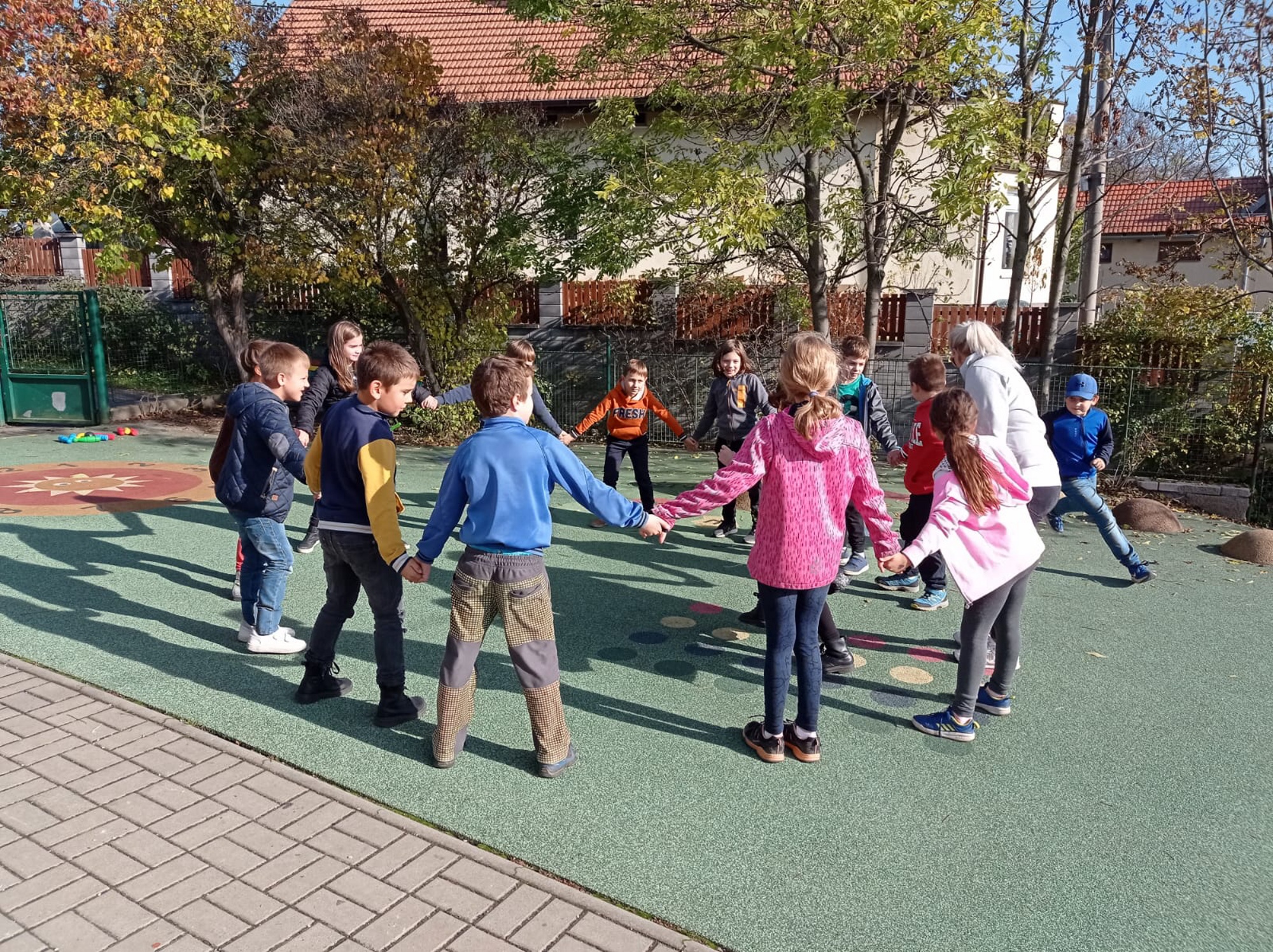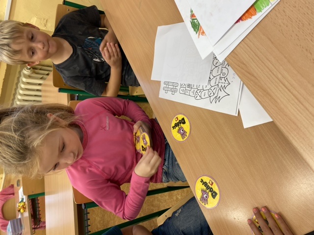 za naše oddělení školní družiny mohu říci, že listopad byl velmi zajímavý. Dělali jsme spoustu aktivit. Uvnitř jsme často před vycházkou tvořili a tak můžete vidět i zde několik našich výrobků – deštníček, panáčky z vystříhaných lístků či parádního podzimního lvíčka. Také jsme si utvořili na naši nástěnku celoroční strom, který nám pomůže lépe sledovat změny v přírodě a budeme je tedy na něj promítat. Vytvořili jsme si také pestrého a veselého podzimního draka. Na nástěnce nechybí ani procvičování učiva, a tak pečlivě opakujeme jednotlivá naučená písmena. Chodíme také ven, a to prakticky každý den. Místa, která jsme od začátku školního roku navštívili, nespočítáme na prstech jedné ruky. Na fotkách můžete vidět naše oblíbené stavění domečků v lese. Také jsme foukali bubliny, to byla zábava! Bylo sice pod mrakem, ale zjistili jsme, že jsou parádně barevné a na jejich počítání nám nestačily všechny prstíky naší družiny. Samozřejmě hrajeme i spoustu her a nejraději máme běhací pexesa.