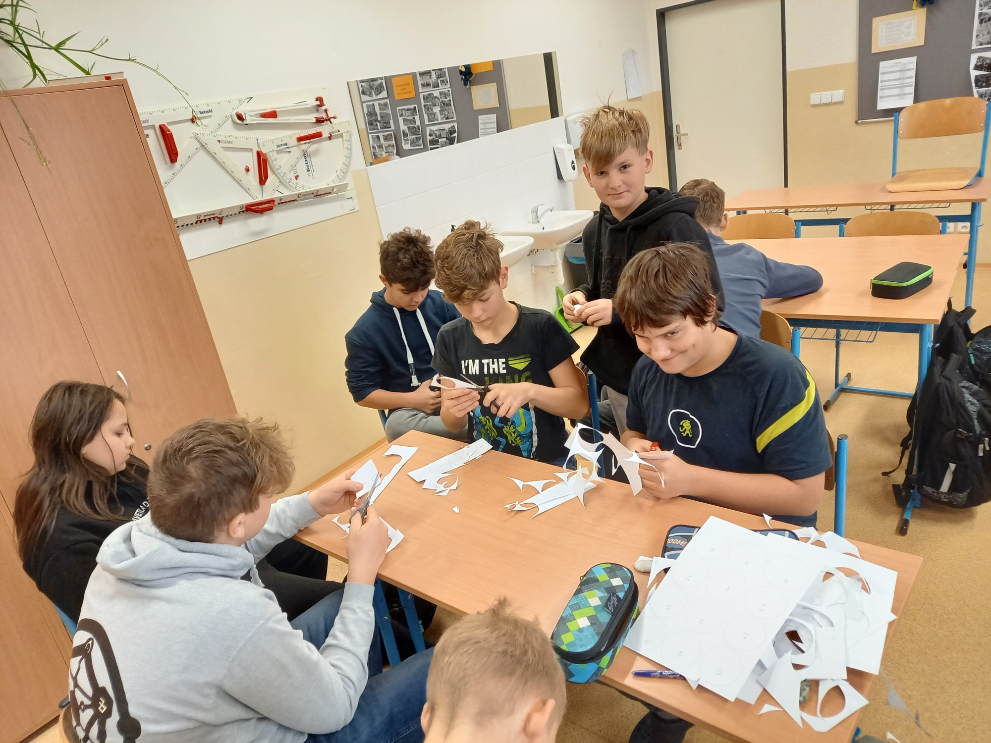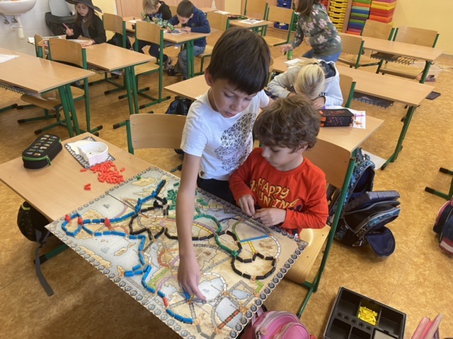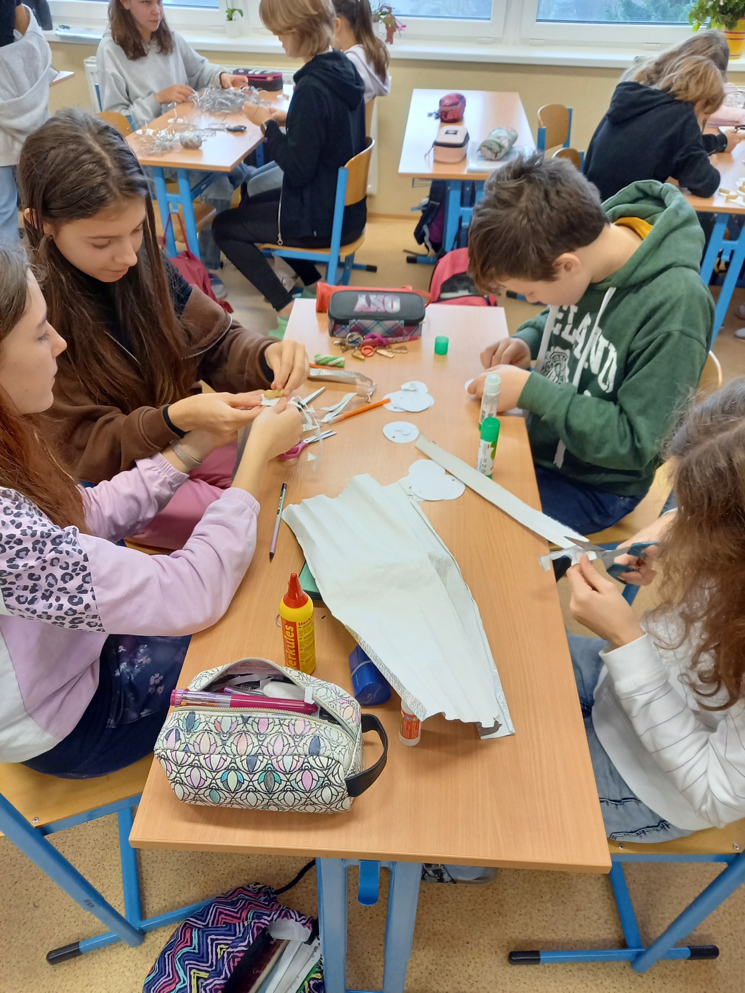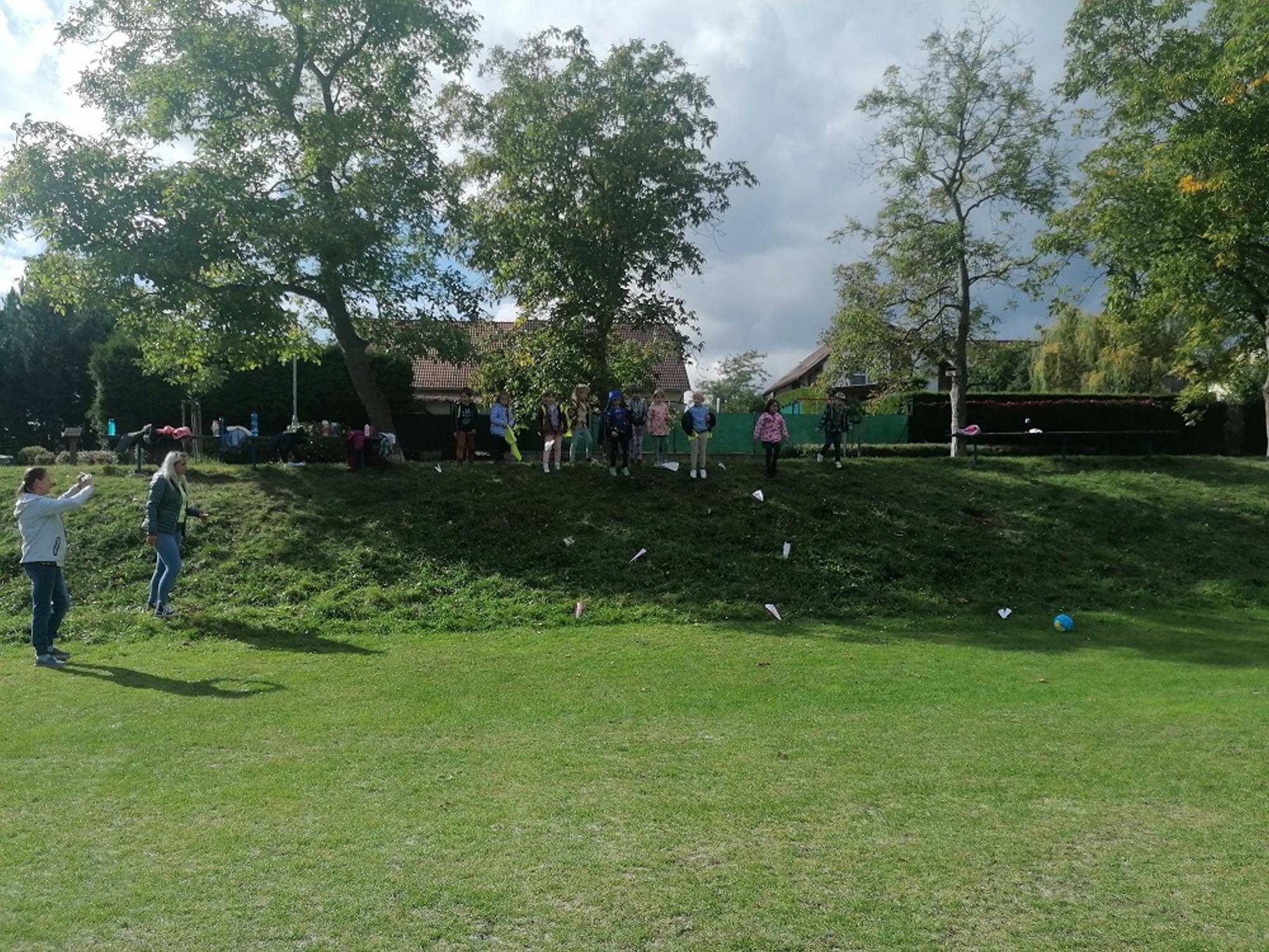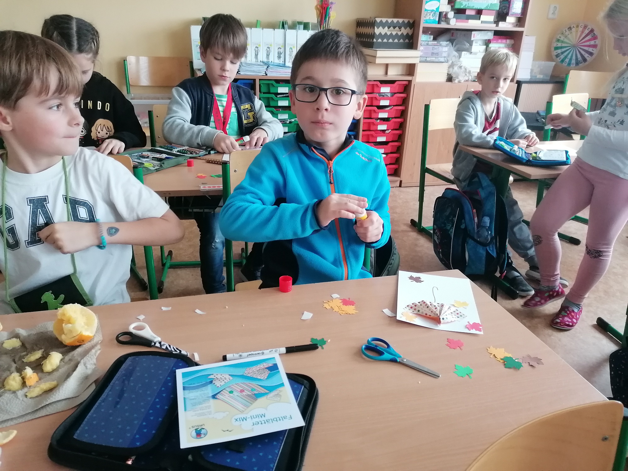 za naše oddělení školní družiny mohu říci, že listopad byl velmi zajímavý. Dělali jsme spoustu aktivit. Uvnitř jsme často před vycházkou tvořili a tak můžete vidět i zde několik našich výrobků – deštníček, panáčky z vystříhaných lístků či parádního podzimního lvíčka. Také jsme si utvořili na naši nástěnku celoroční strom, který nám pomůže lépe sledovat změny v přírodě a budeme je tedy na něj promítat. Vytvořili jsme si také pestrého a veselého podzimního draka. Na nástěnce nechybí ani procvičování učiva, a tak pečlivě opakujeme jednotlivá naučená písmena. Chodíme také ven, a to prakticky každý den. Místa, která jsme od začátku školního roku navštívili, nespočítáme na prstech jedné ruky. Na fotkách můžete vidět naše oblíbené stavění domečků v lese. Také jsme foukali bubliny, to byla zábava! Bylo sice pod mrakem, ale zjistili jsme, že jsou parádně barevné a na jejich počítání nám nestačily všechny prstíky naší družiny. Samozřejmě hrajeme i spoustu her a nejraději máme běhací pexesa.