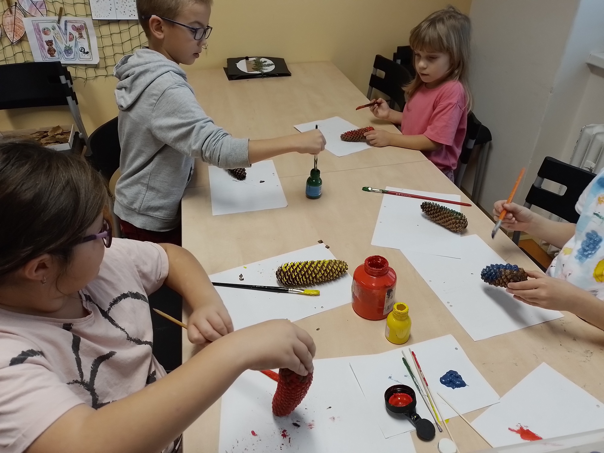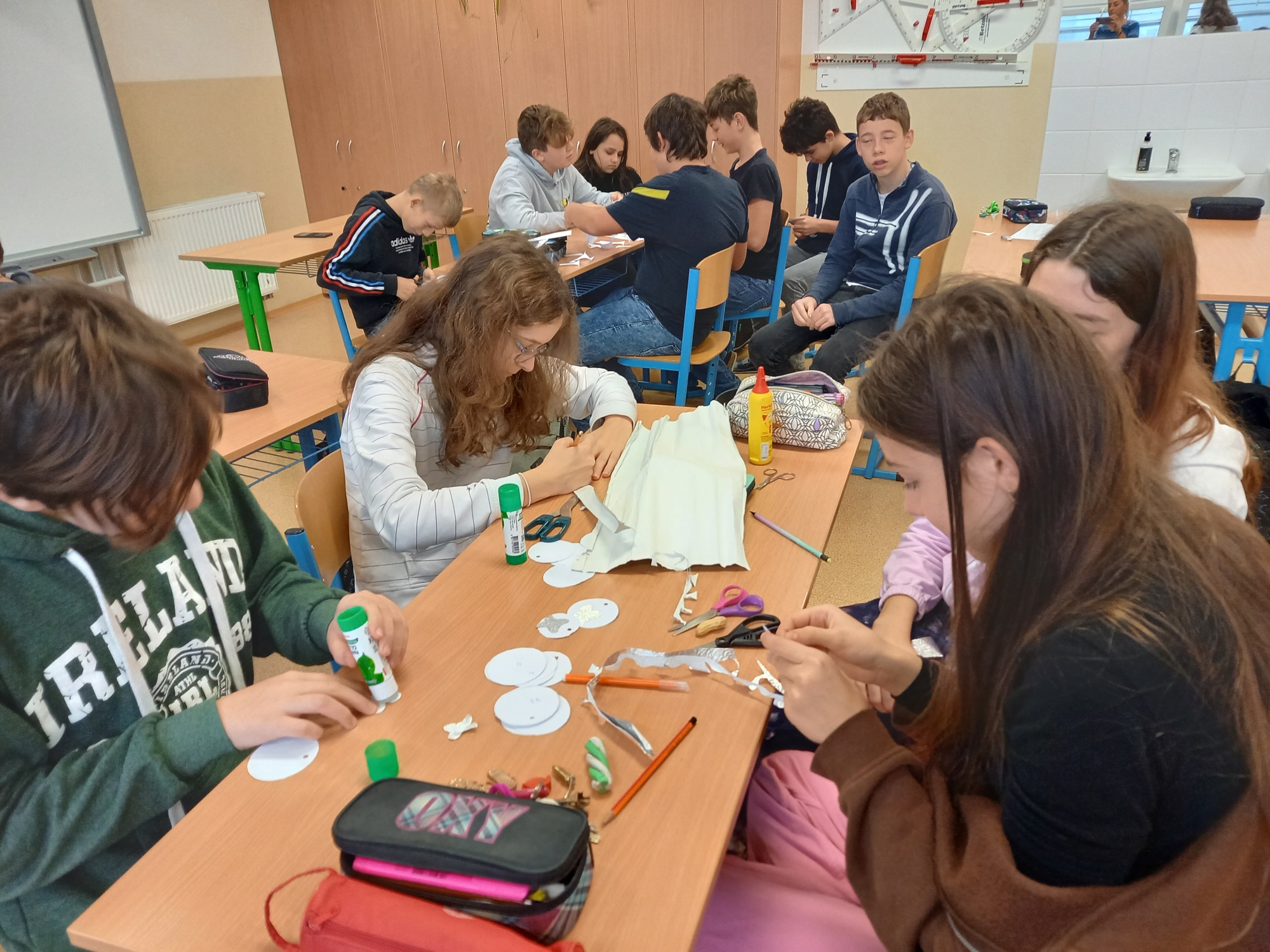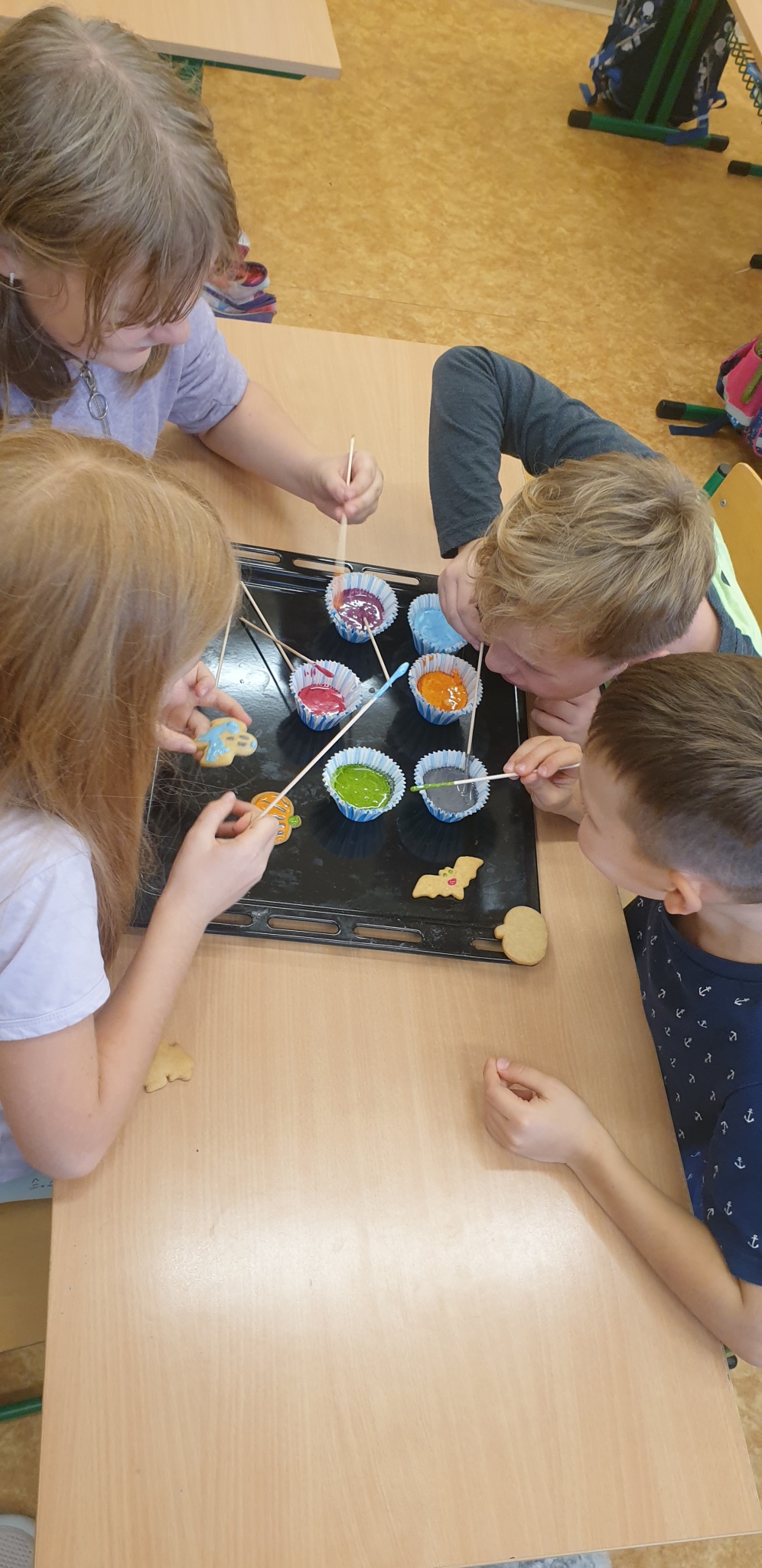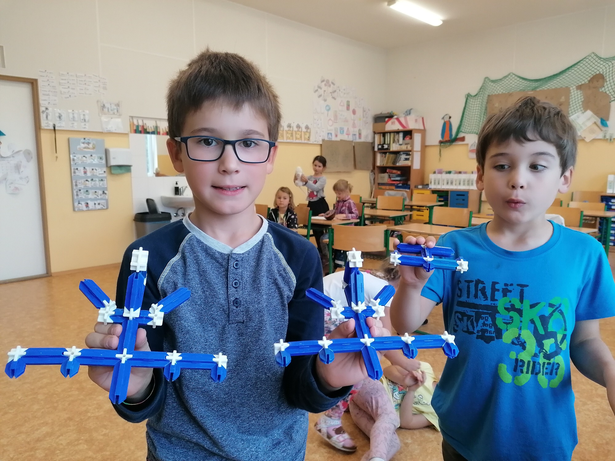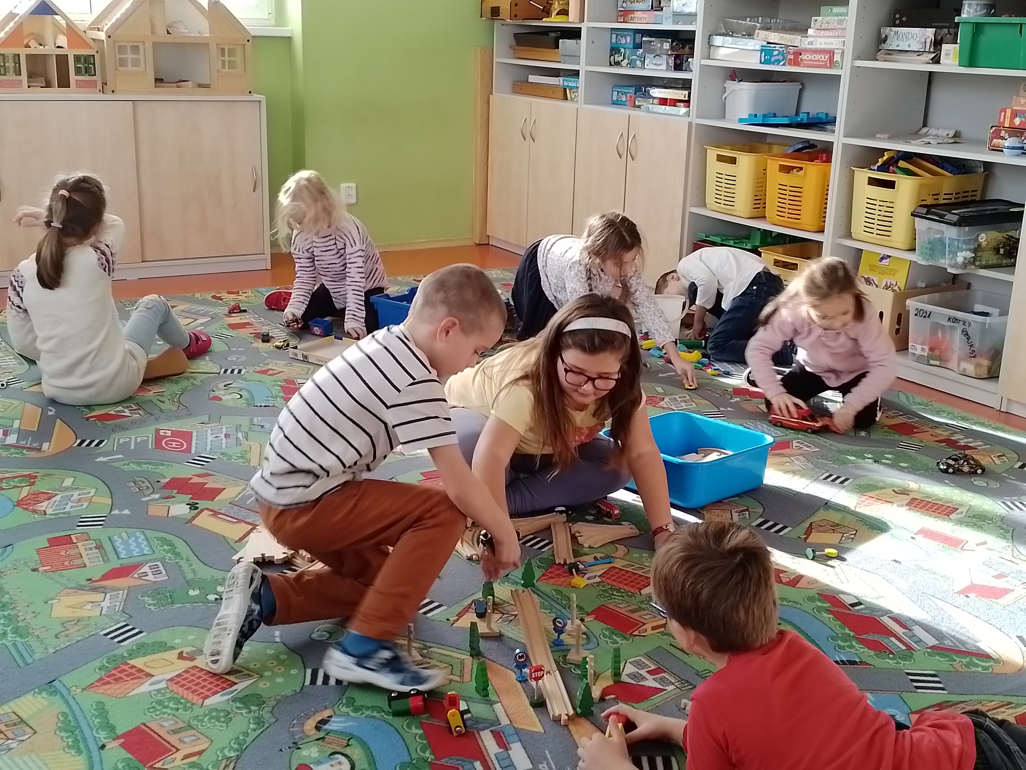 za naše oddělení školní družiny mohu říci, že listopad byl velmi zajímavý. Dělali jsme spoustu aktivit. Uvnitř jsme často před vycházkou tvořili a tak můžete vidět i zde několik našich výrobků – deštníček, panáčky z vystříhaných lístků či parádního podzimního lvíčka. Také jsme si utvořili na naši nástěnku celoroční strom, který nám pomůže lépe sledovat změny v přírodě a budeme je tedy na něj promítat. Vytvořili jsme si také pestrého a veselého podzimního draka. Na nástěnce nechybí ani procvičování učiva, a tak pečlivě opakujeme jednotlivá naučená písmena. Chodíme také ven, a to prakticky každý den. Místa, která jsme od začátku školního roku navštívili, nespočítáme na prstech jedné ruky. Na fotkách můžete vidět naše oblíbené stavění domečků v lese. Také jsme foukali bubliny, to byla zábava! Bylo sice pod mrakem, ale zjistili jsme, že jsou parádně barevné a na jejich počítání nám nestačily všechny prstíky naší družiny. Samozřejmě hrajeme i spoustu her a nejraději máme běhací pexesa.