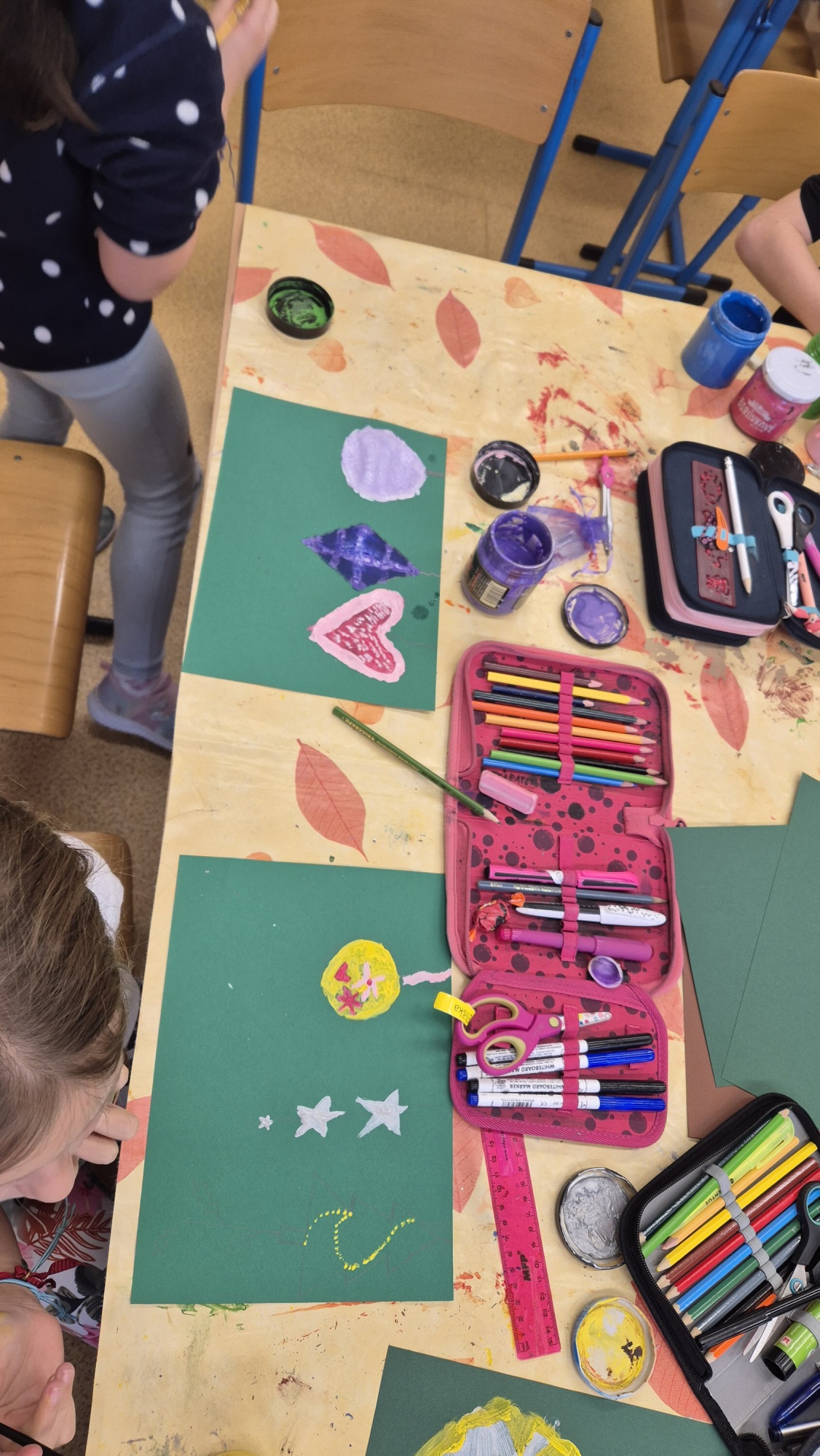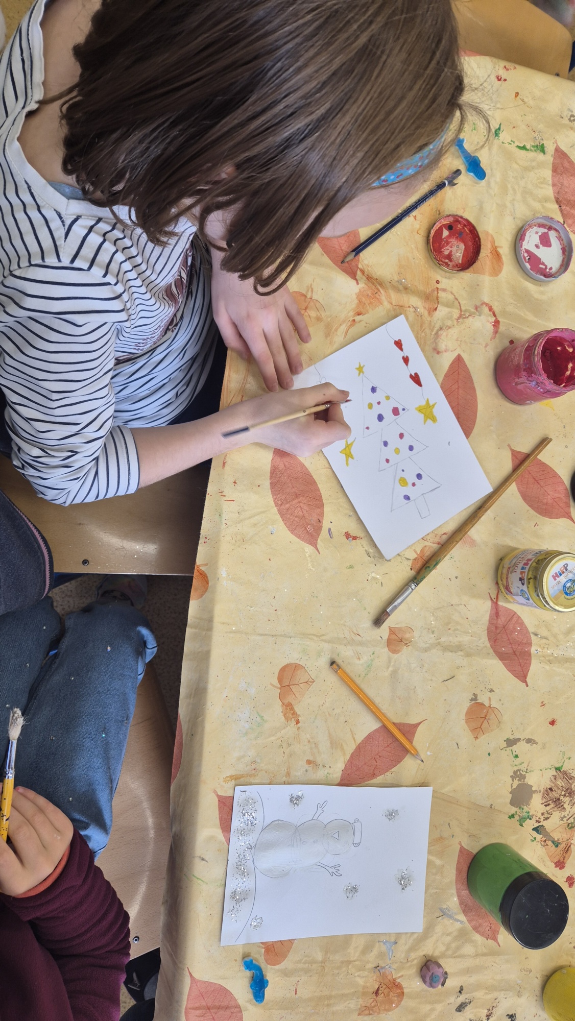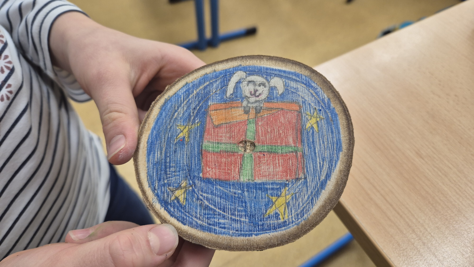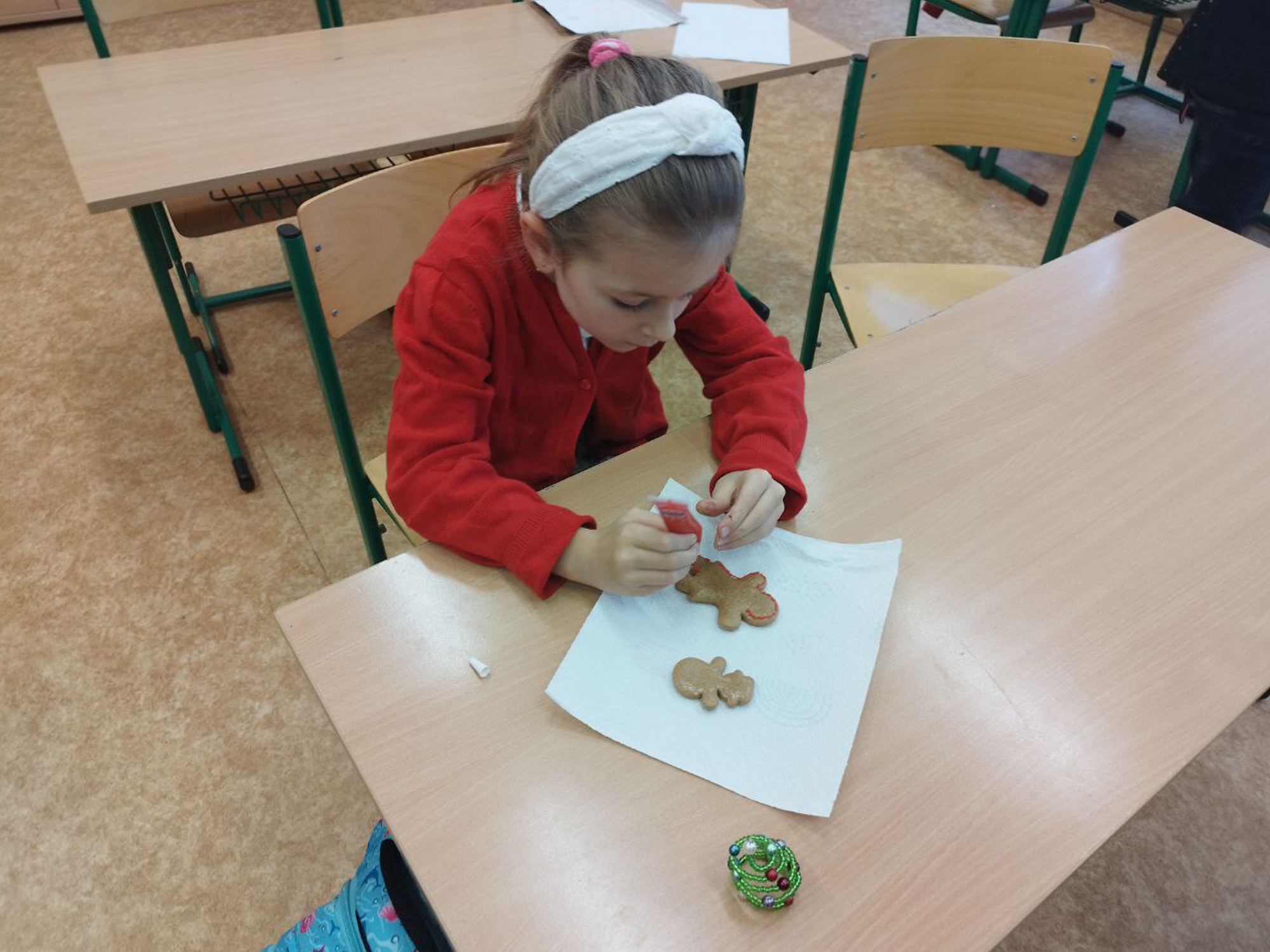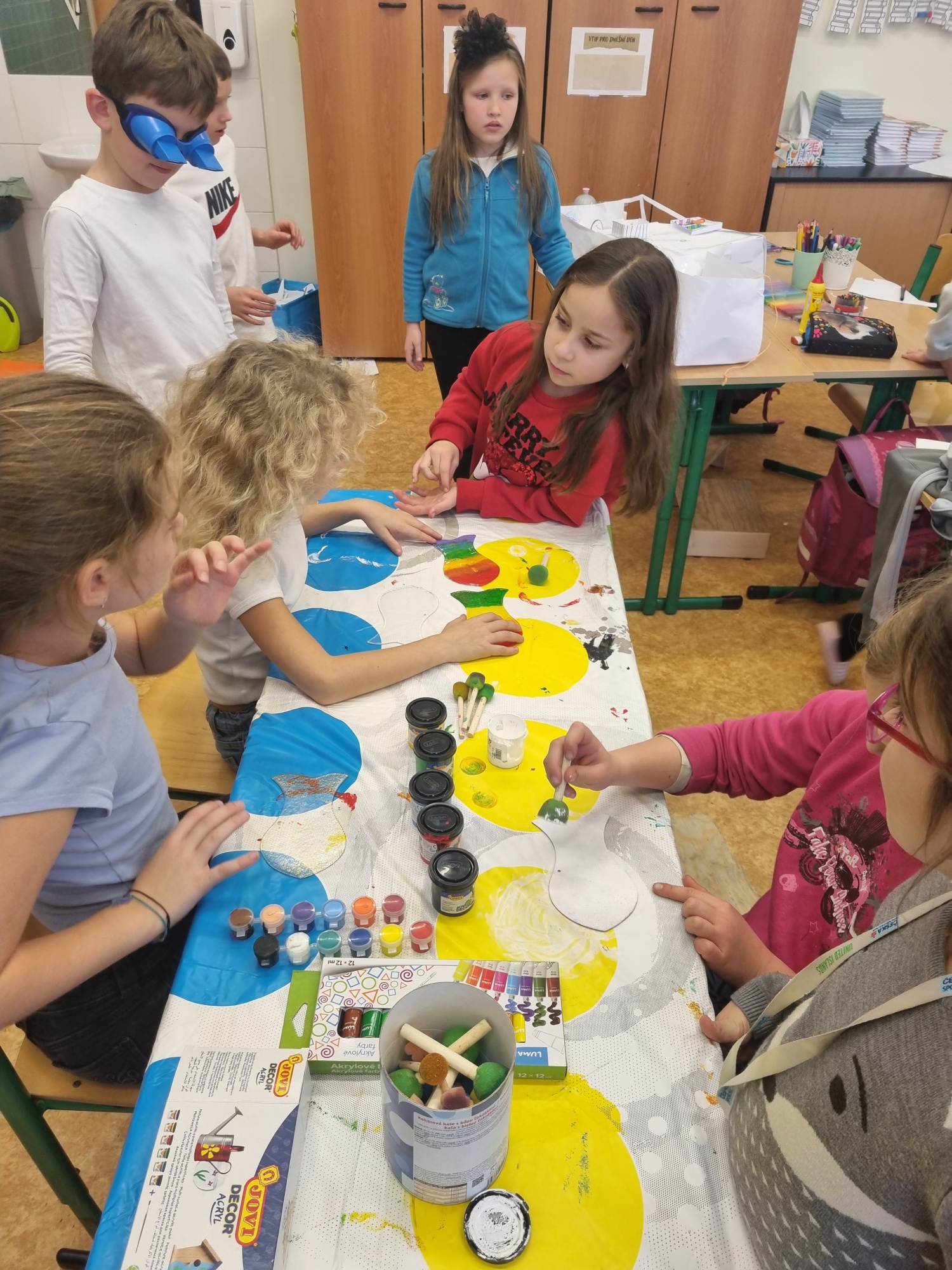 Hlavním cílem bylo vytvořit krásné dárky pro rodiče. Děti s velkým nadšením vyráběly dřevěné ozdoby a malovaly na skleněné rybičky. Práce nám šla hezky od ruky a přitom jsme si pouštěli a zpívali vánoční koledy.