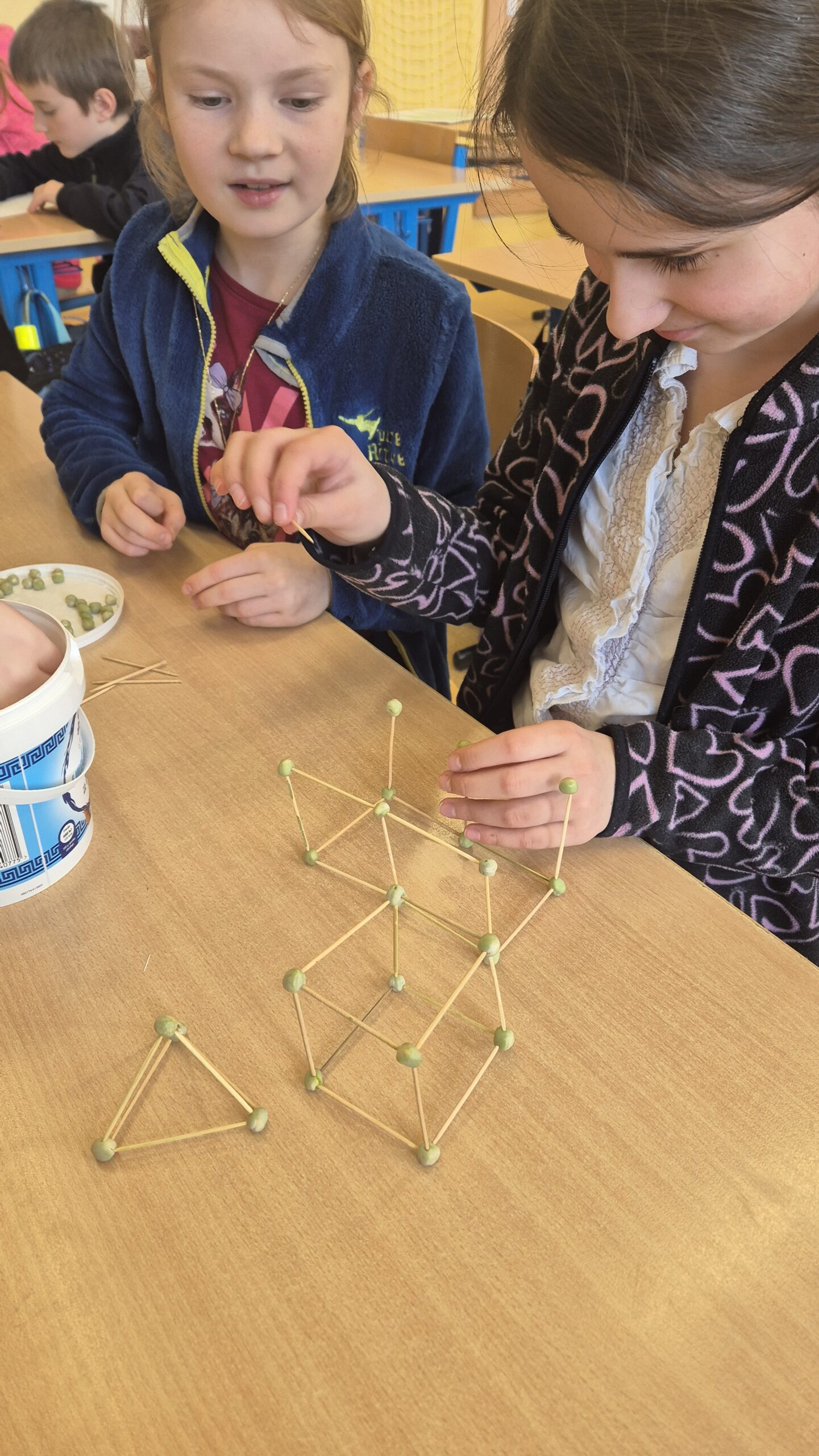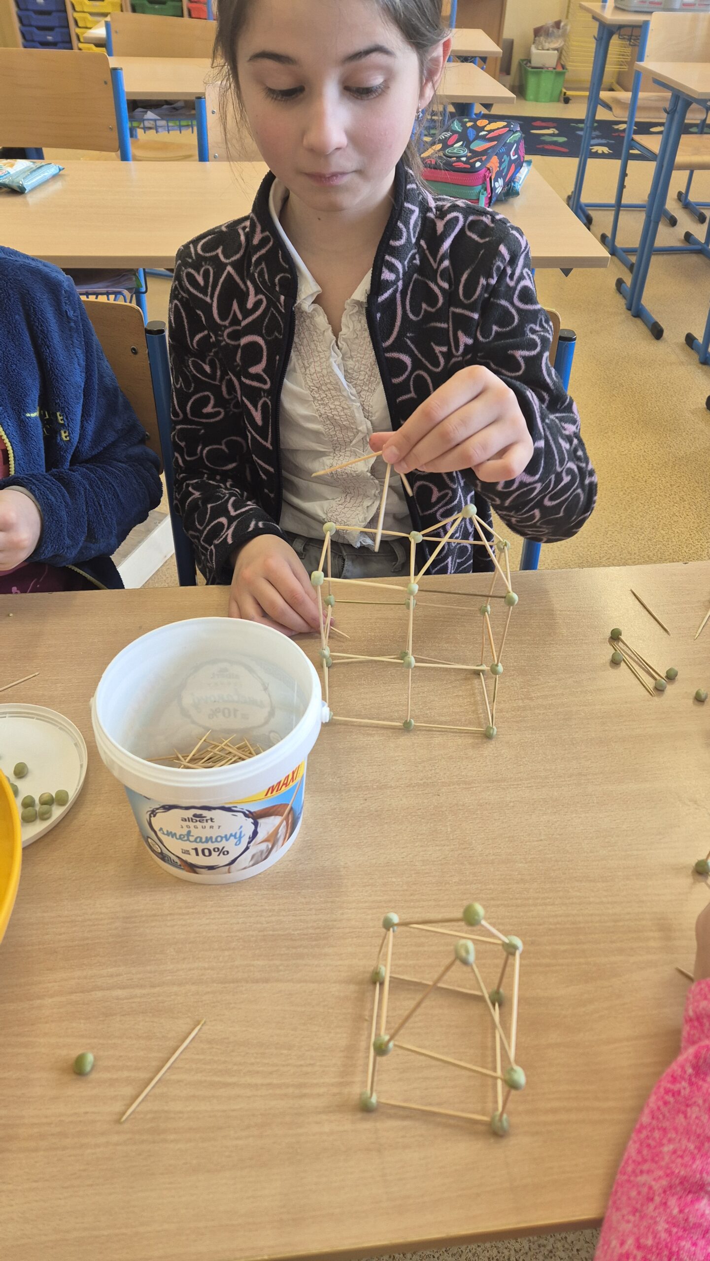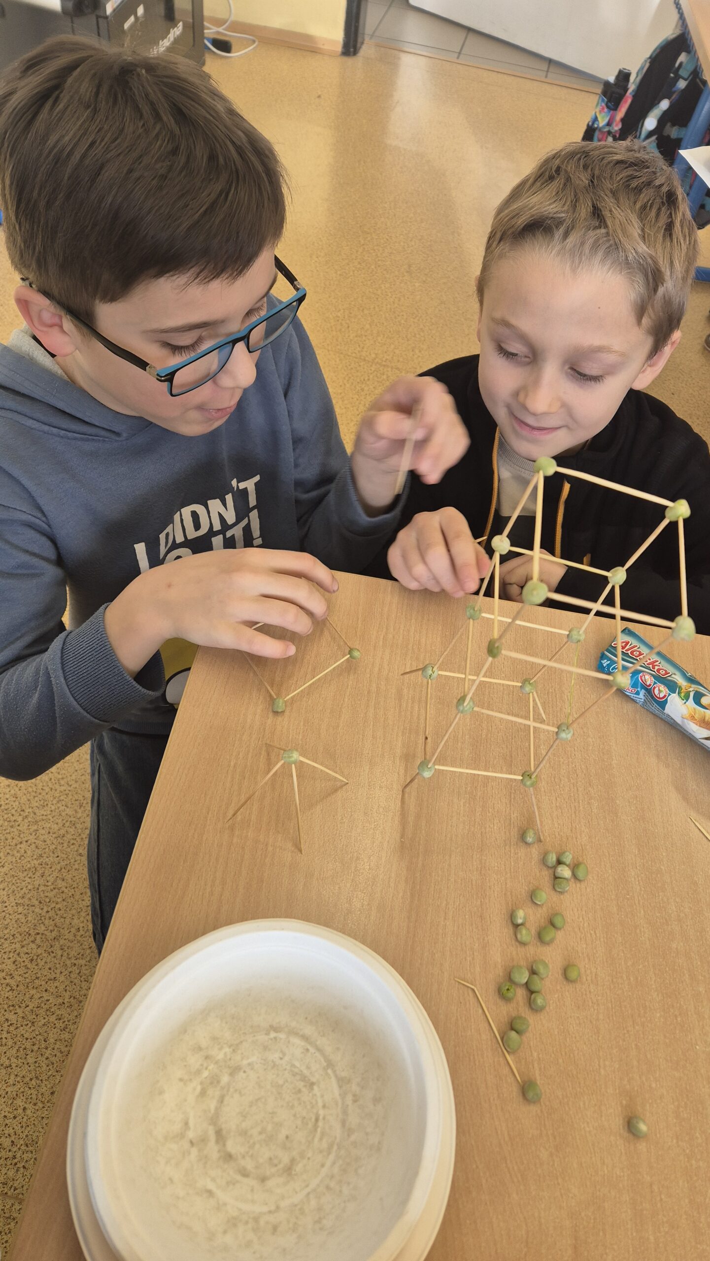 V lednu jsme využili chvilkové sněhové nadílky a užili si zimní radovánky venku. Když počasí nepřálo venkovním aktivitám, věnovali jsme se tvoření – vyráběli jsme stavby z hrášků a párátek, což prověřilo naší trpělivost a kreativitu. Také jsme si pohráli s tangramy , které nám pomohly rozvíjet prostorovou představivost. Obrovskou radost dětem udělaly nové magnetické stavebnice. Část ledna jsme také věnovali přípravě na celodružinový turnaj ve hře Dobble. Kromě toho jsme si zahráli vědomostní hru o svátku Hromnic, při které se děti dozvěděly spoustu zajímavostí o tomto méně známém dni.