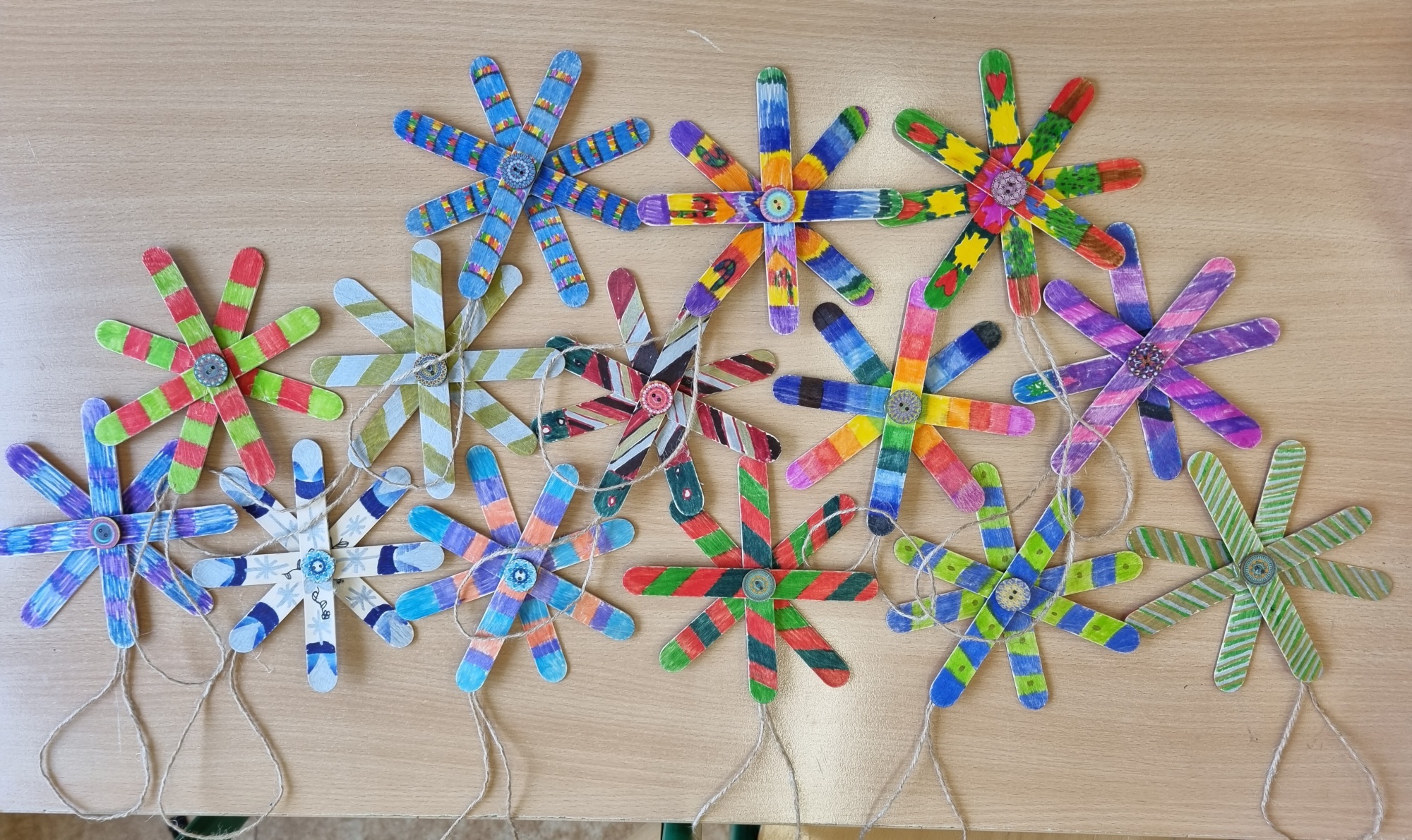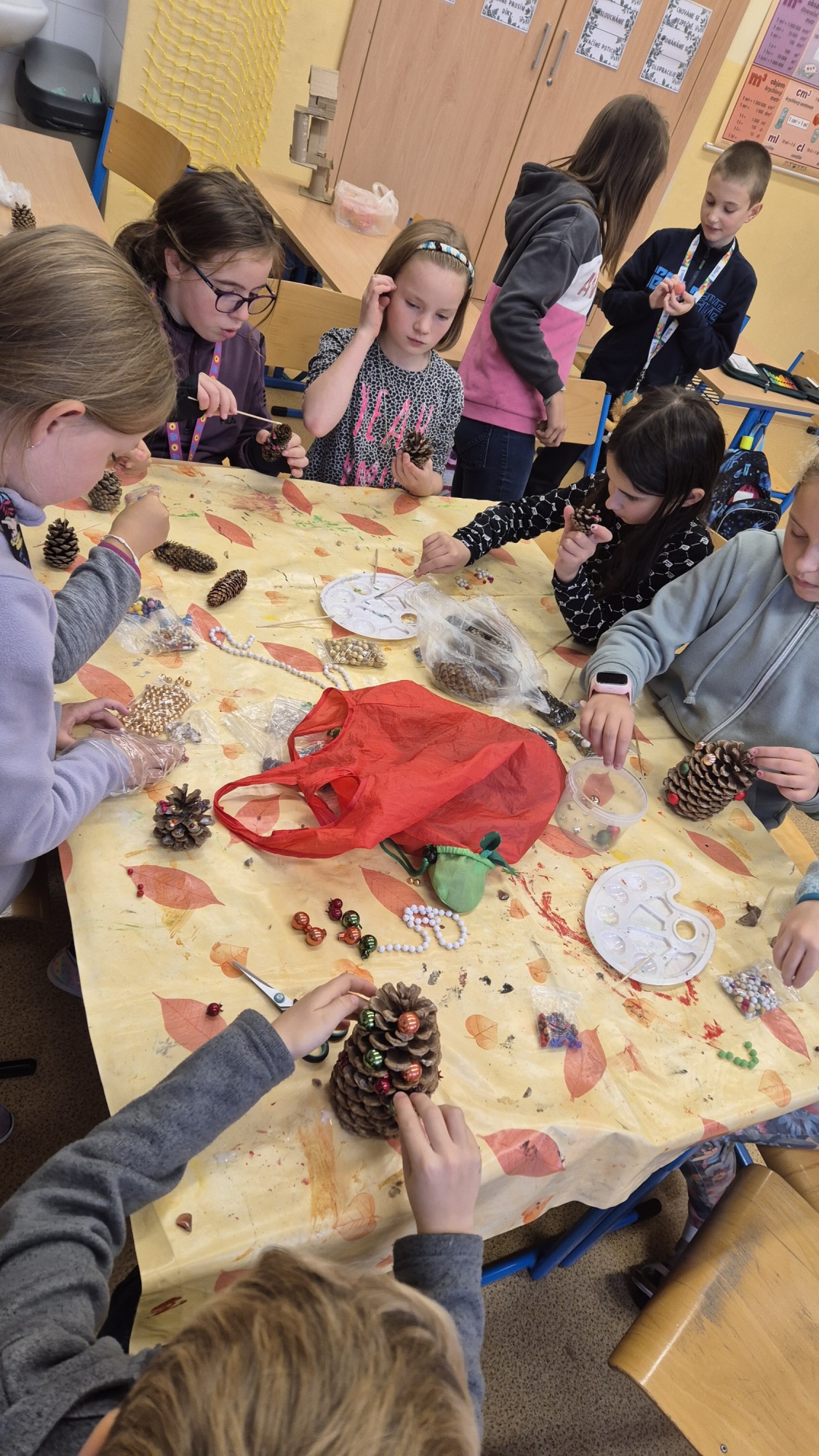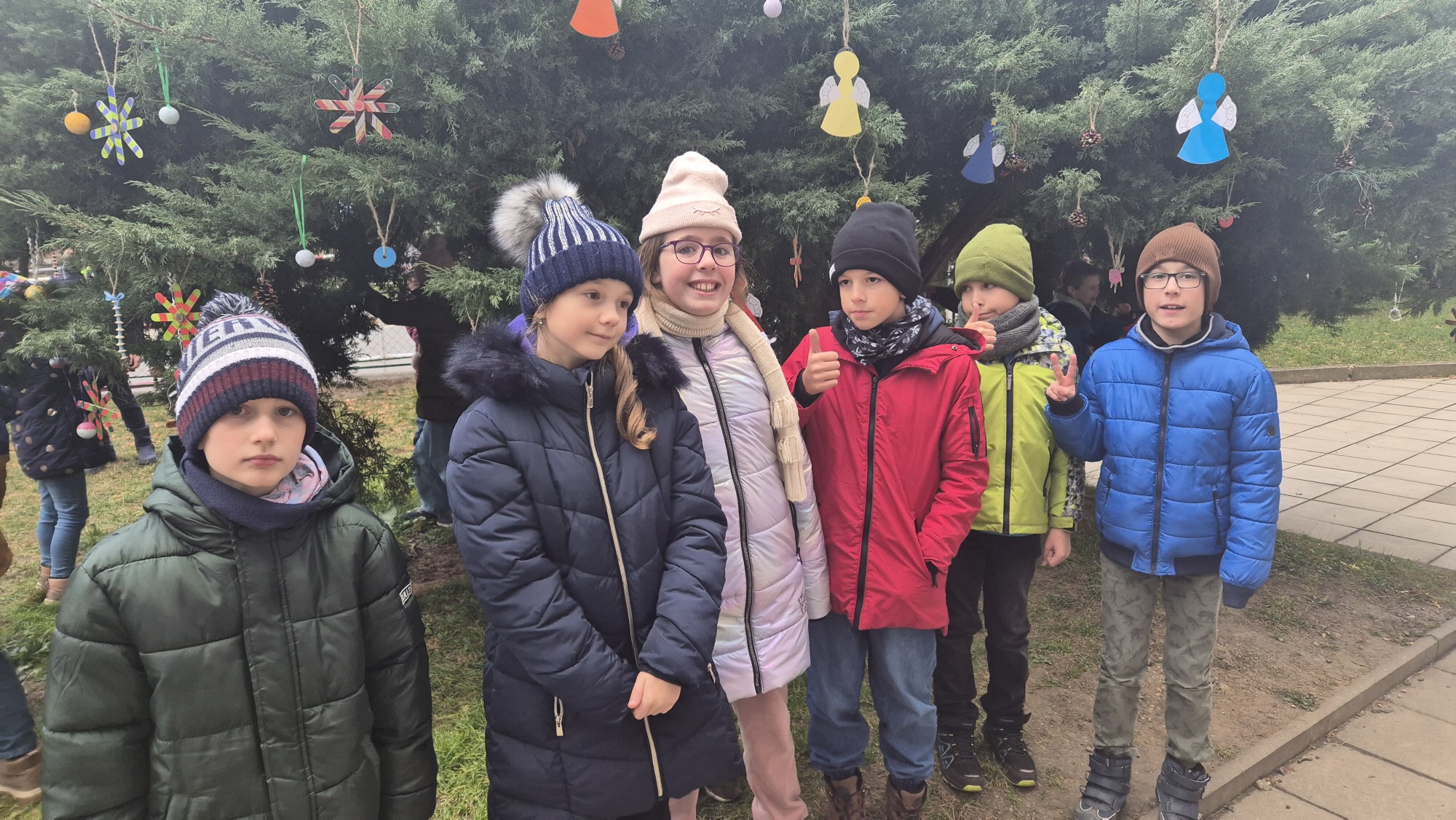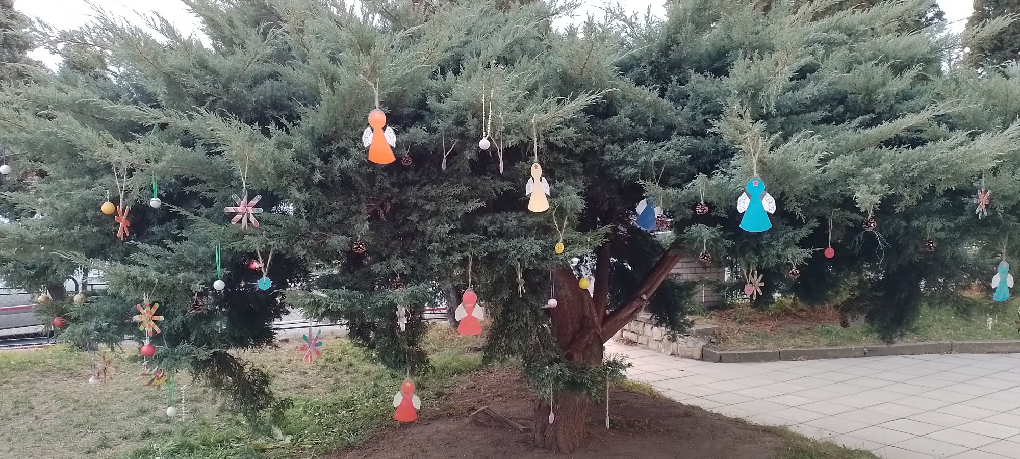Už v průběhu listopadu děti vyrobily ze šišek, korálků, špachtlí, dřevěných koleček nebo z polystyrenových koulí vánoční ozdoby, kterými pak nazdobily na začátku adventu strom před školou.