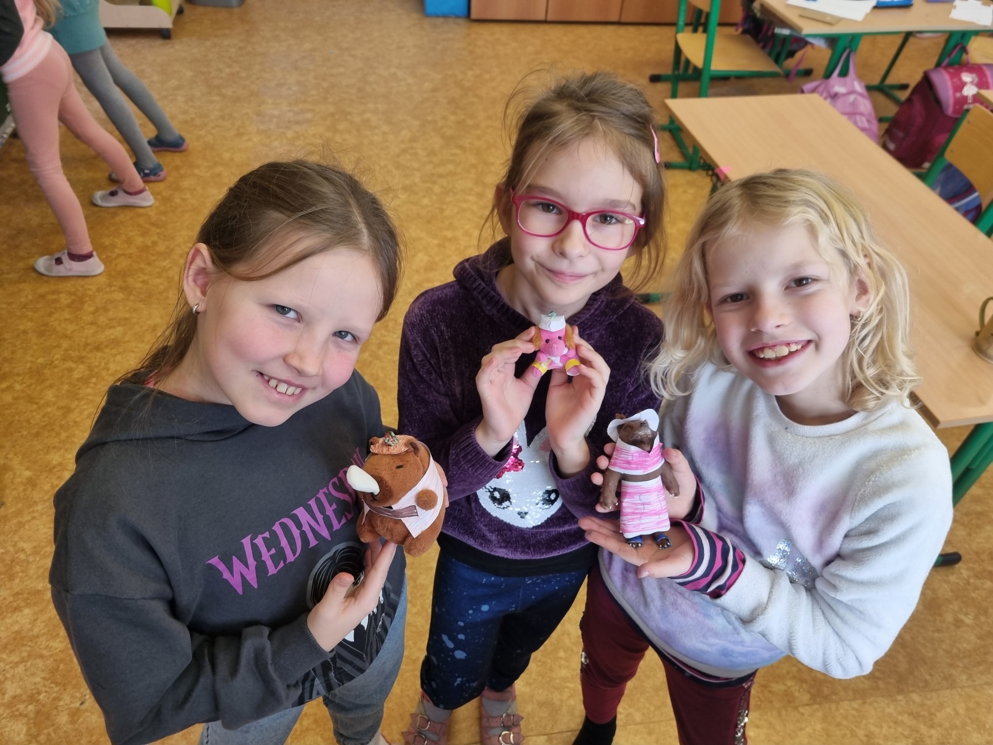 Starší děti se zaměřily na delší a složitější básně, například o netopýrovi, o vosí parádnici, slyšeli jsme kosí a kočičí historku, dokonce i báseň o slovních druzích. Nechyběly ani vtipné a hravé básničky.
