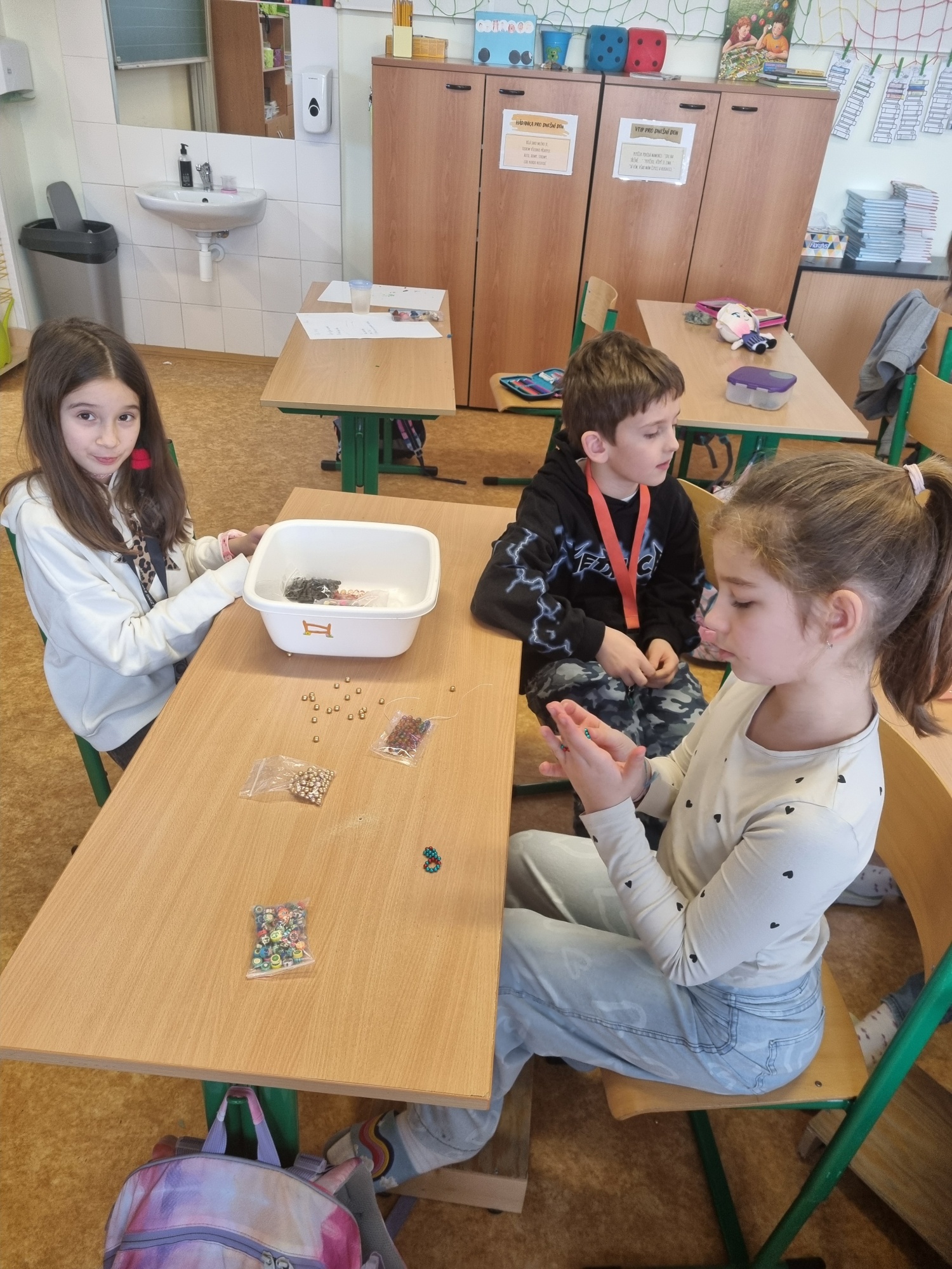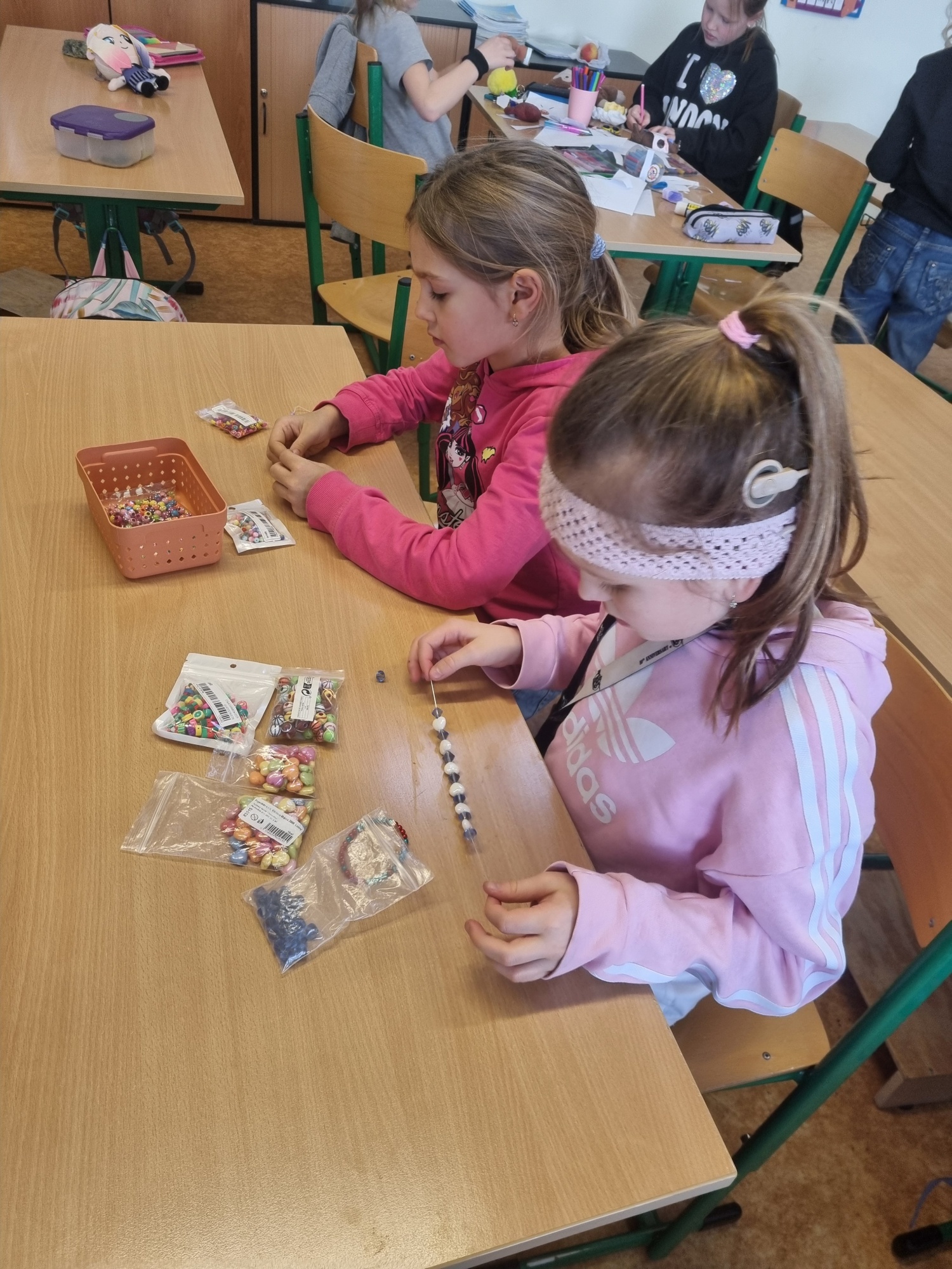 Velkou oblibu si získalo navlékání korálků, při kterém si děti vytvořily své vlastní náramky a prstýnky. Každý výrobek byl jedinečný a odrážel osobitý styl svého tvůrce.