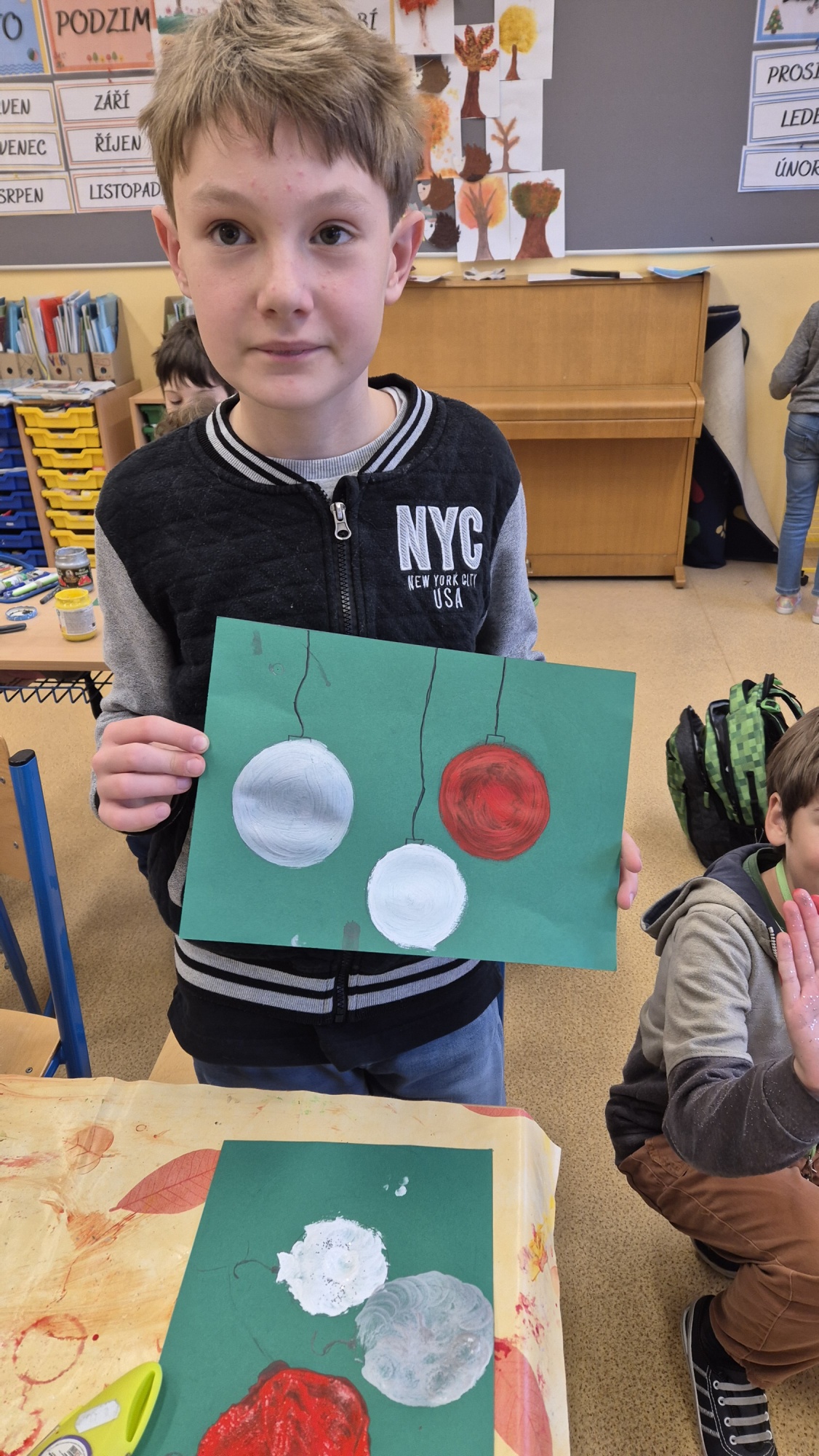 Přípravy na Vánoce začaly již v listopadu, kdy děti tvořily krásné ozdoby na strom před školou. Malovaly na skleněné rybičky, které si s radostí odnesly domů. A aby měly taky nějaký dáreček pro své blízké, vyrobily si zvoneček se svojí podobiznou.