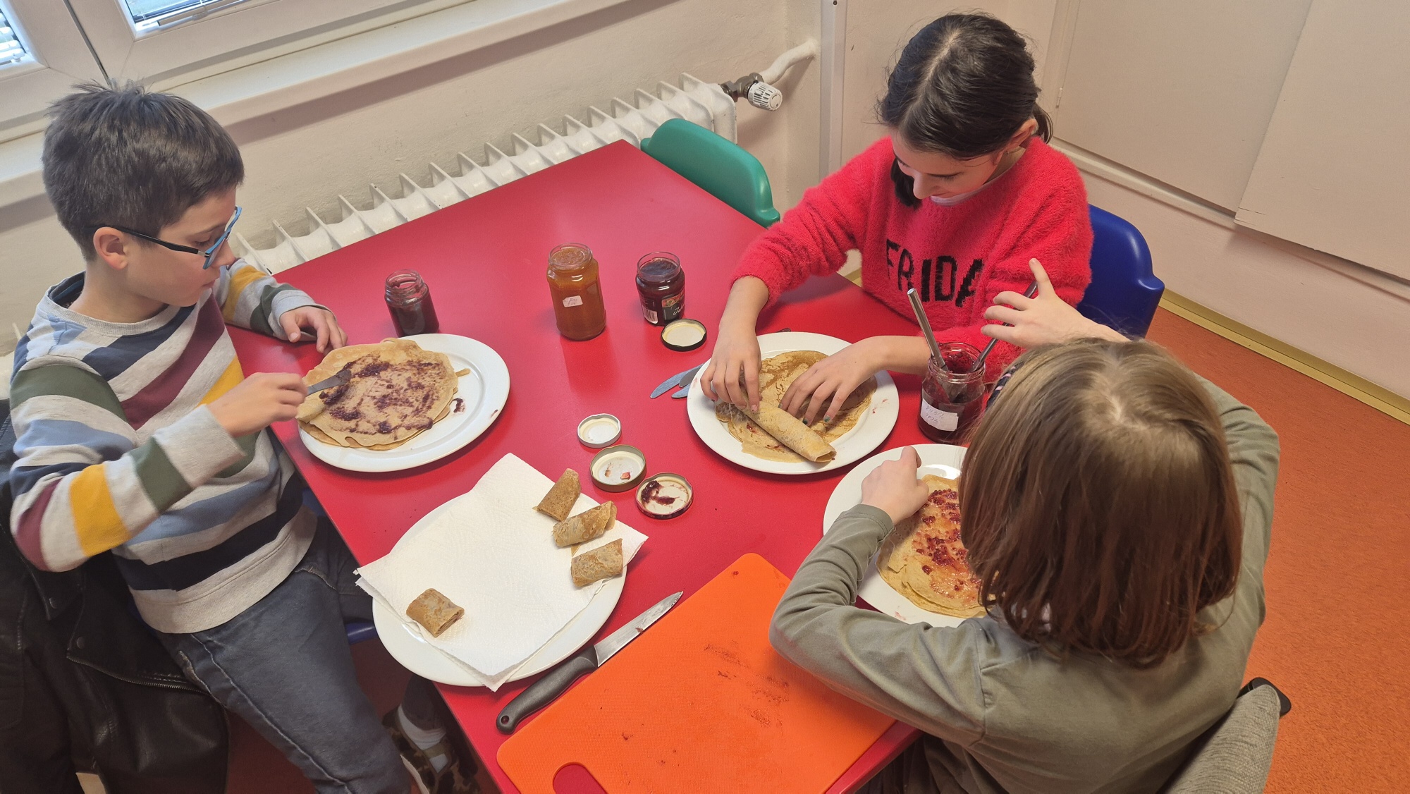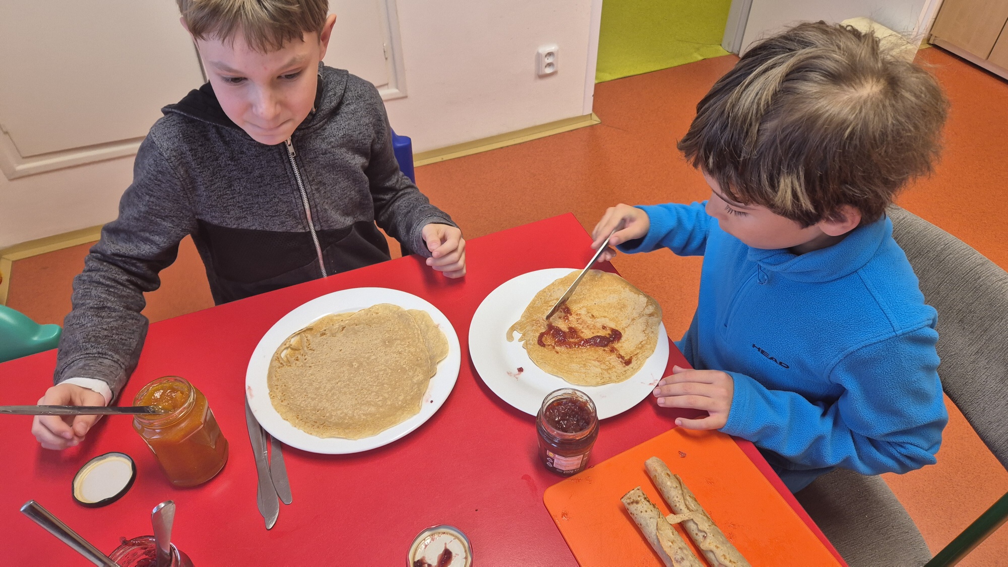Dalším společným projektem bylo připravit malé pohoštění pro ostatní oddělení. Rozhodli jsme se pro jeden z nejoblíbenějších pokrmů dětí a to PALAČINKY, které rychle zmizely z talířů.