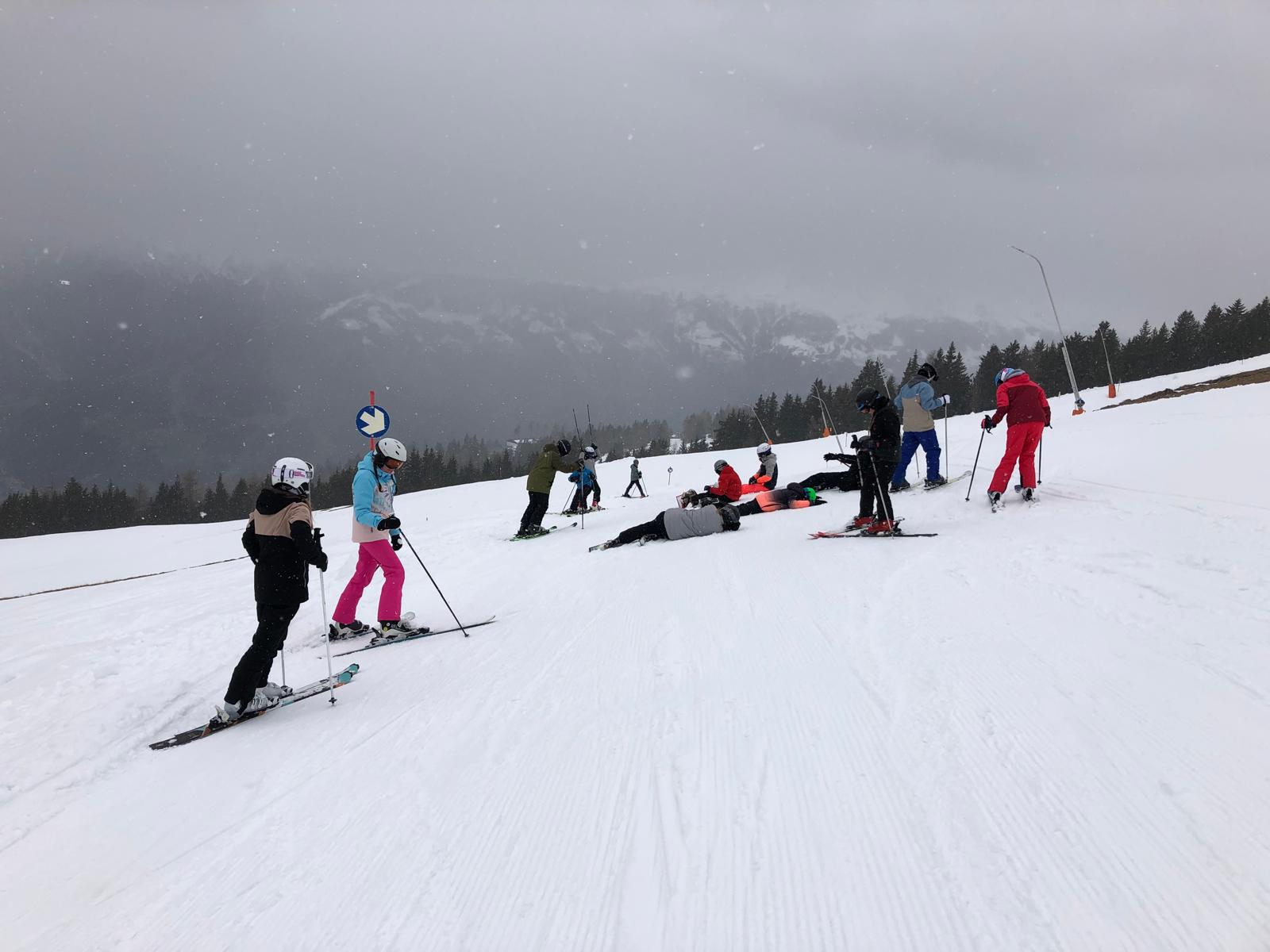 Každá skupina se svými instruktory vyrazila na různé sjezdovky, aby si ještě naplno užila poslední lyžařské dny. Zkušenější lyžaři se dnes zaměřili na zdokonalování carvingového oblouku, zatímco začátečníci si s radostí upevňovali základní dovednosti.