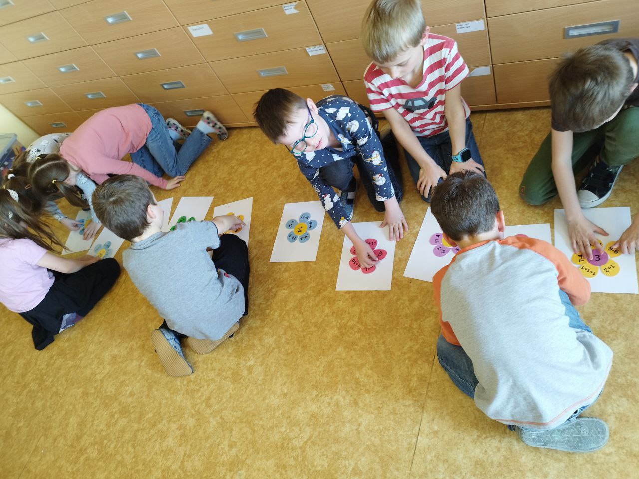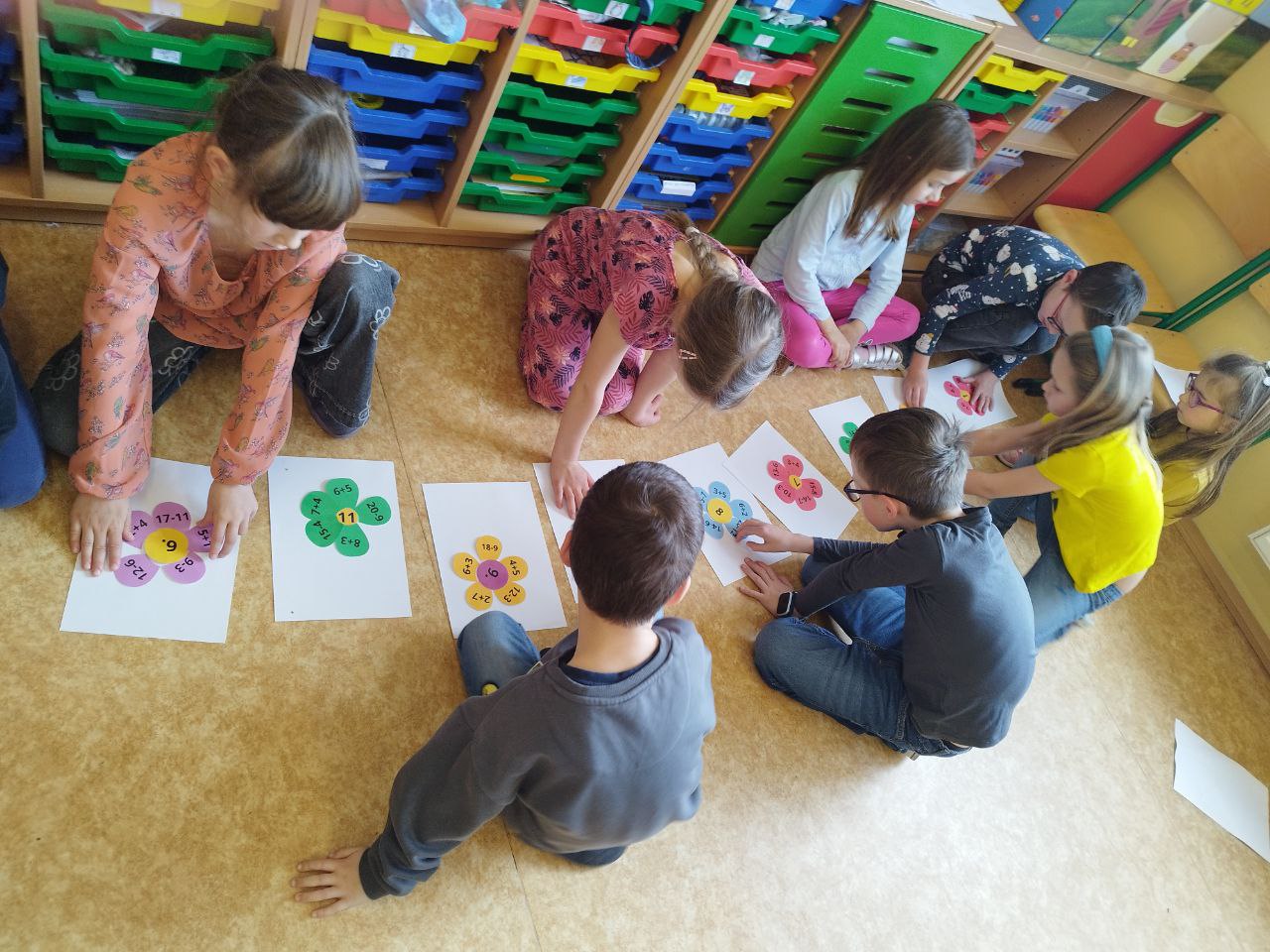 Další zajímavou aktivitou bylo skládání kytičky s příklady, které přiřazovaly k výsledku a běhací hrou děti vysvobodily uvězněná čísla.