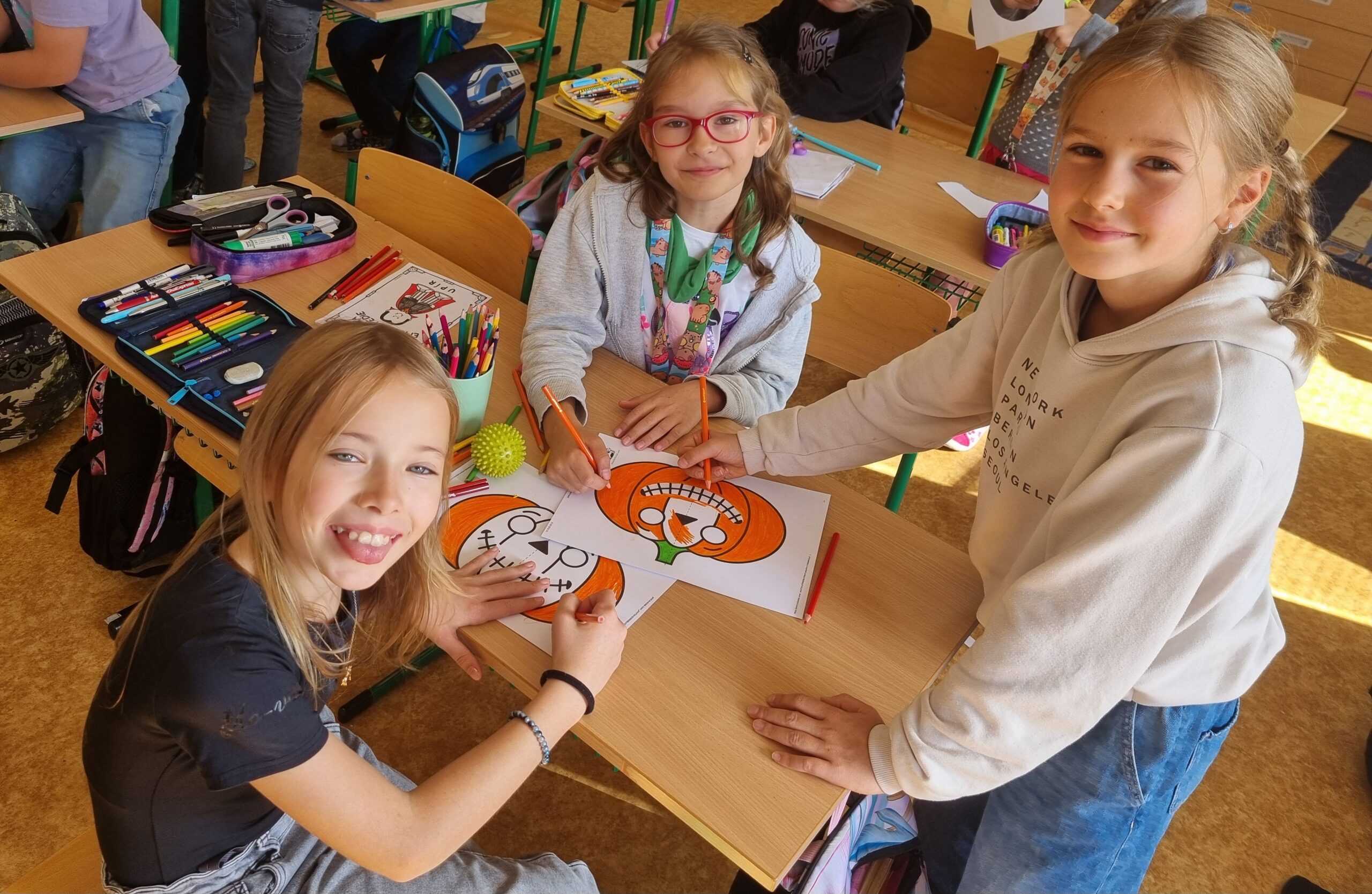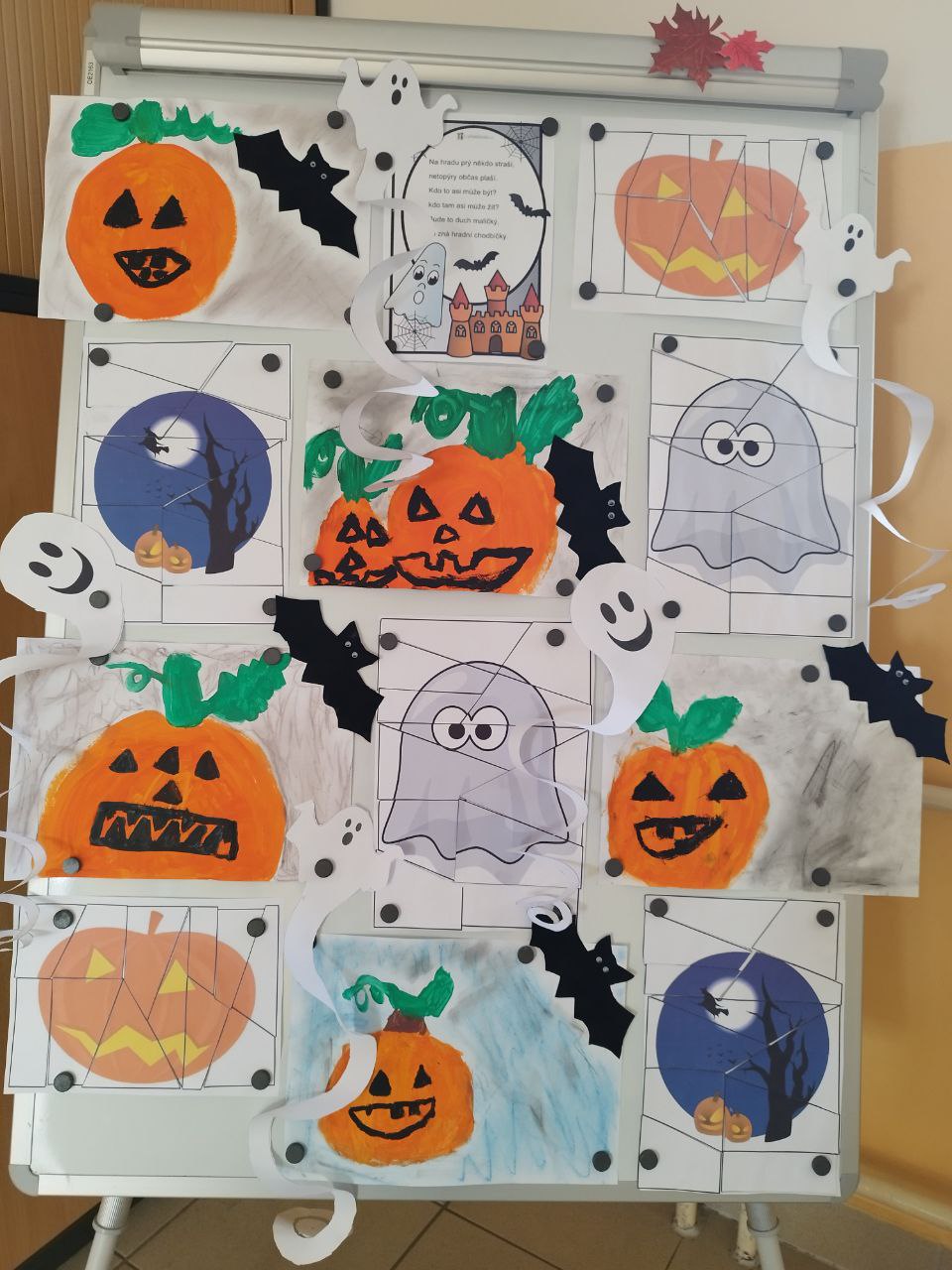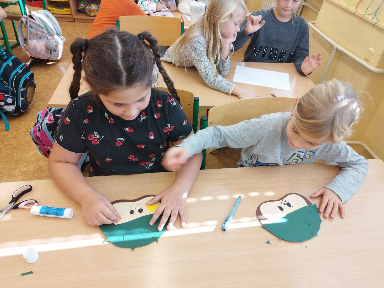 Říjen ve školní družině se nesl v duchu podzimu a blížícího se Halloweenu. Děti tvořily nejrůznější podzimní i strašidelné dekorace – vyráběly veselého dráčka ze špachtlí, ježka a kaštánka z barevného papíru, strom k příležitosti Dne stromů, proplétaný list či housenku z přírodnin. Nechyběla ani dýně s netopýrem a modelování z modelíny na téma podzim a Halloween.