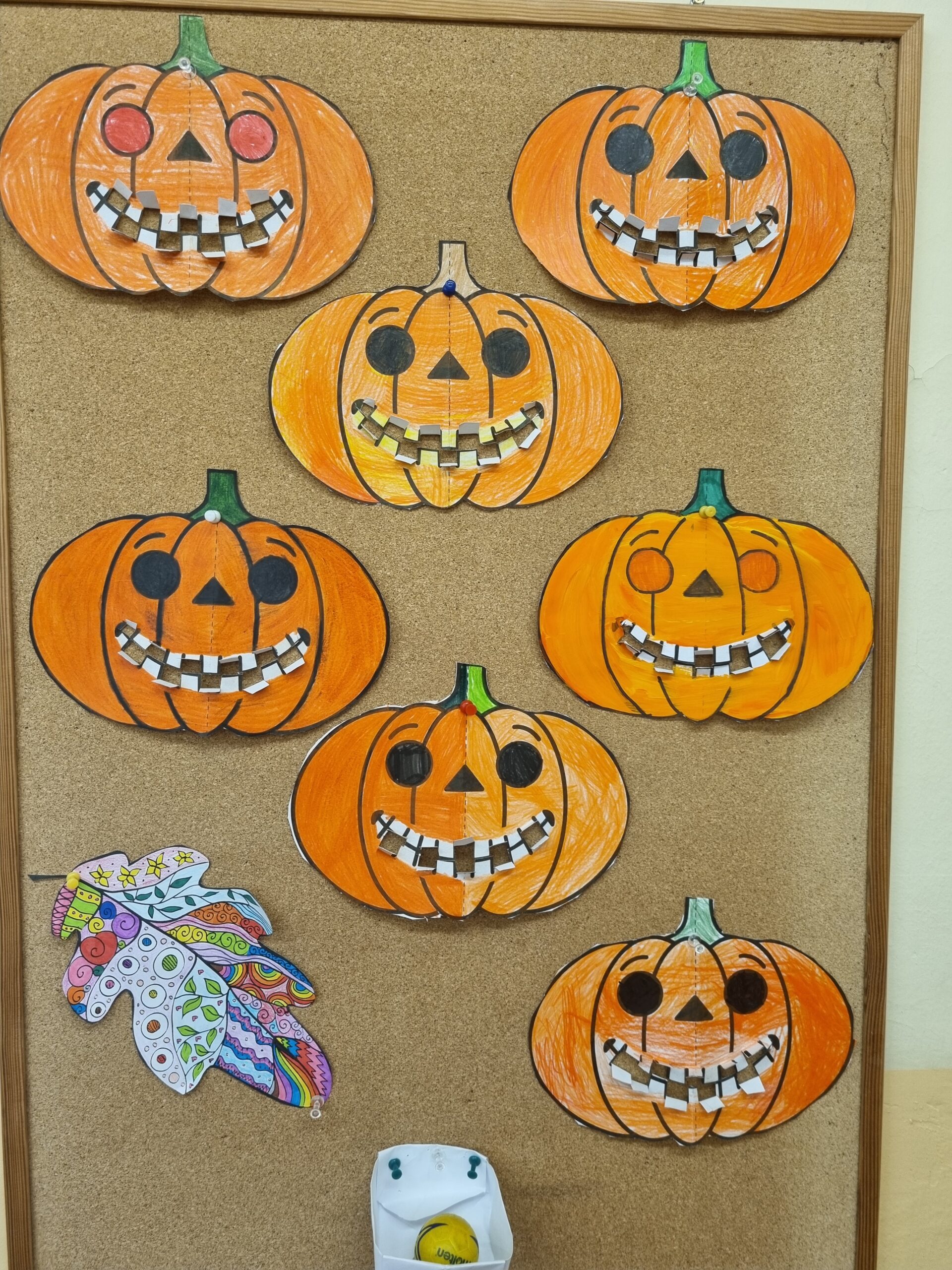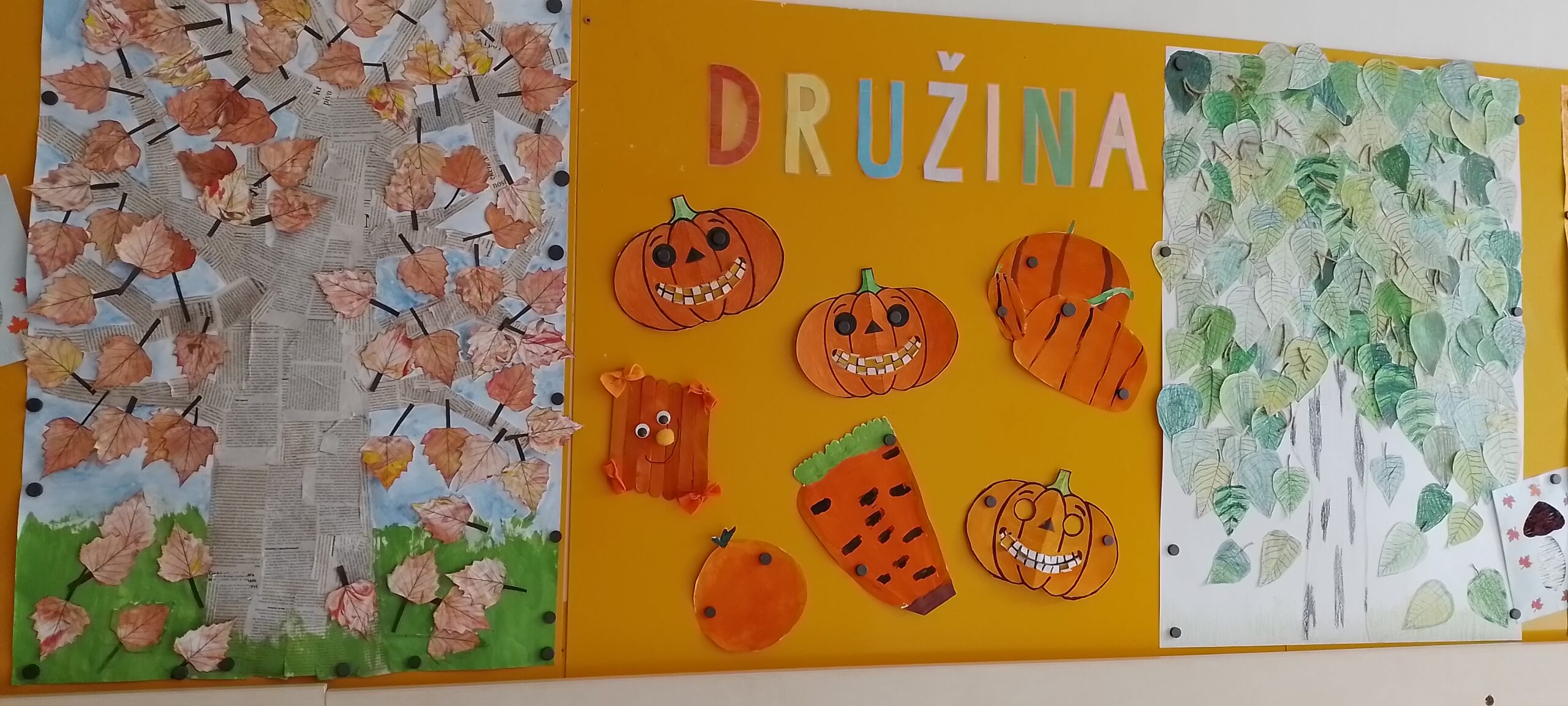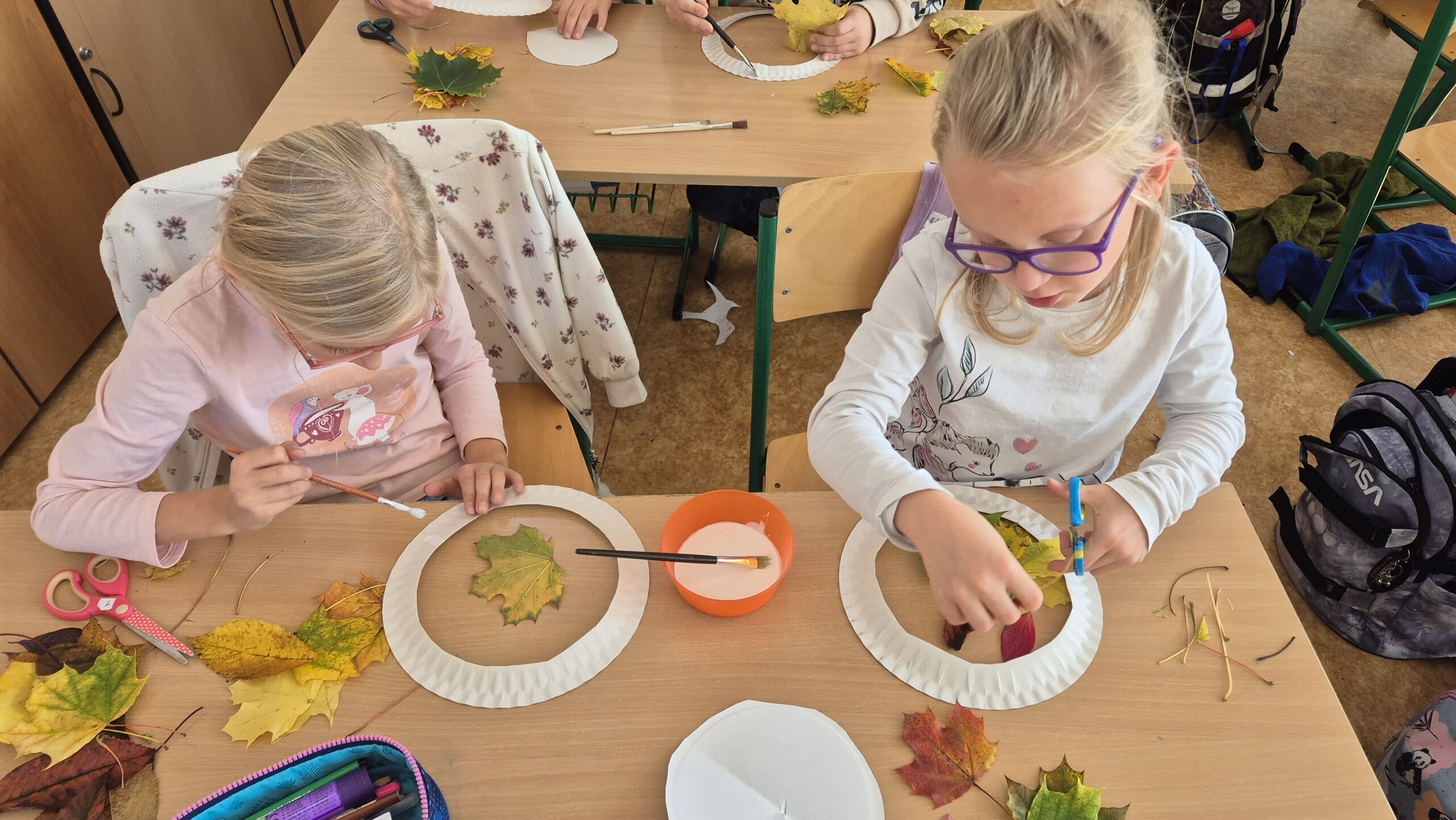 Říjen ve školní družině se nesl v duchu podzimu a blížícího se Halloweenu. Děti tvořily nejrůznější podzimní i strašidelné dekorace – vyráběly veselého dráčka ze špachtlí, ježka a kaštánka z barevného papíru, strom k příležitosti Dne stromů, proplétaný list či housenku z přírodnin. Nechyběla ani dýně s netopýrem a modelování z modelíny na téma podzim a Halloween.