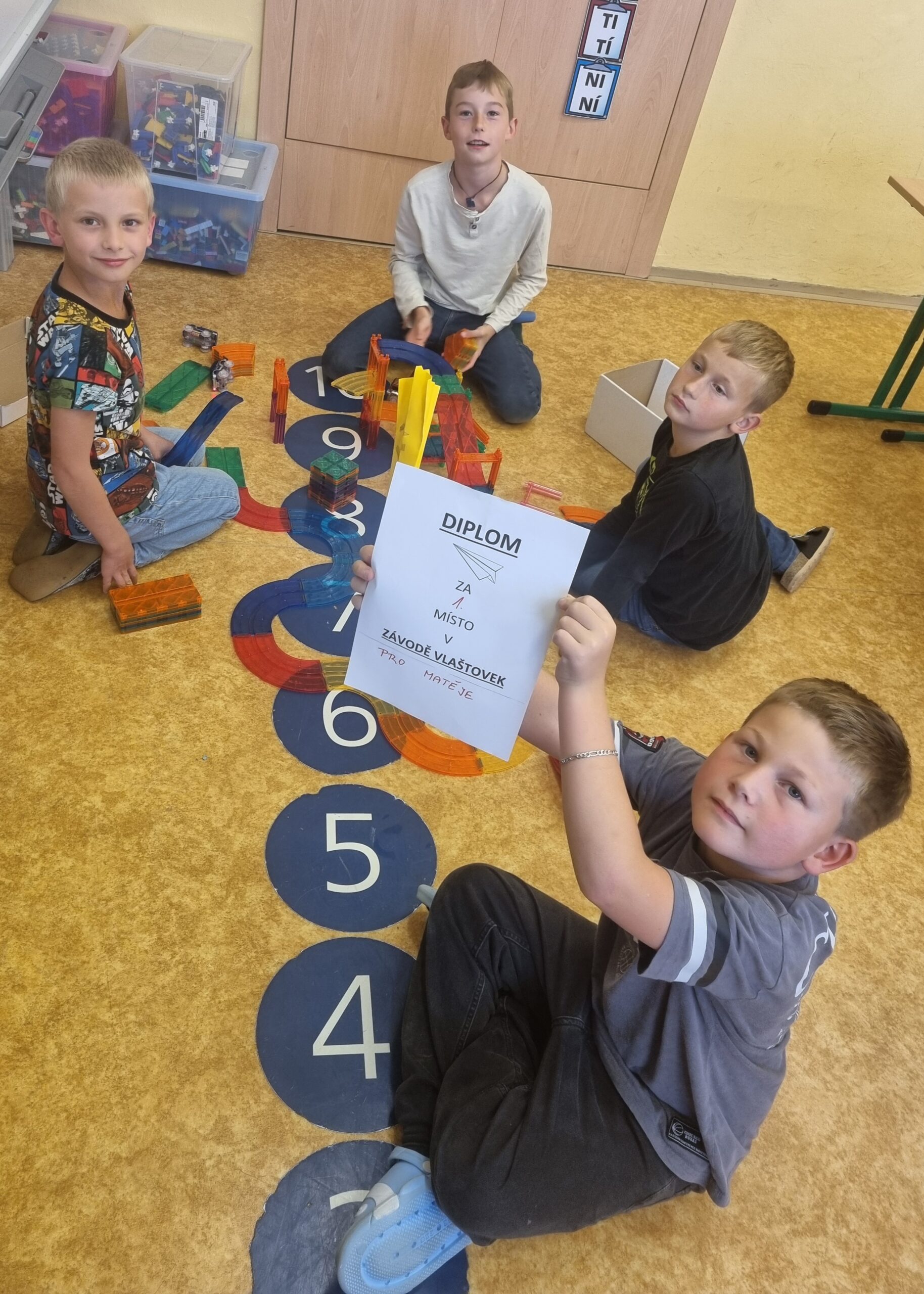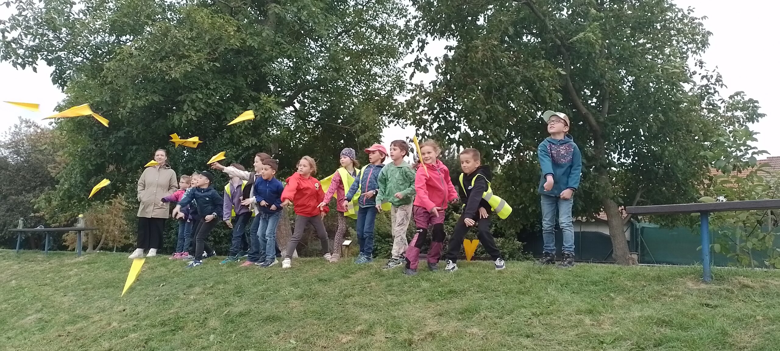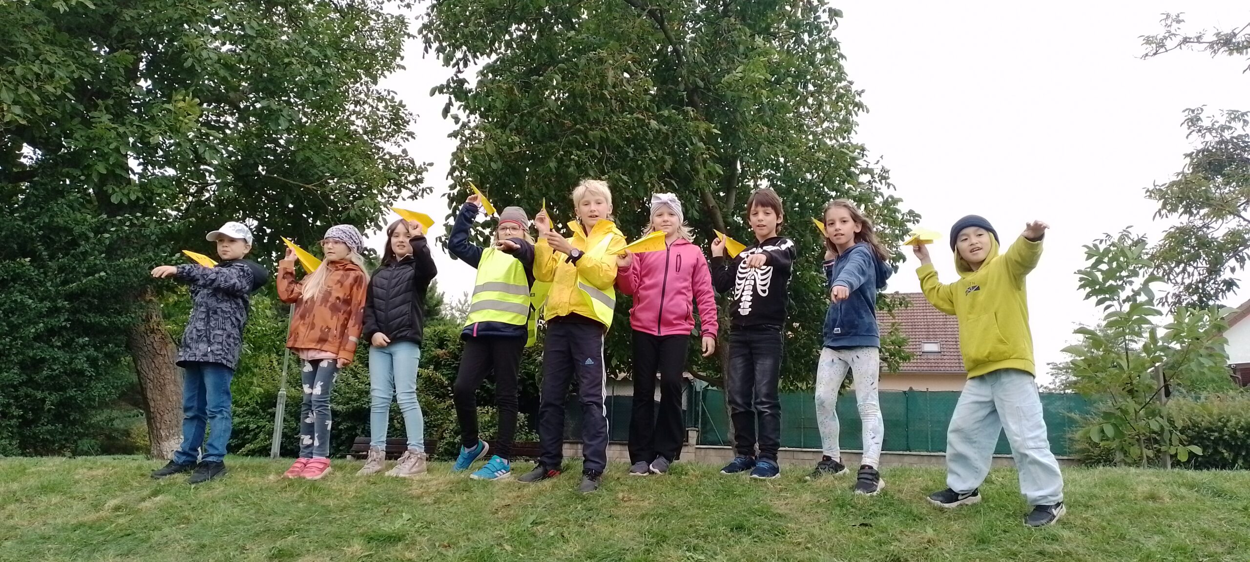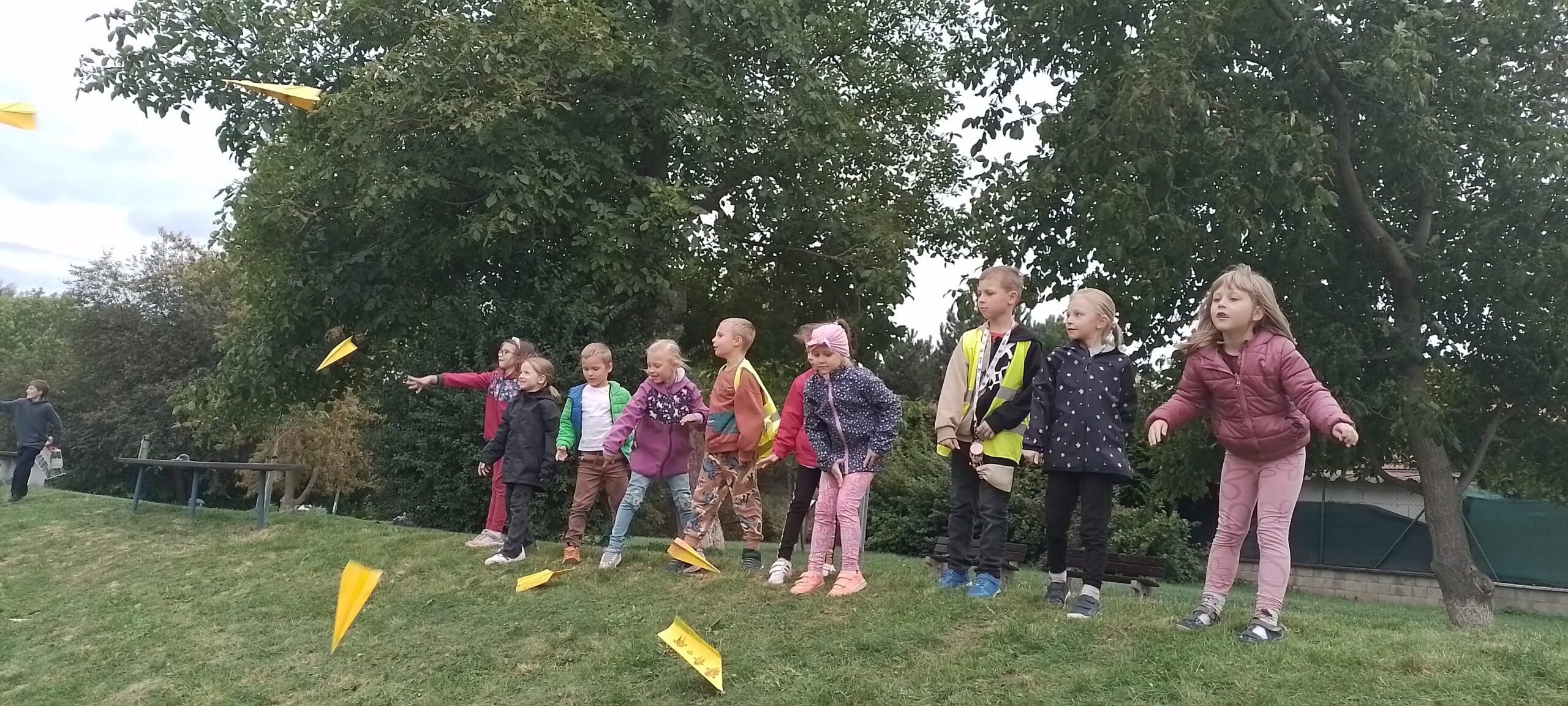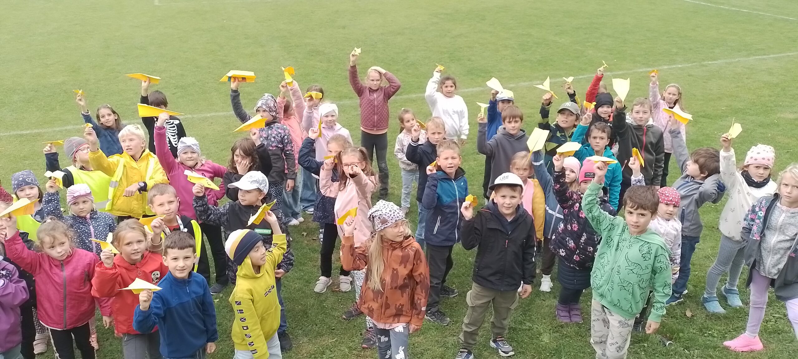 Oblíbené závody papírových vlaštovek ve školní družině proběhly v minulých dnech opět na fotbalovém hřišti.