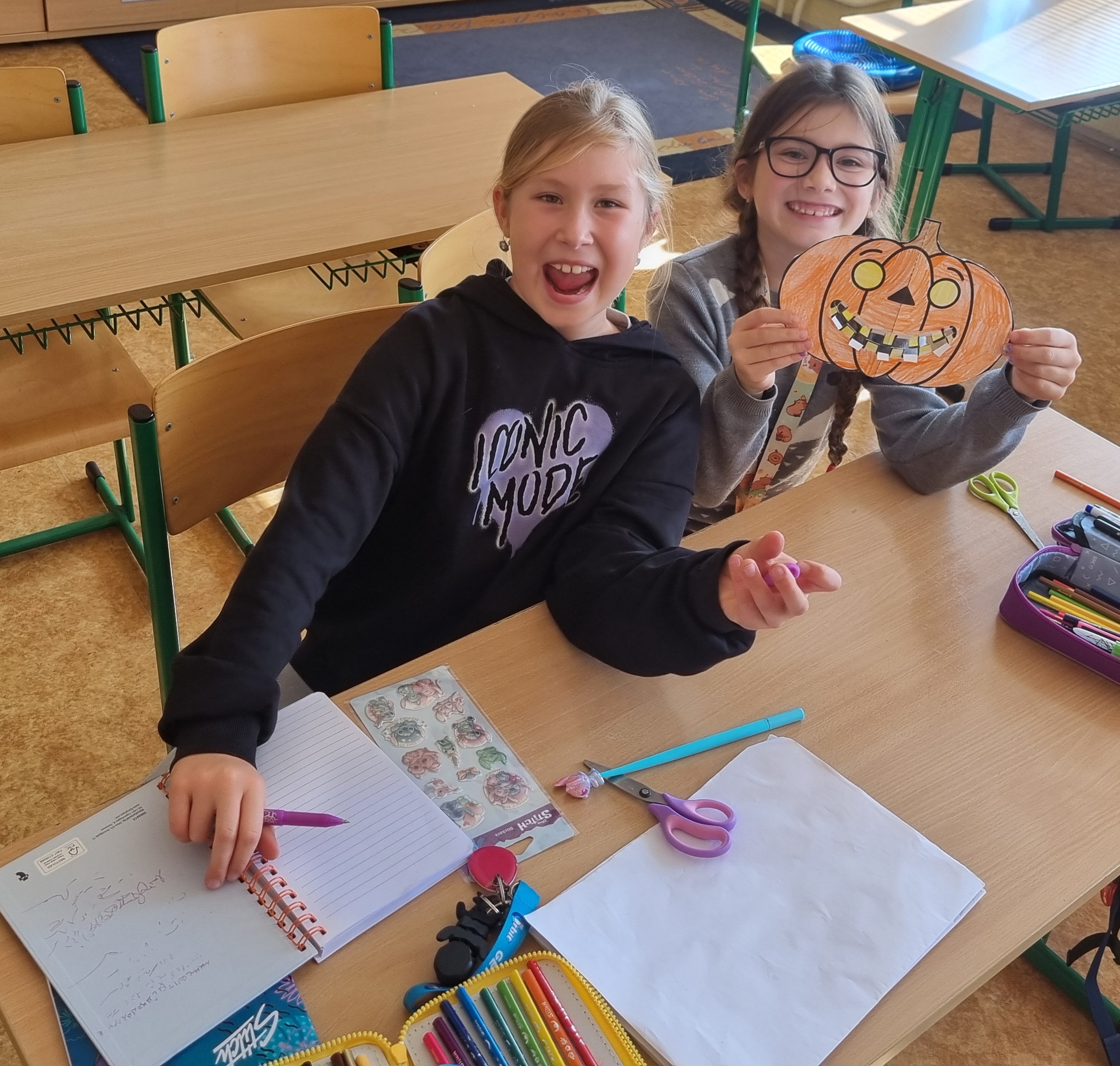 V duchu podzimu jsme tvořili i papírové dýně a užili si halloweenskou náladu – nechyběla halloweenská lušťovka ani veselé bingo.