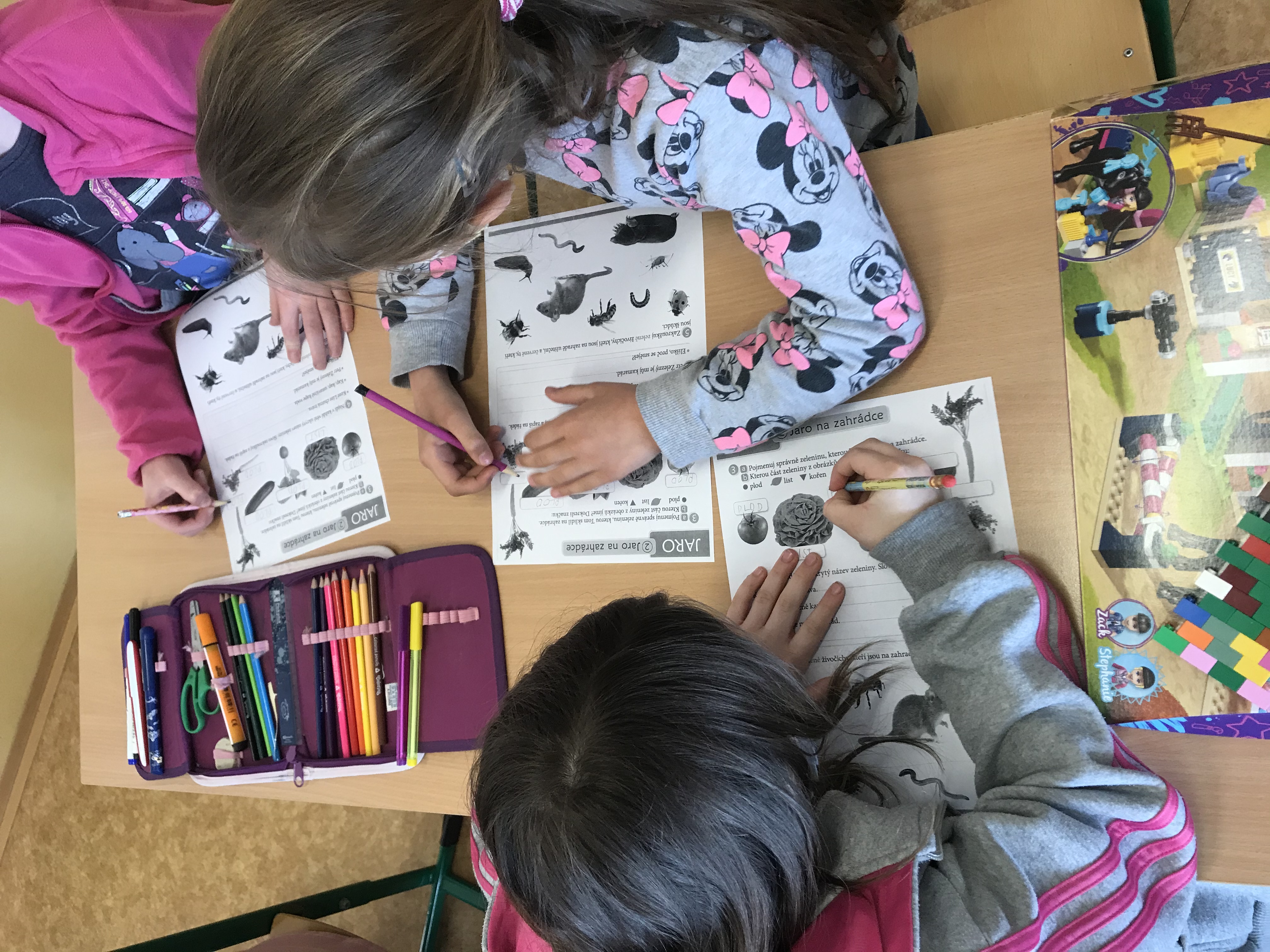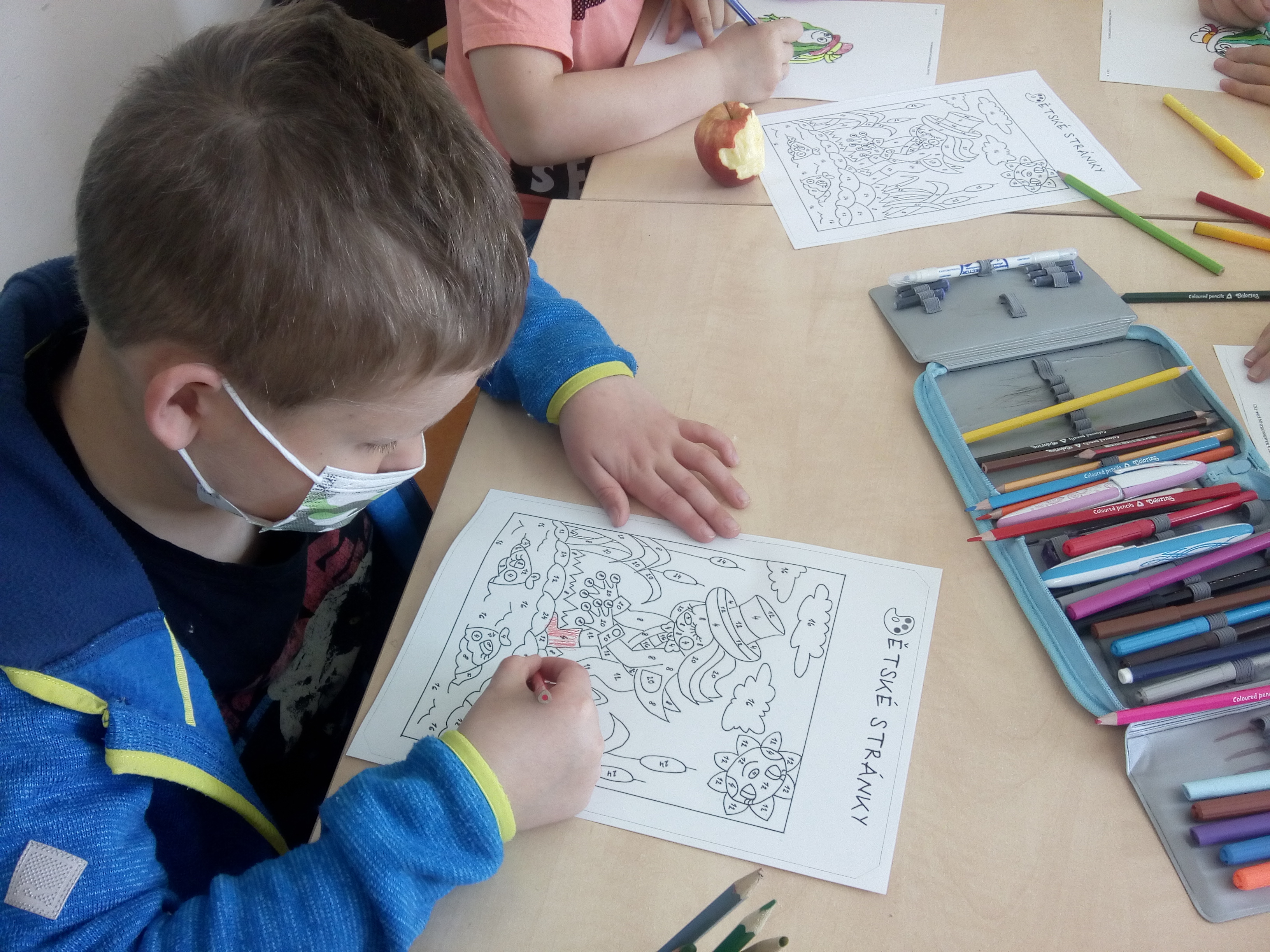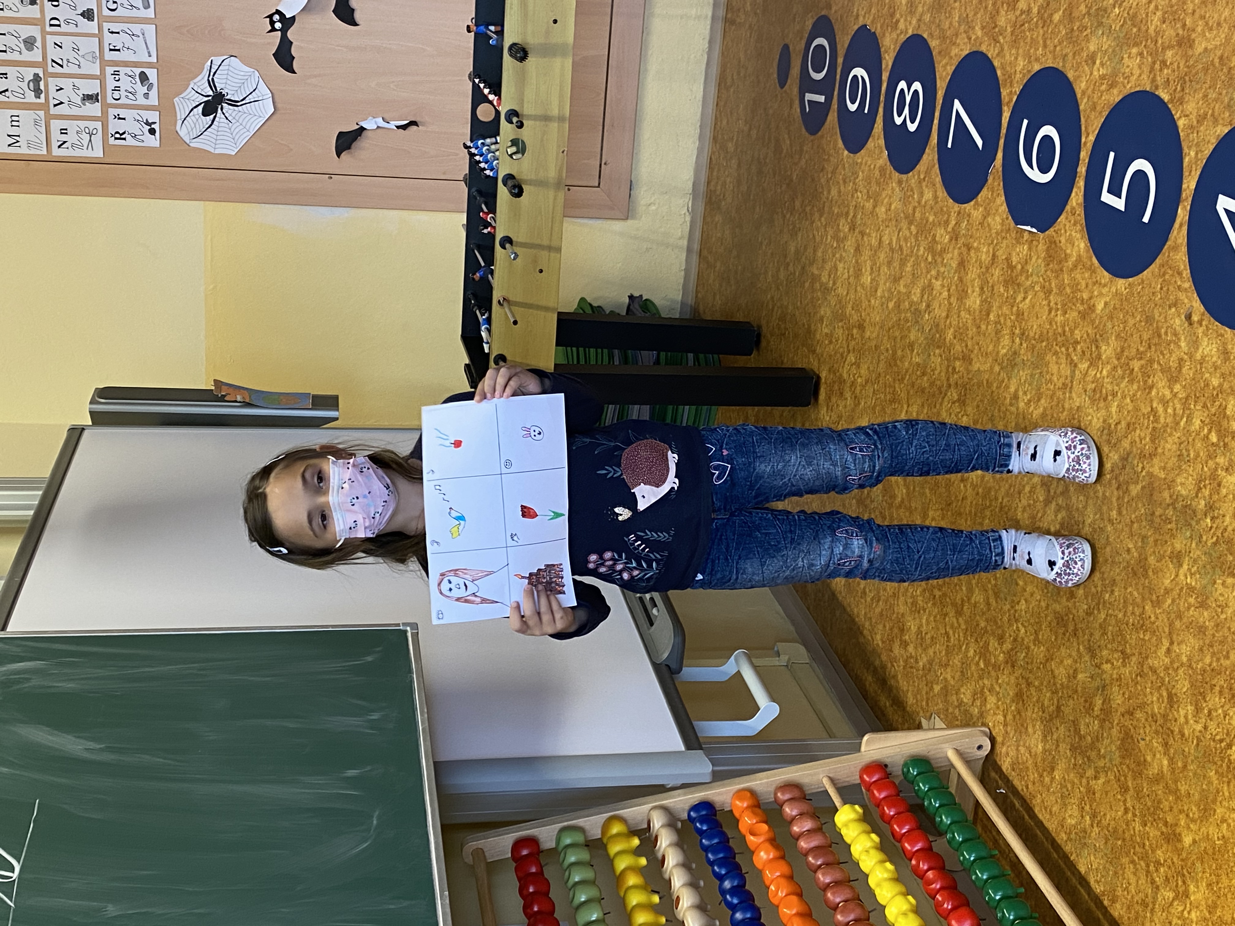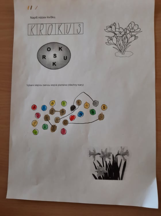 A když jsme si zrovna nehráli, tak jsme se trochu i učili. Procvičovali jsme matematické příklady formou omalovánek a různých spojovaček.