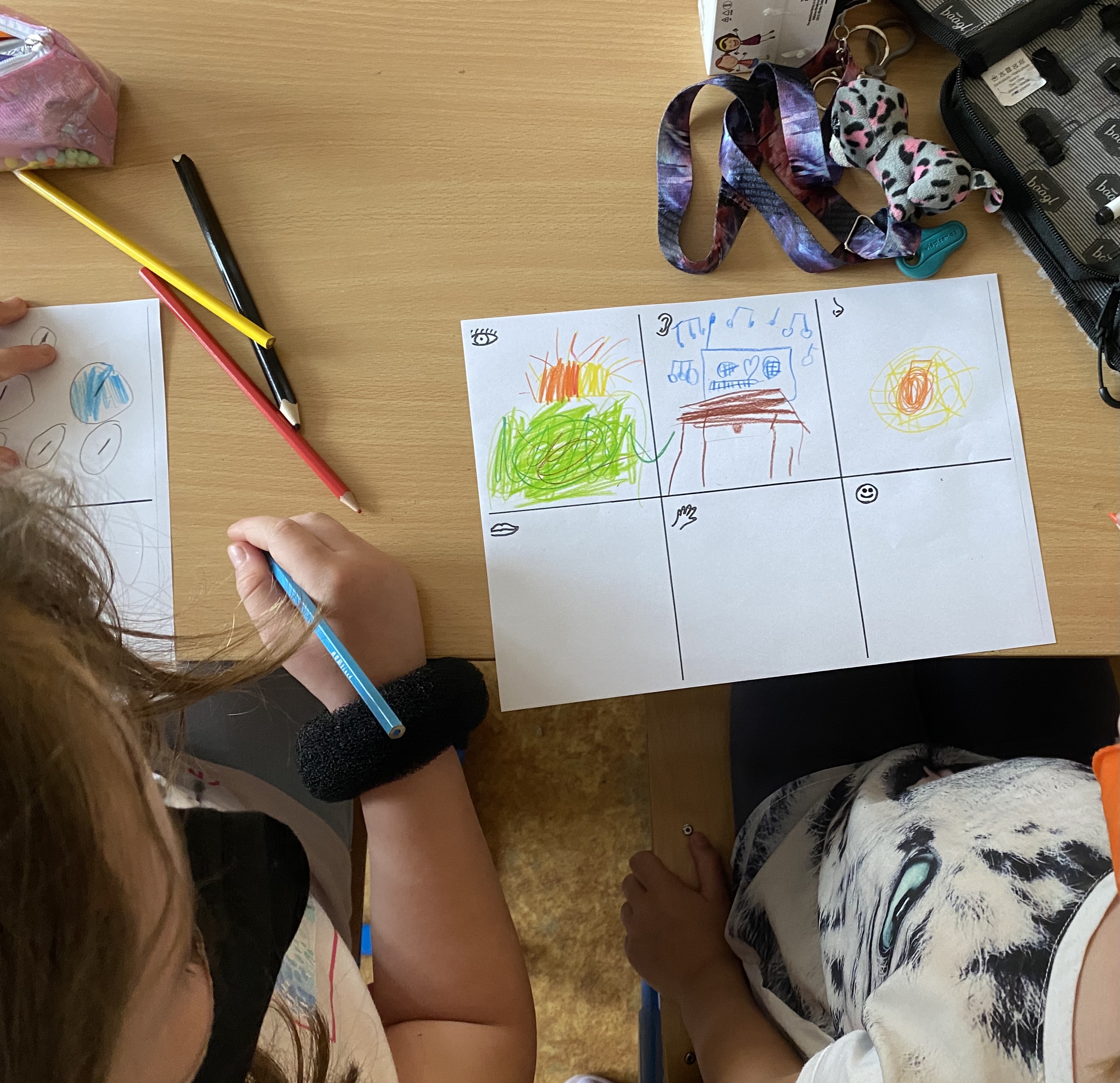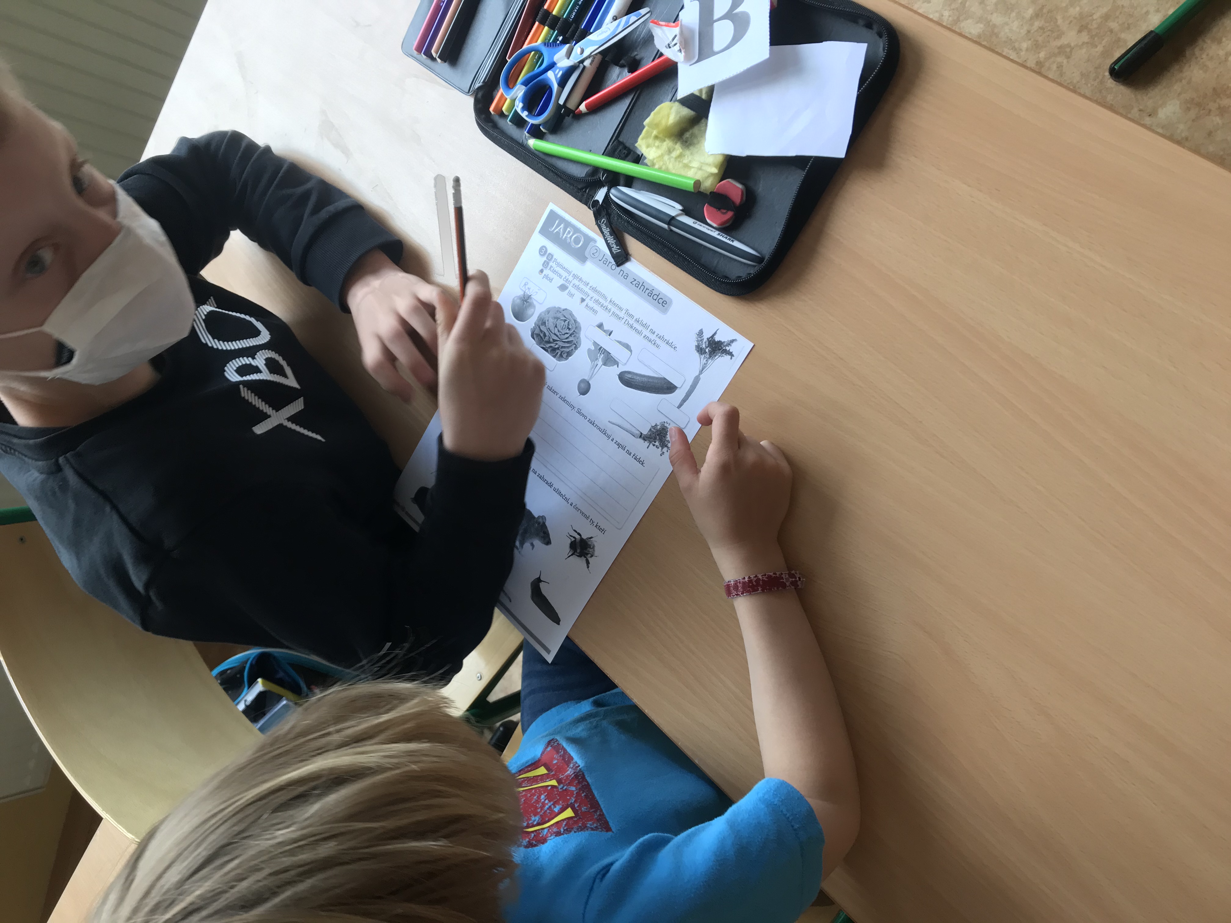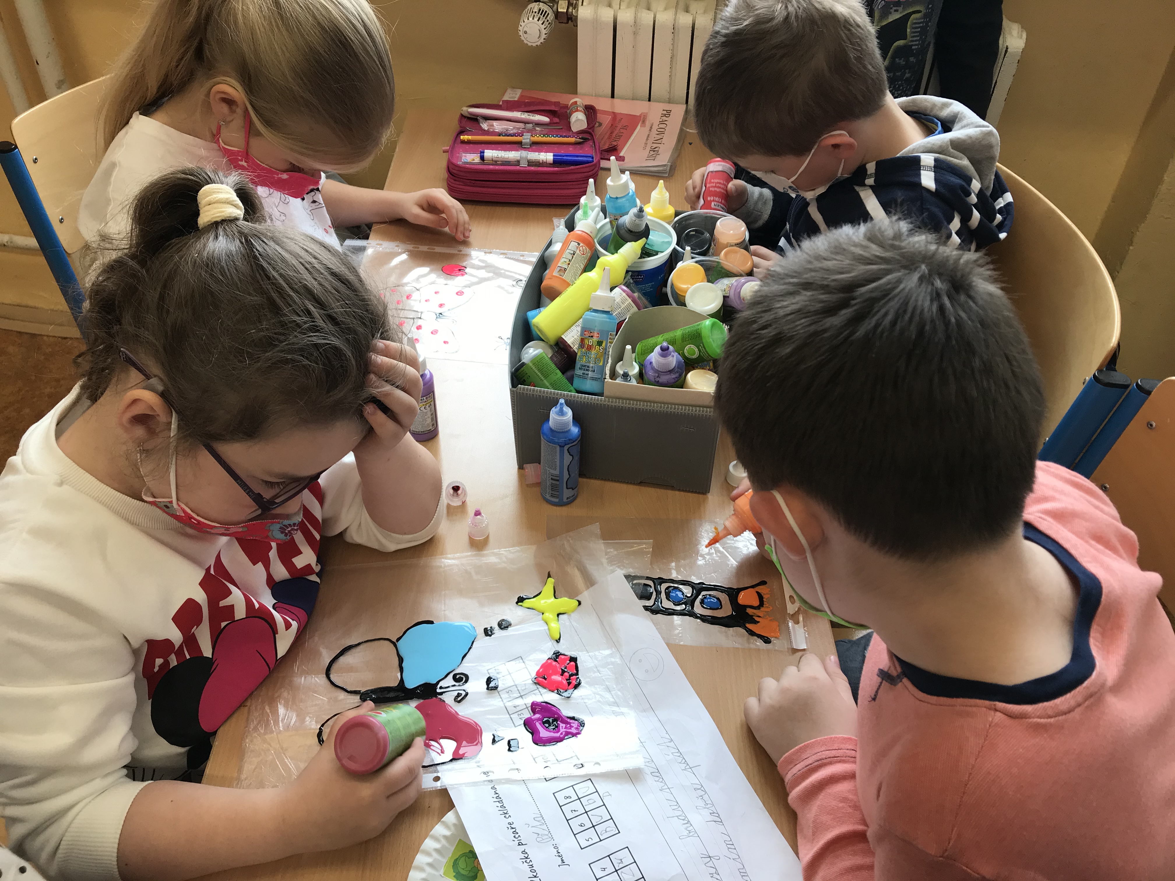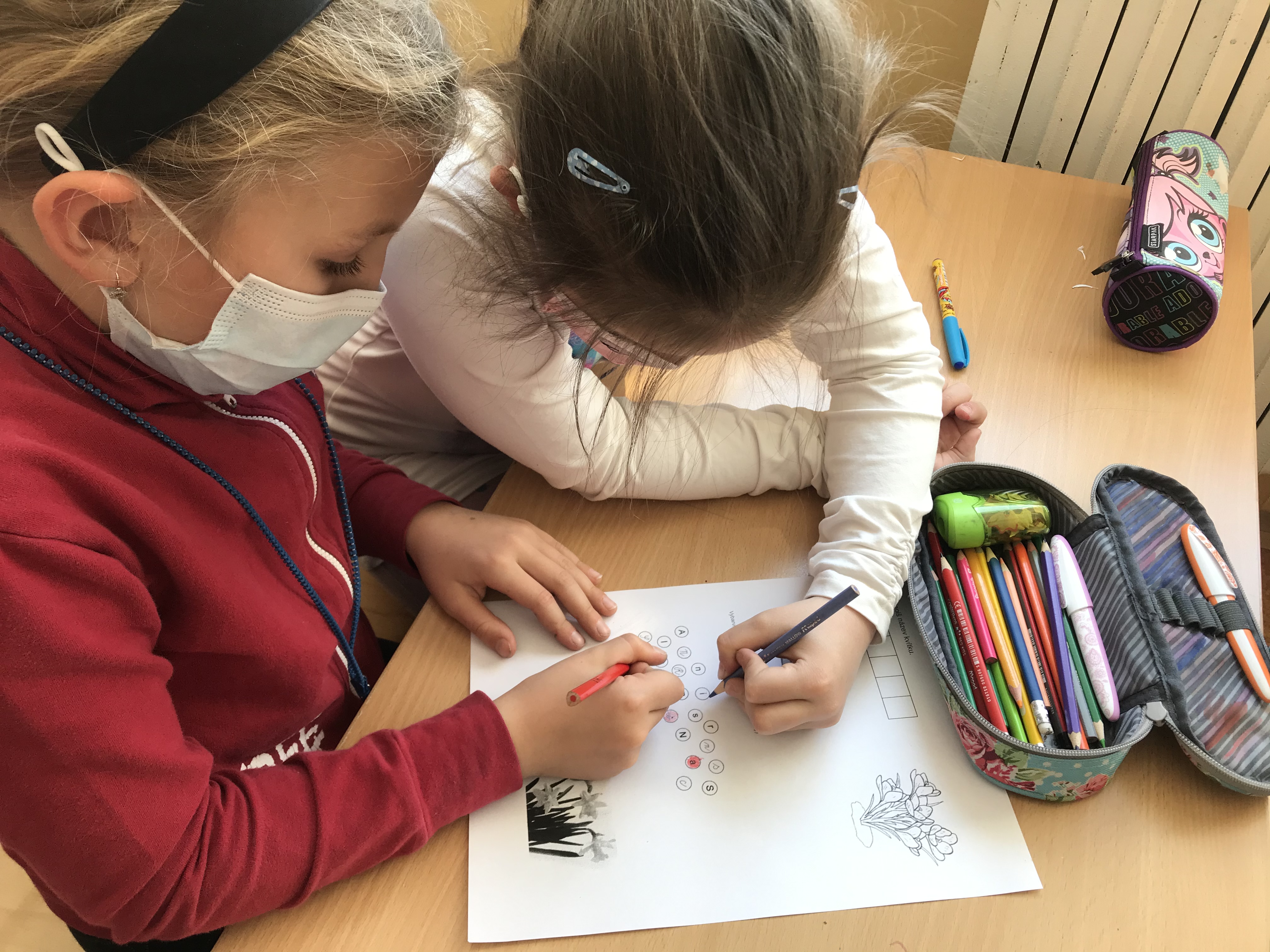 A když jsme si zrovna nehráli, tak jsme se trochu i učili. Procvičovali jsme matematické příklady formou omalovánek a různých spojovaček.
