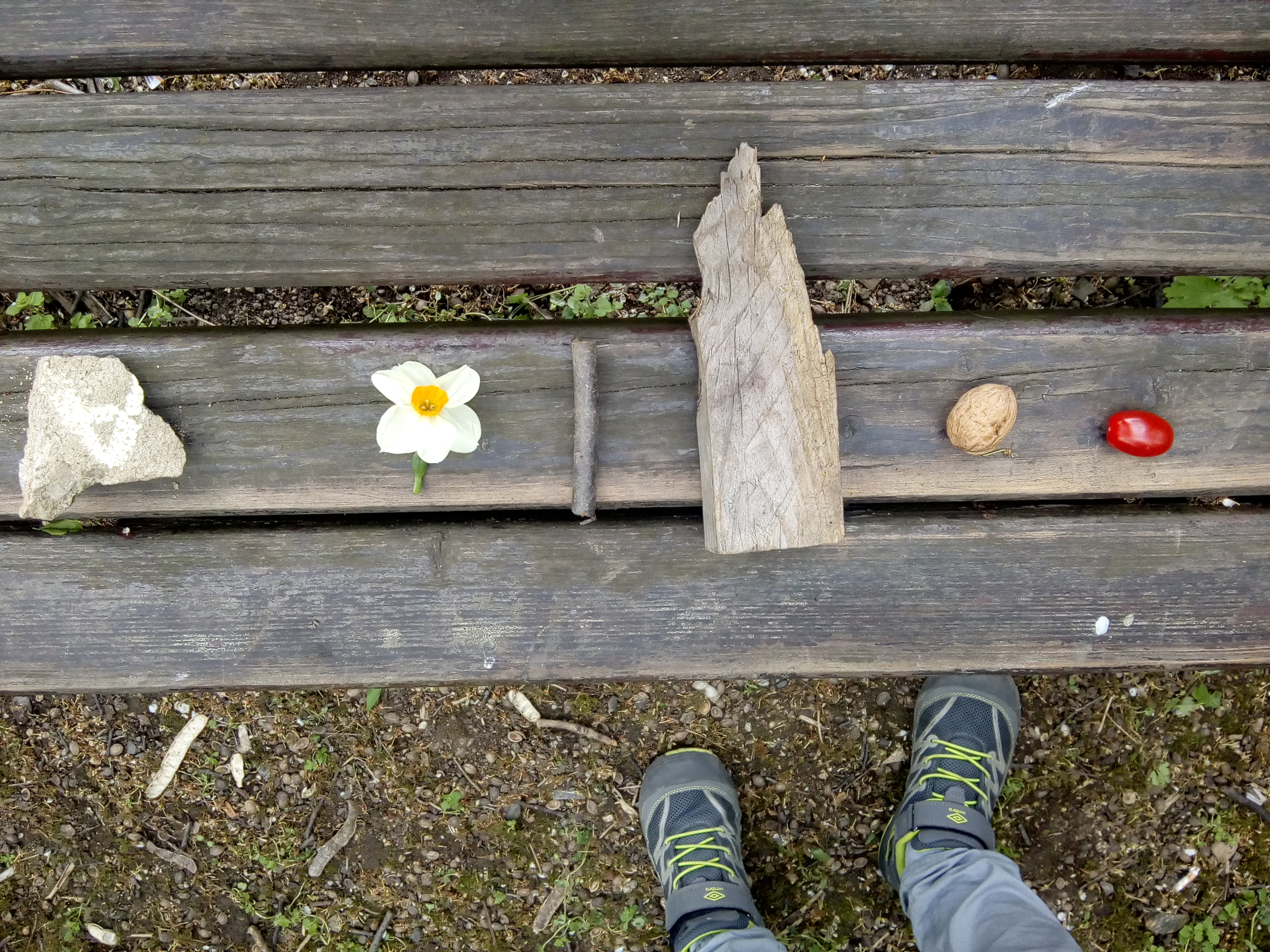 Při našich pravidelných vycházkách jsme venku častokrát trochu zmokli, ale také jsme viděli krásně barevnou duhu. Chodíme ven moc rádi v každém počasí!