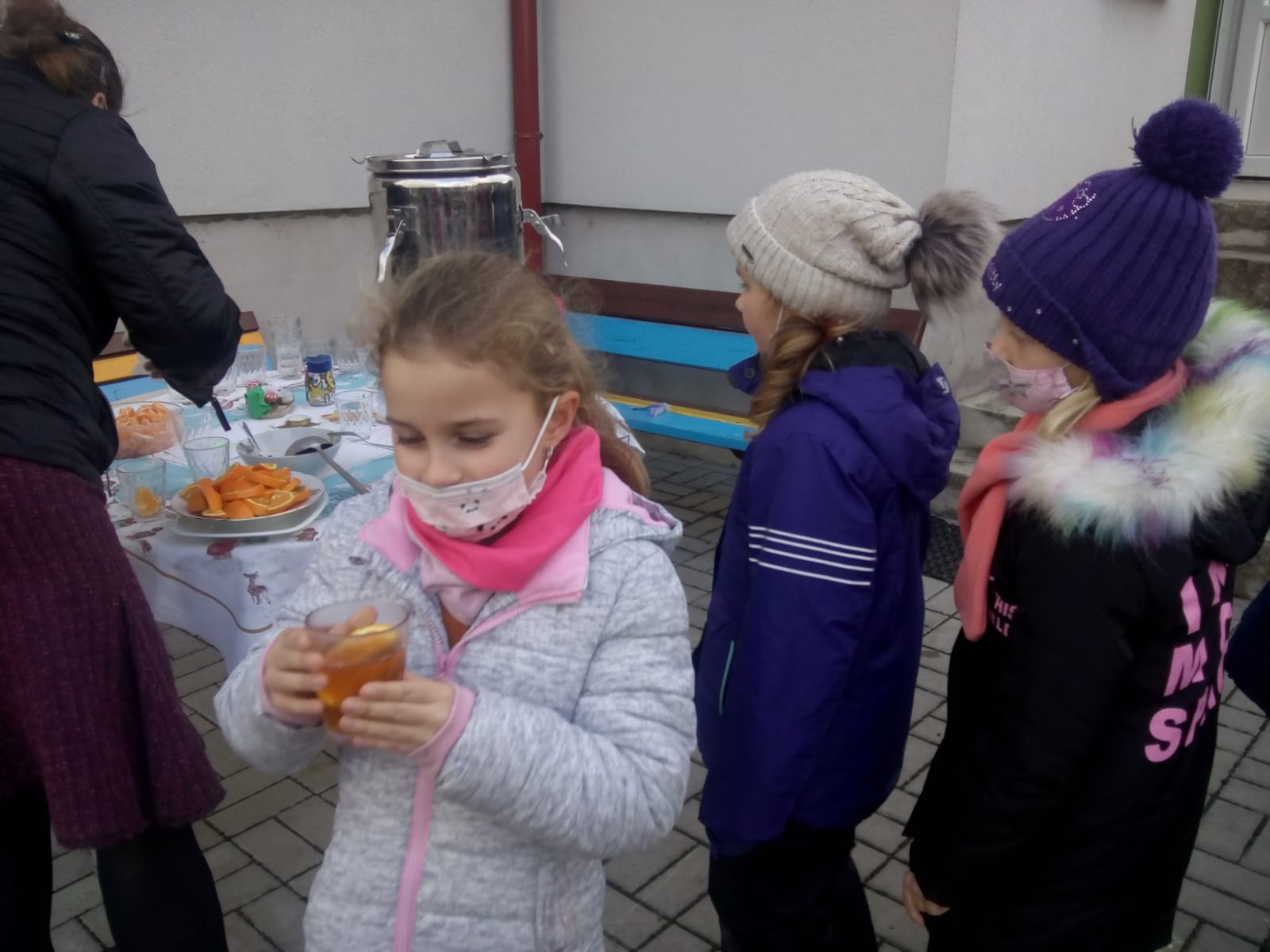 A tak se děti z druhých tříd rozhodly, že potěší ostatní děti a uvaří jim něco dobrého a byl to vánoční punč.