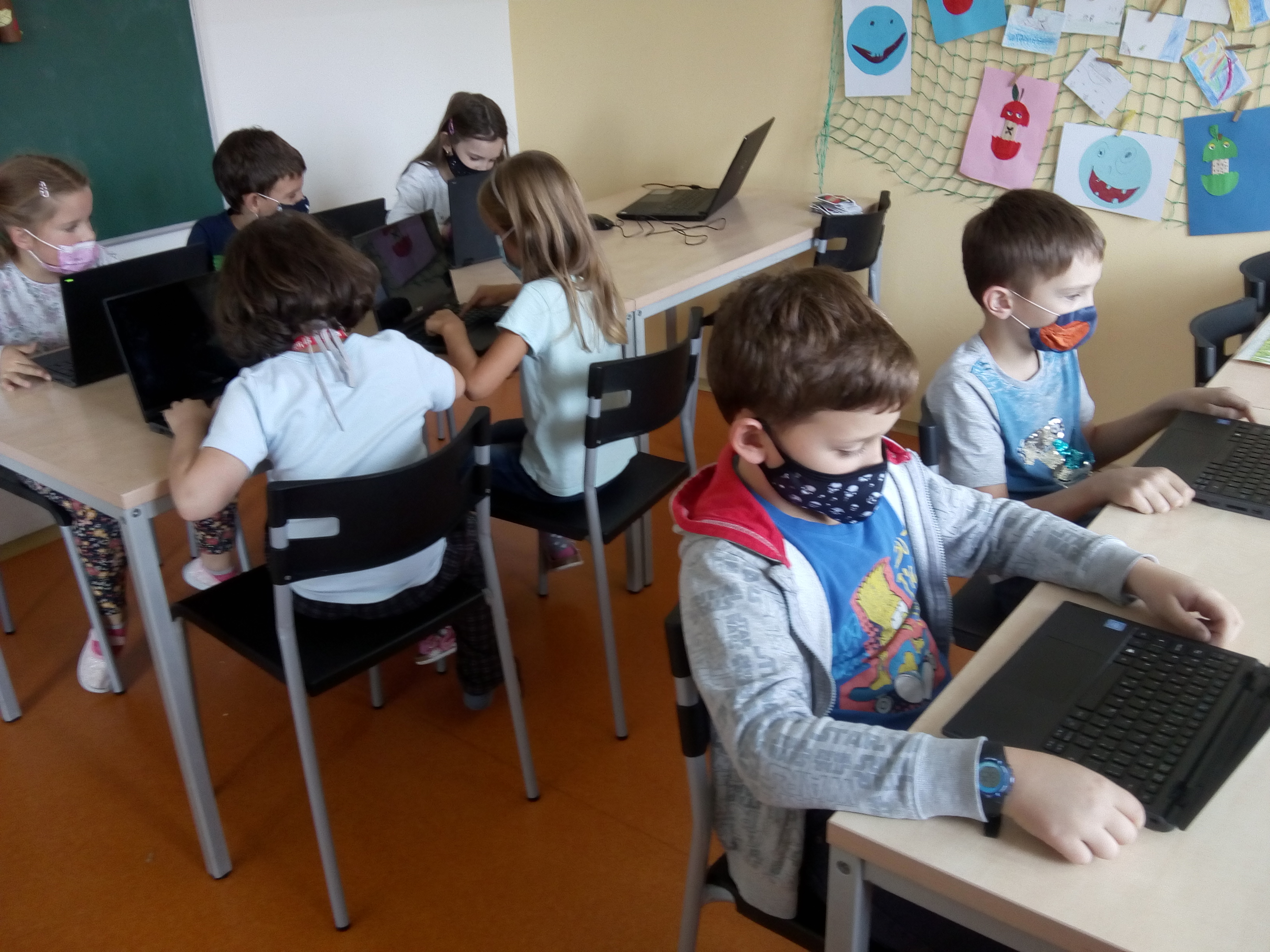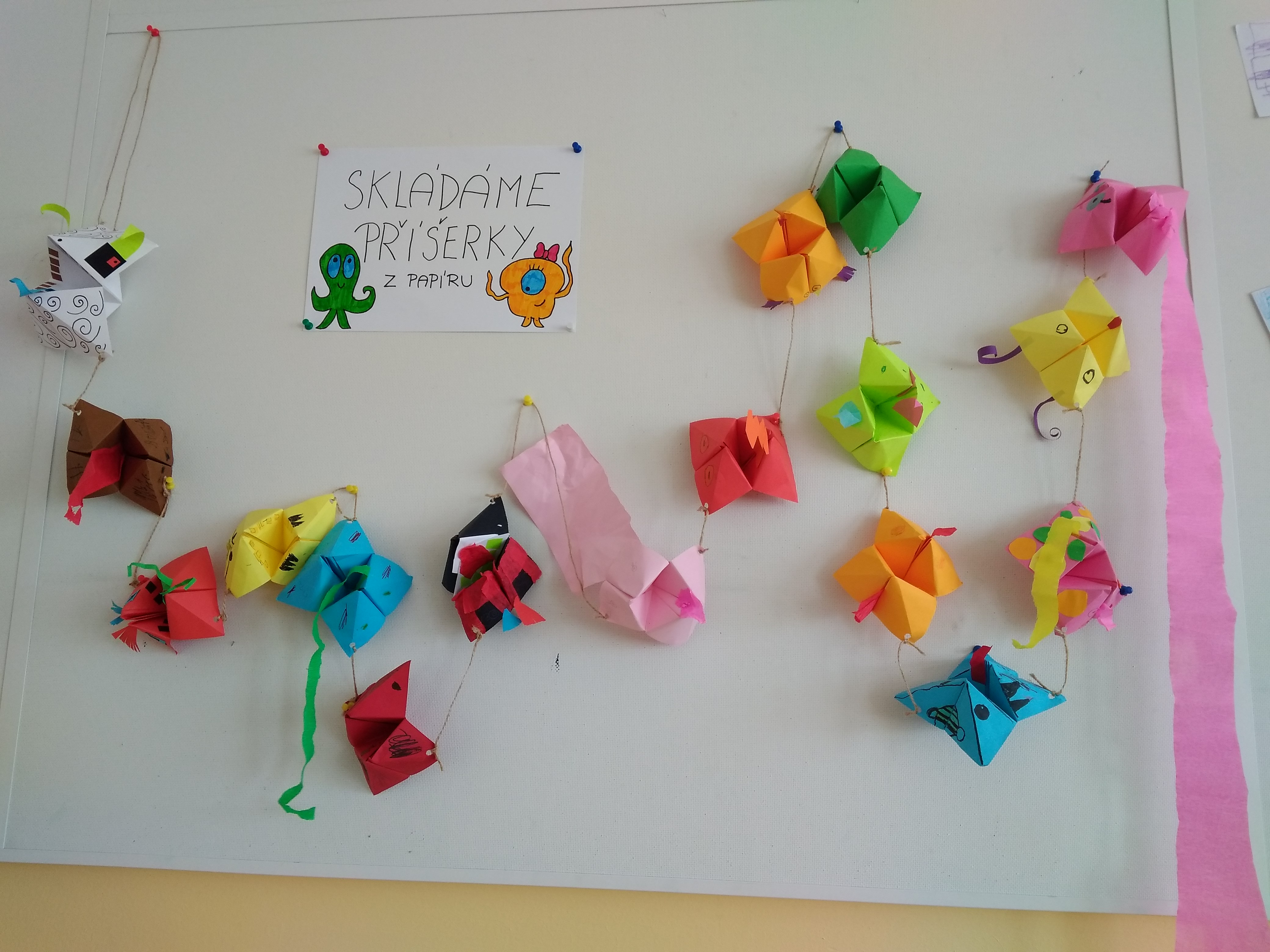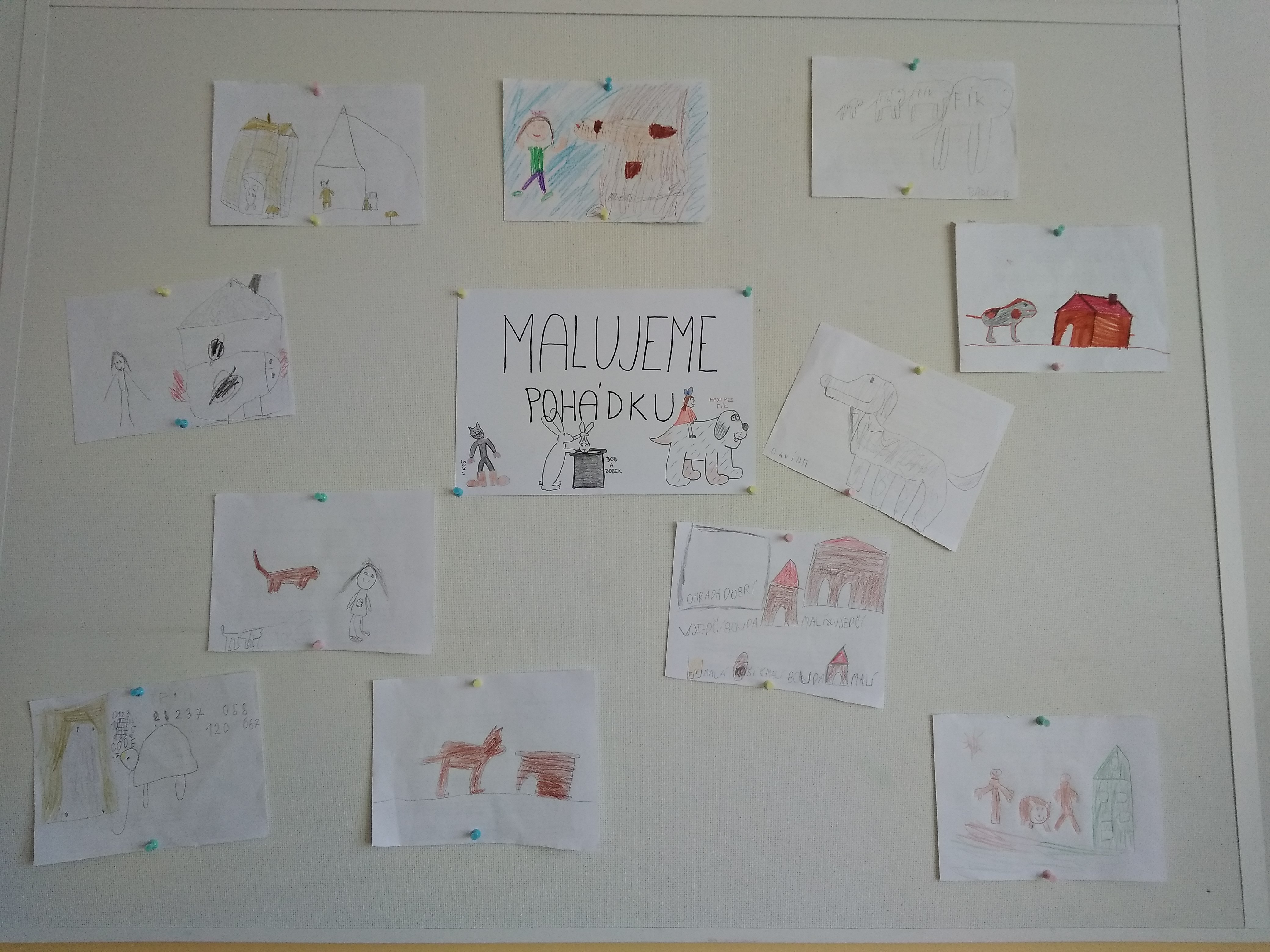 Jejich práce je vystavená na nástěnce před jídelnou v budově 1. stupně.