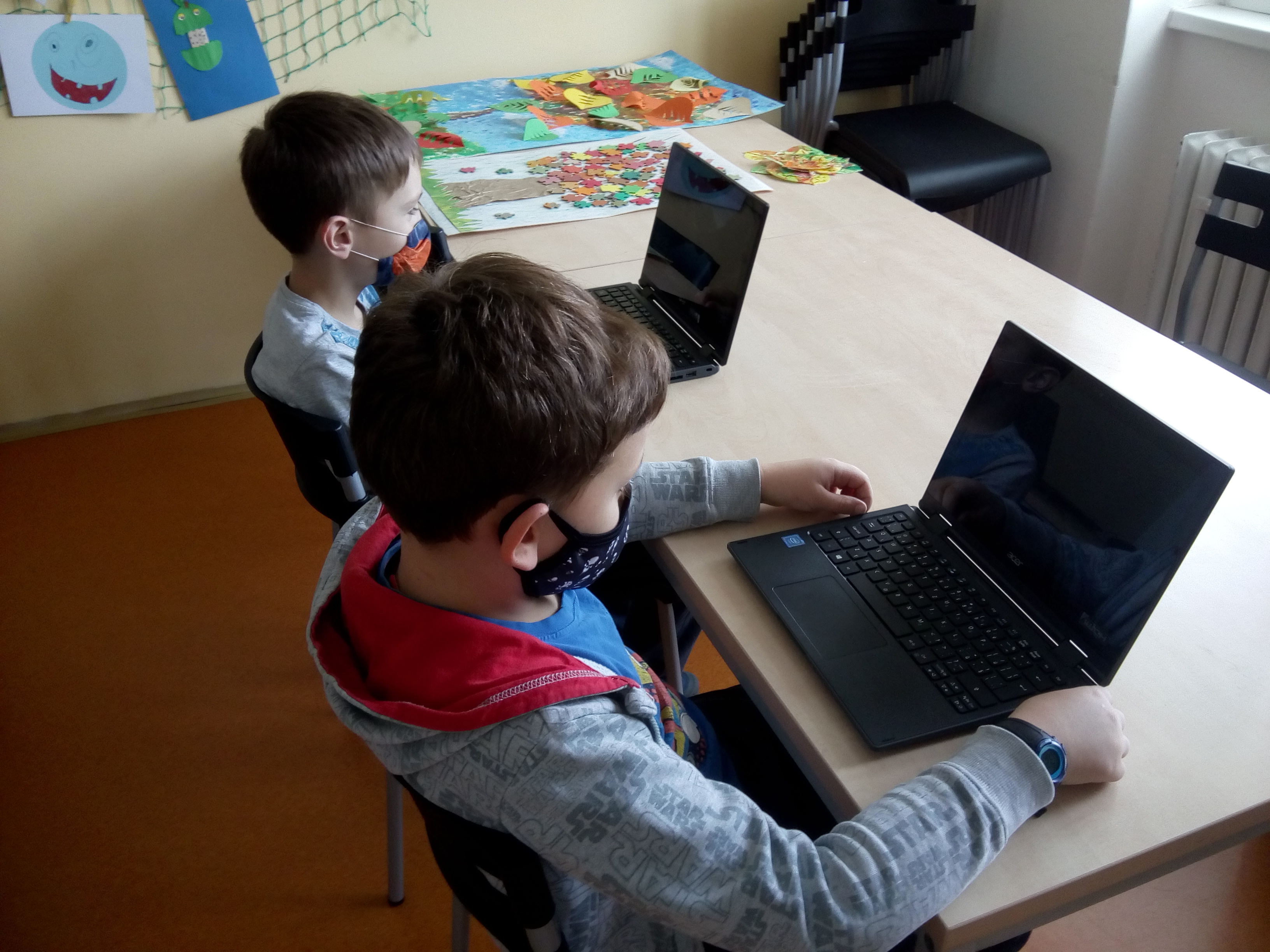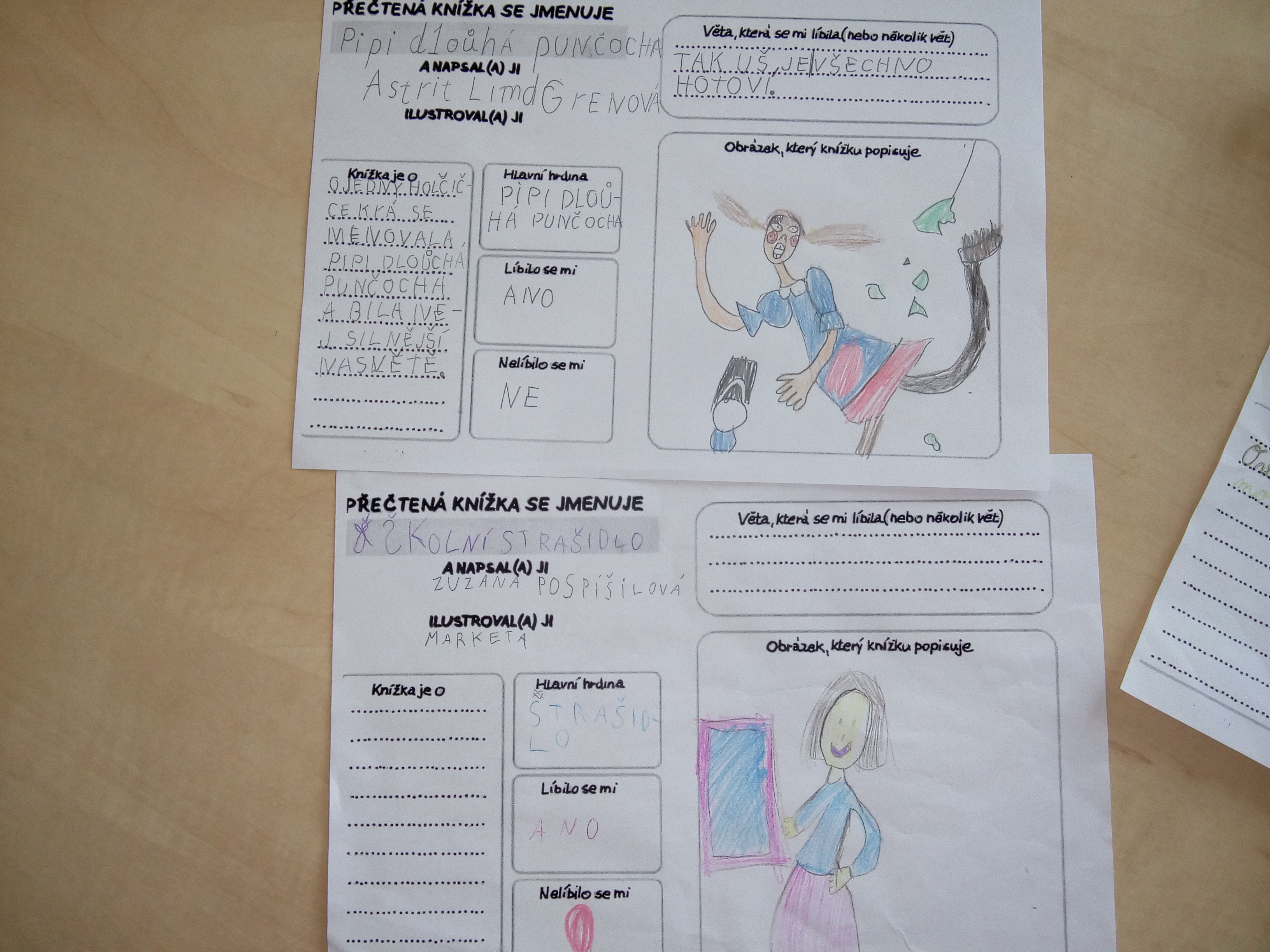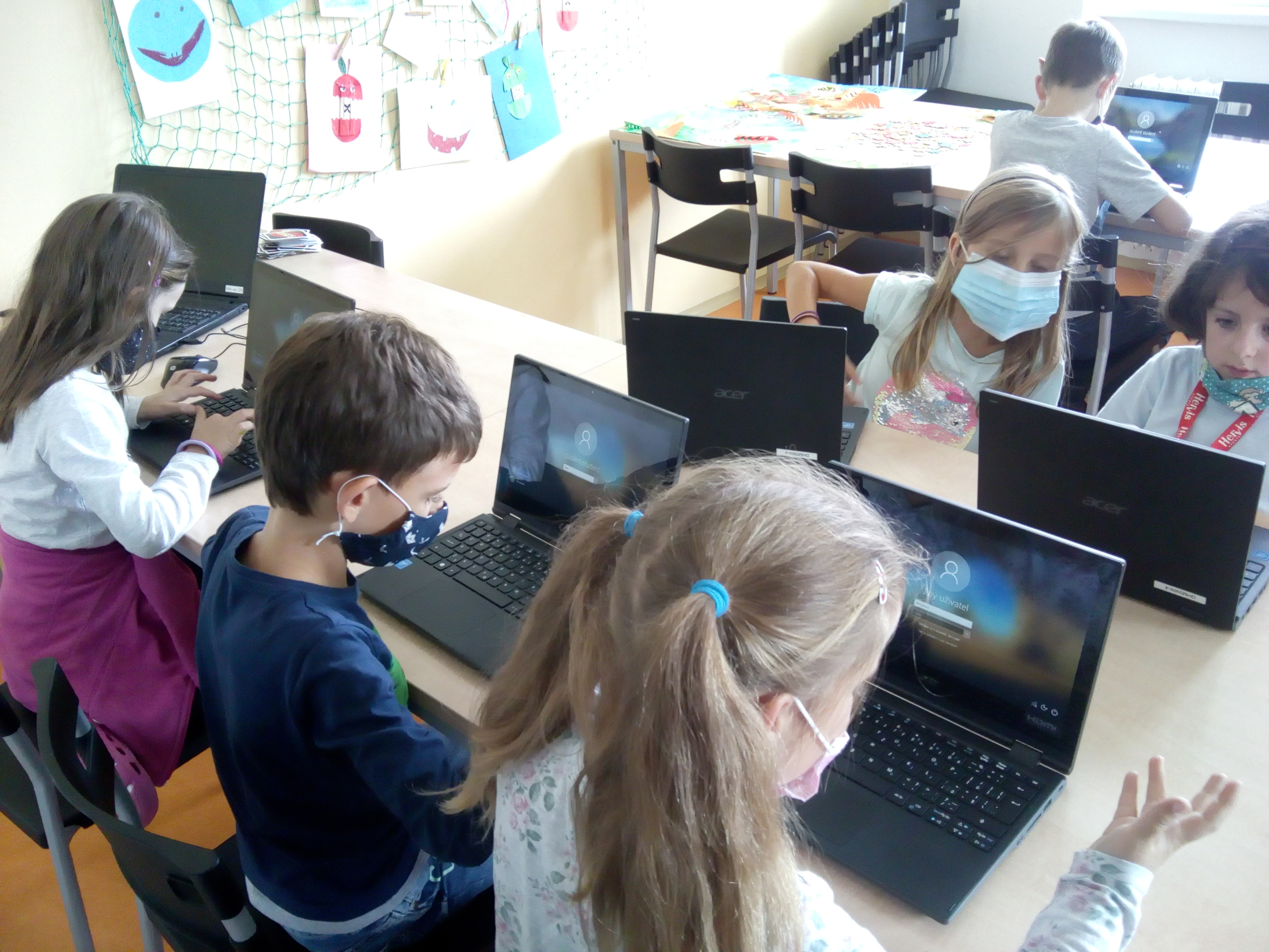 Jejich práce je vystavená na nástěnce před jídelnou v budově 1. stupně.