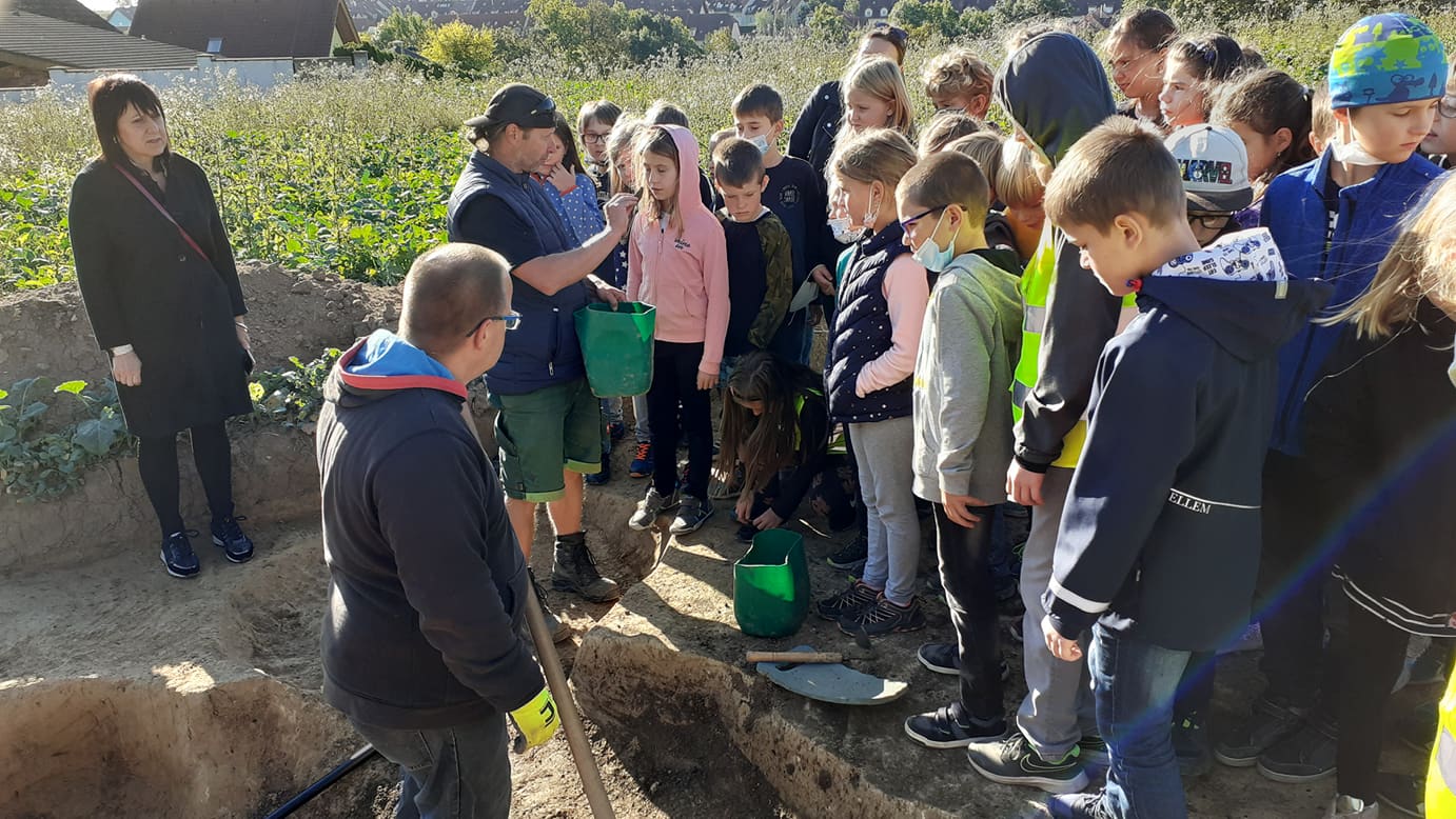 Žáci třetího ročníku spolu s IV. A měli možnost se podívat, jak se odkrývá svrchní vrstva půdy, nahlédli do zásobních jam, a co všechny asi nejvíce zaujalo, byla pohřební jáma, ve které se našla kostra keltského bojovníka s mečem a kopím. O kousek dál odpočívala žena ze stejné doby.