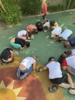 Protože září je první podzimní měsíc, křídami jsme jej ztvárnili na chodník kolem školky.