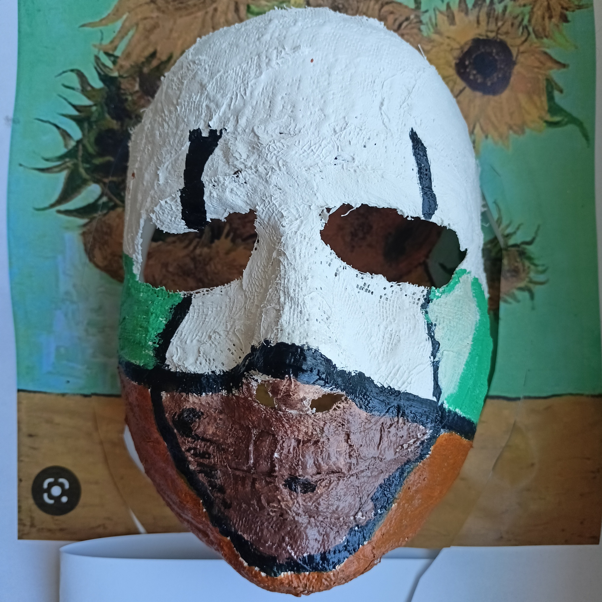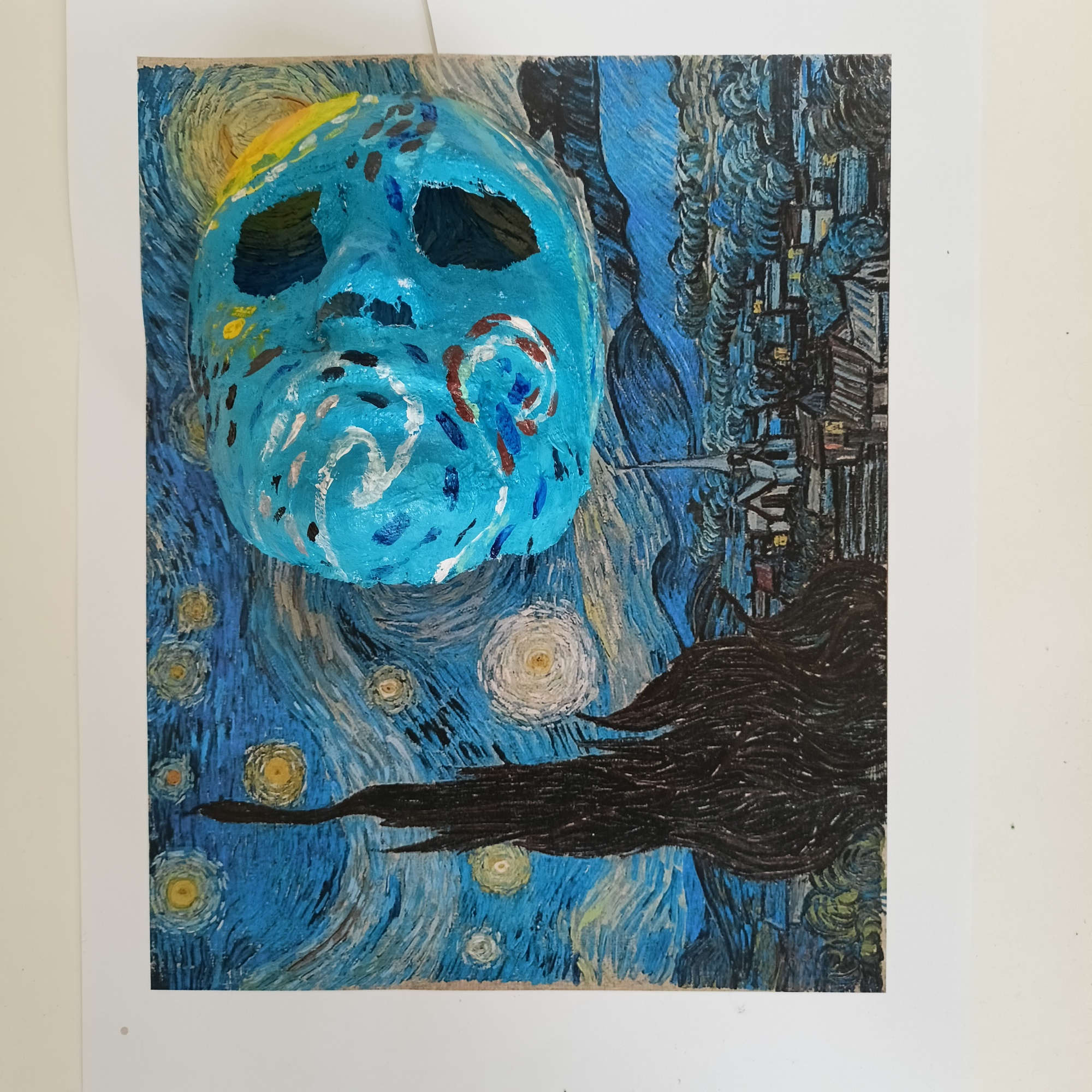 Stali jsem se součástí obrazu světových tvůrců!! Naše podoba (jako maska), kterou jsme malovali, byla včleněna do díla, kde v některých případech dokonale splynula s malovaným pozadím. Někteří z nás si s tématem obrazu pohráli po svém, ale to nijak nenarušuje zadání, protože hledáme nové a tvořivé cesty. Jak se nám díla povedla vidíte ve fotogalerii.