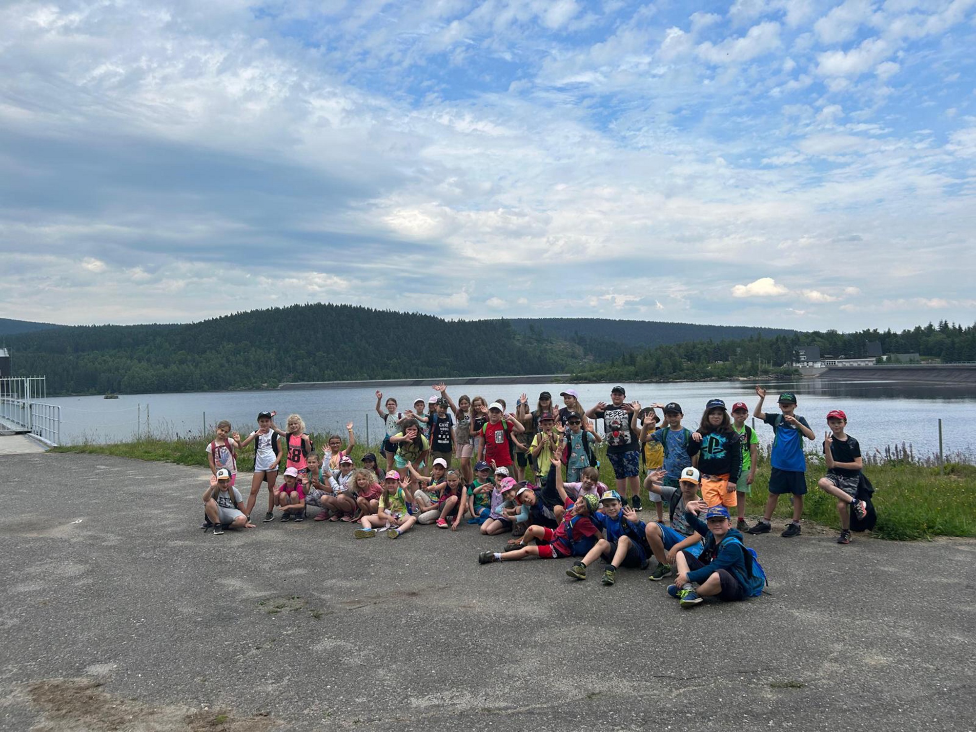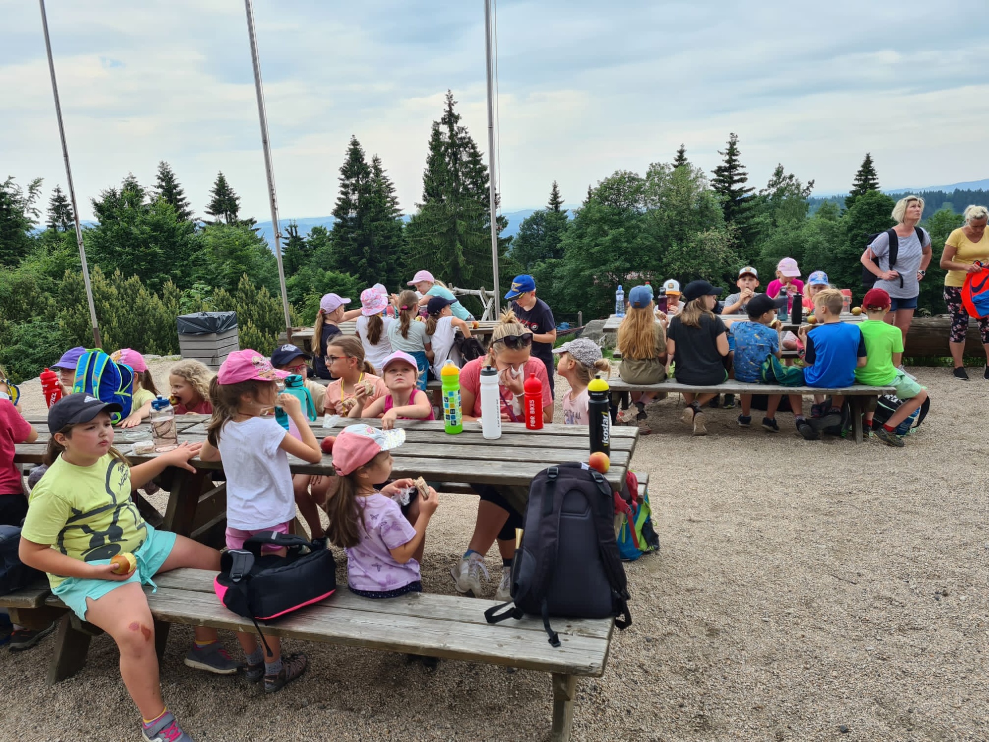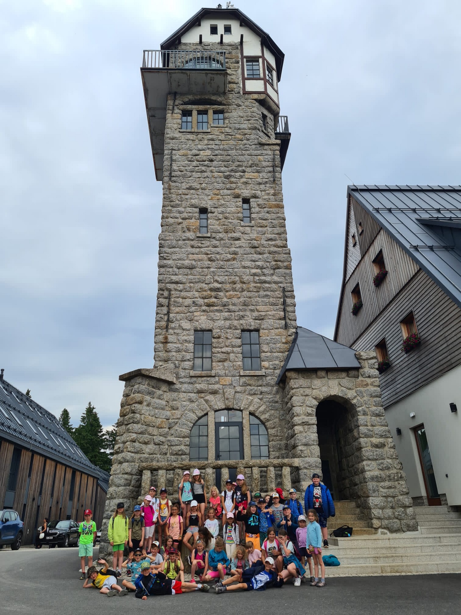 V úterý ráno jsme se probudili do slunného dne. Po ranní rozcvičce a vydatné snídaní jsme si procvičili psaní dopisu. Naše pohledy mířily do Velkých Přílep k našim rodičům. Doufáme, že přijdou dříve, než se vrátíme zpět domů. Před obědem si děti zvládly procvičit  své znalosti z prvouky ve formě bojovky. Odpoledne nás čekala 11 km dlouhá túra po okolí. Naším cílem byla rozhledna Královka, která je jednou z nejznámějších kamenných rozhleden v Jizerských horách a která stojí na hoře Nekras. Cestou jsme minuli vodní nádrž Josefův důl, která slouží jako zásobárna pitné vody pro Jablonec, Liberec a Českolipsko.