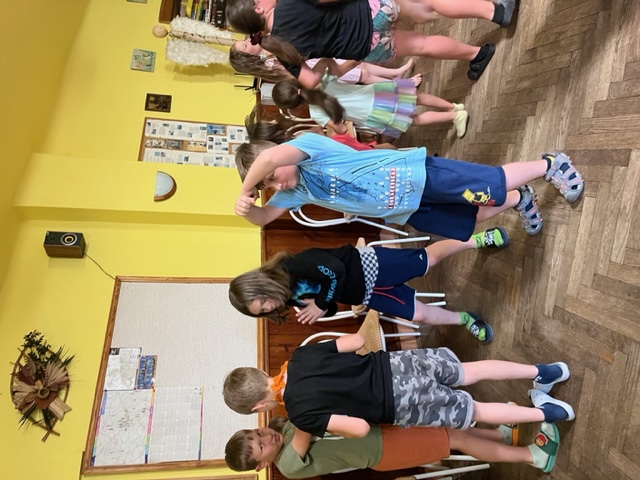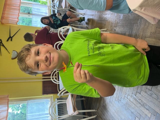 Před večeří si děti společně zahrály kolektivní hry a stavěly domečky pro skřítky.