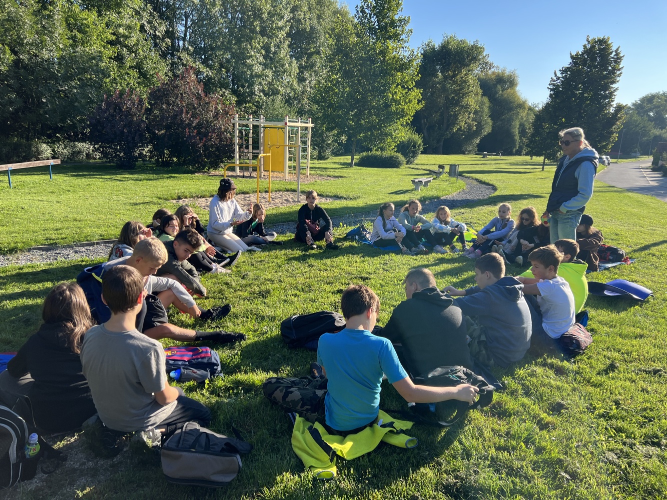 Hned první hodiny tělesné výchovy a přírodovědy jsme se žáky V. B vyrazili do nejbližší „dendrologické zahrady“ – parku v ulici Dany Medřické v naší obci. Opakovali jsme znalosti o dřevinách teoreticky i prakticky a k tomu také v připravené hře využili umístěné popisky s názvy dřevin.