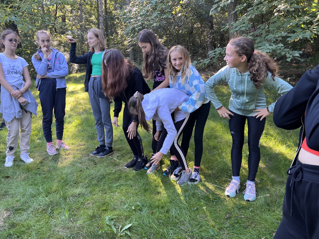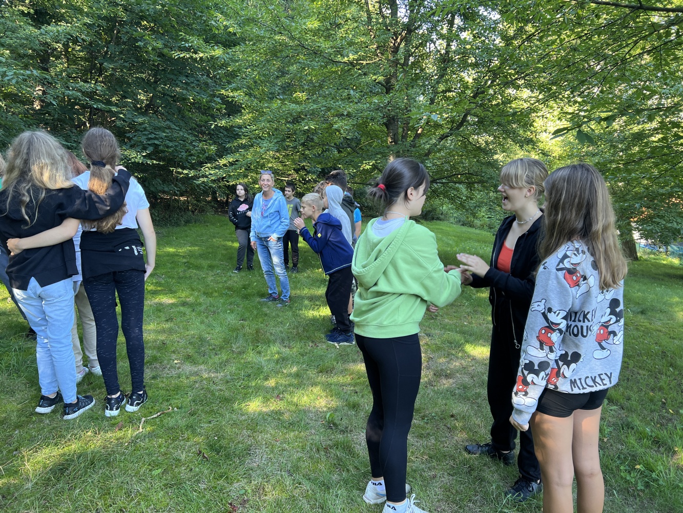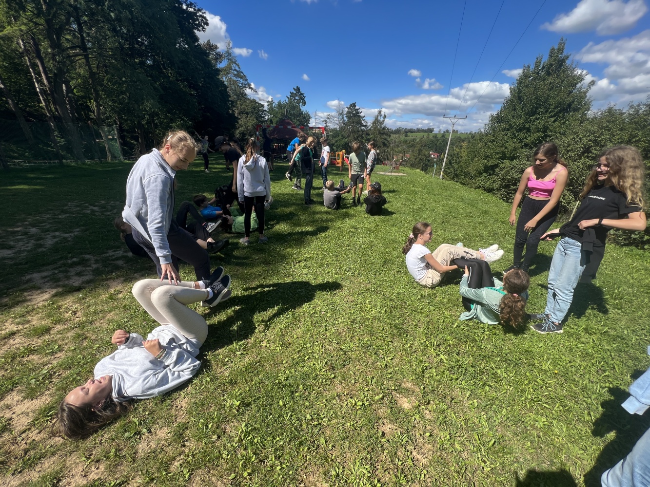 Nejvíce se děti bavily u seznamovací aktivity „kompot“, která nejen všechny rozesmála, ale zároveň i posílila stehenní svalstvo :). Na programu dne byla také hodinová vycházka do okolí či později míčové hry. Z míčových her pak jednoznačně vedl u kluků fotbal a u dívek volejbal. Některé děti naopak daly přednost společenským hrám či povídání s paní učitelkami….