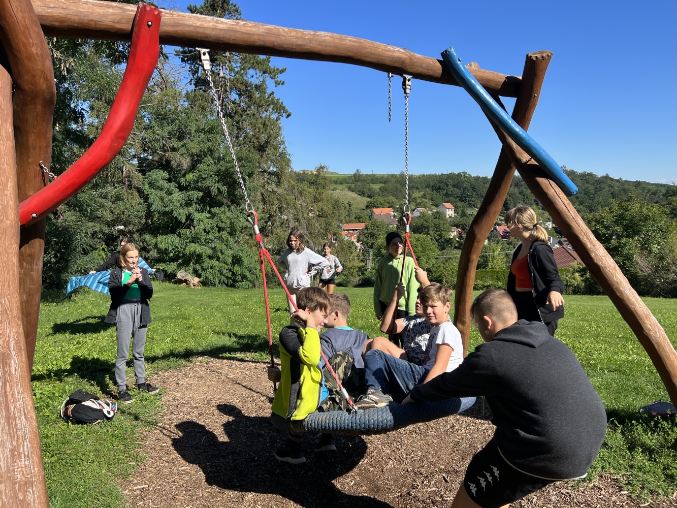 Byl čas i na volnou hru – využití zázemí přílepského hřiště nad rybníčkem a pak Švestkovny, čas řádně posvačit, poklábosit s kamarády a seznámit se s novými dětmi ve třídě.
