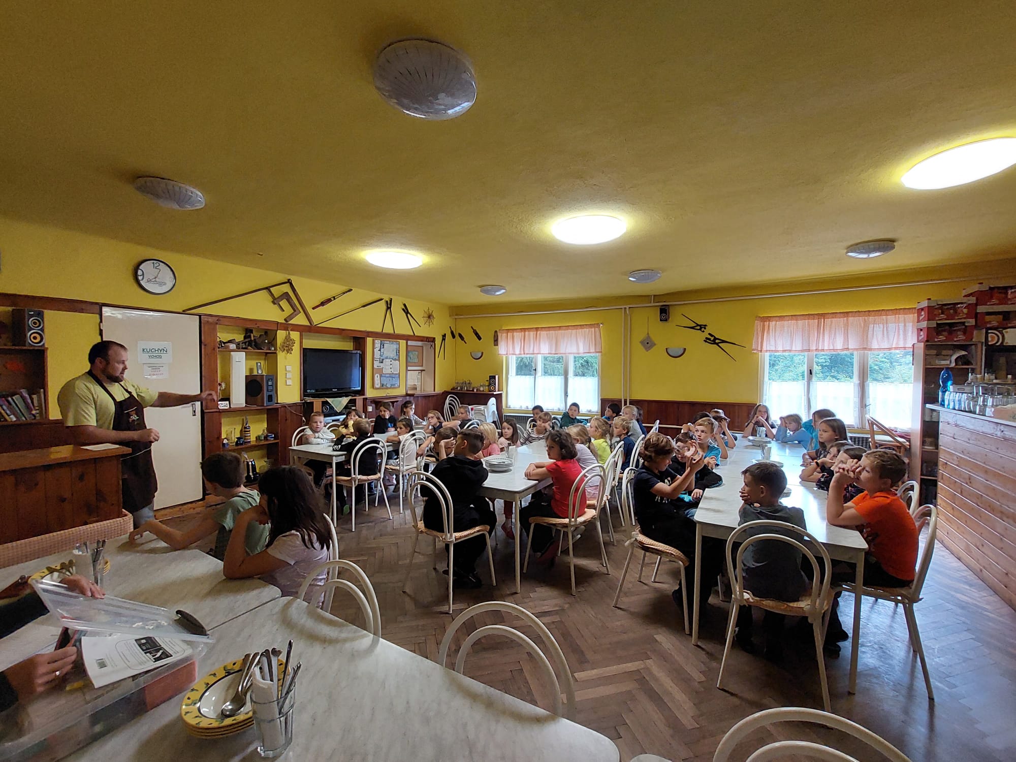 Děti si seznamovací kurz konaný 5. 9. 2022 opravdu užily. Po rozpuštění ranní mlhy vykouklo hřejivé sluníčko a po dopoledni stráveném ve vnitřních prostorách při řadě aktivit jsme se těsně před obědem a po něm dostali i ven.