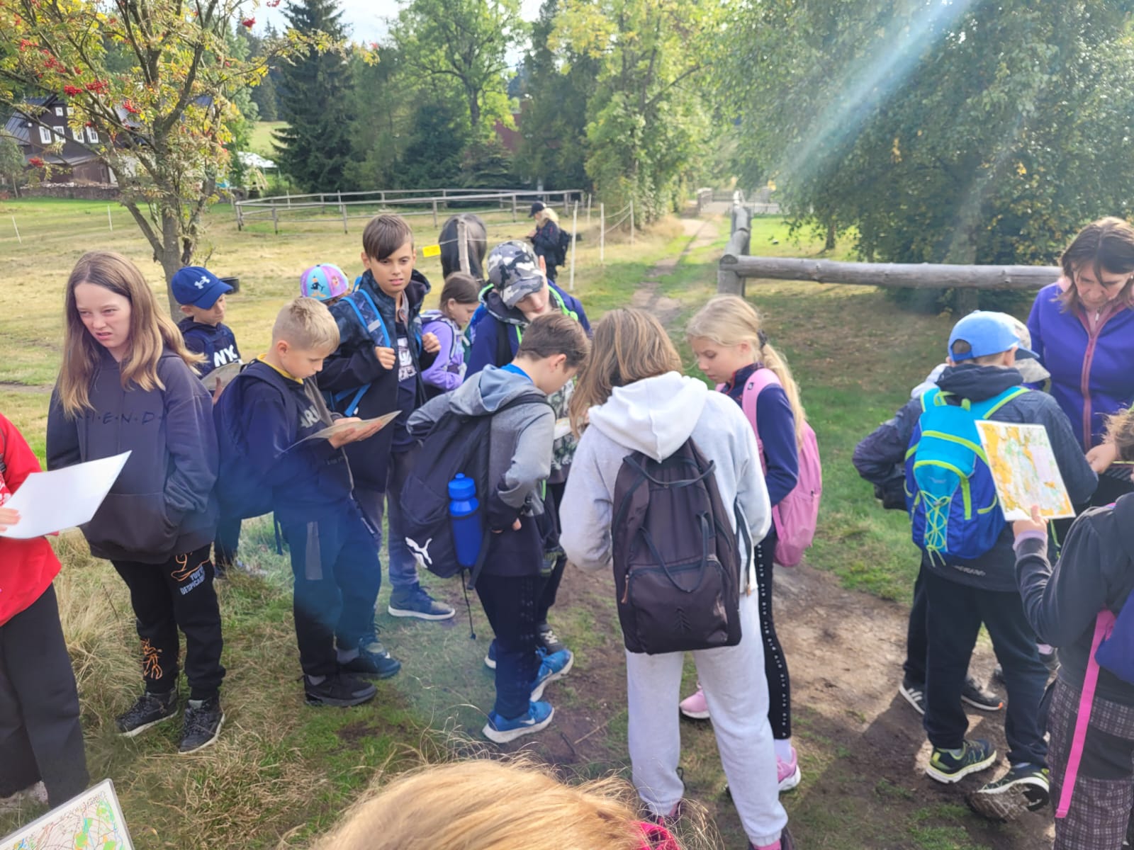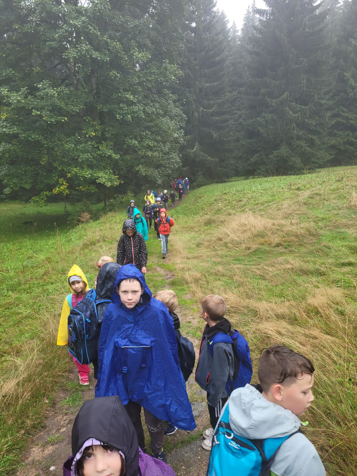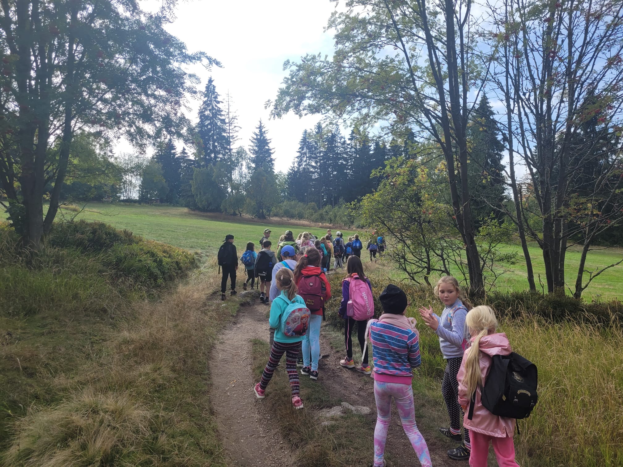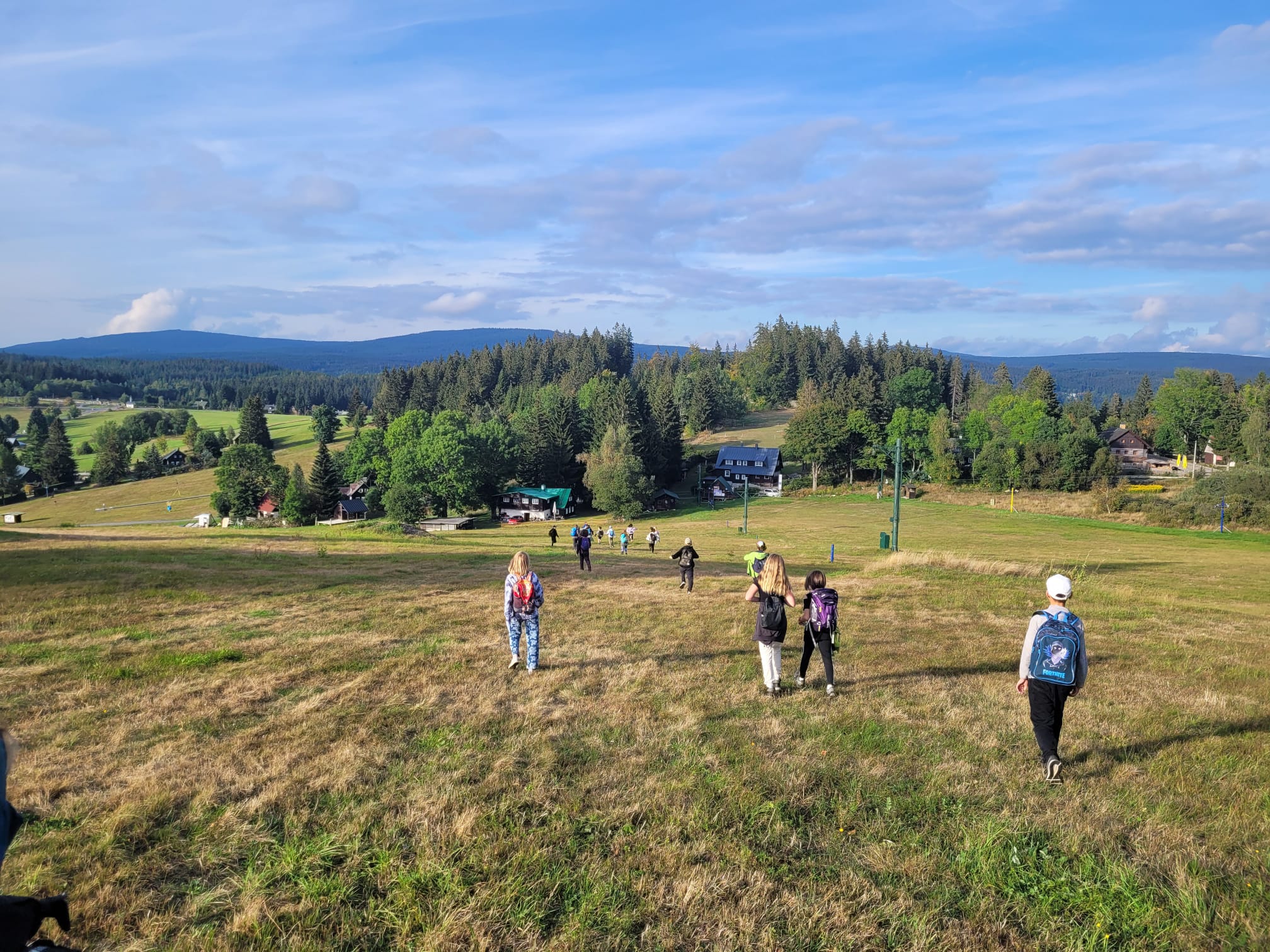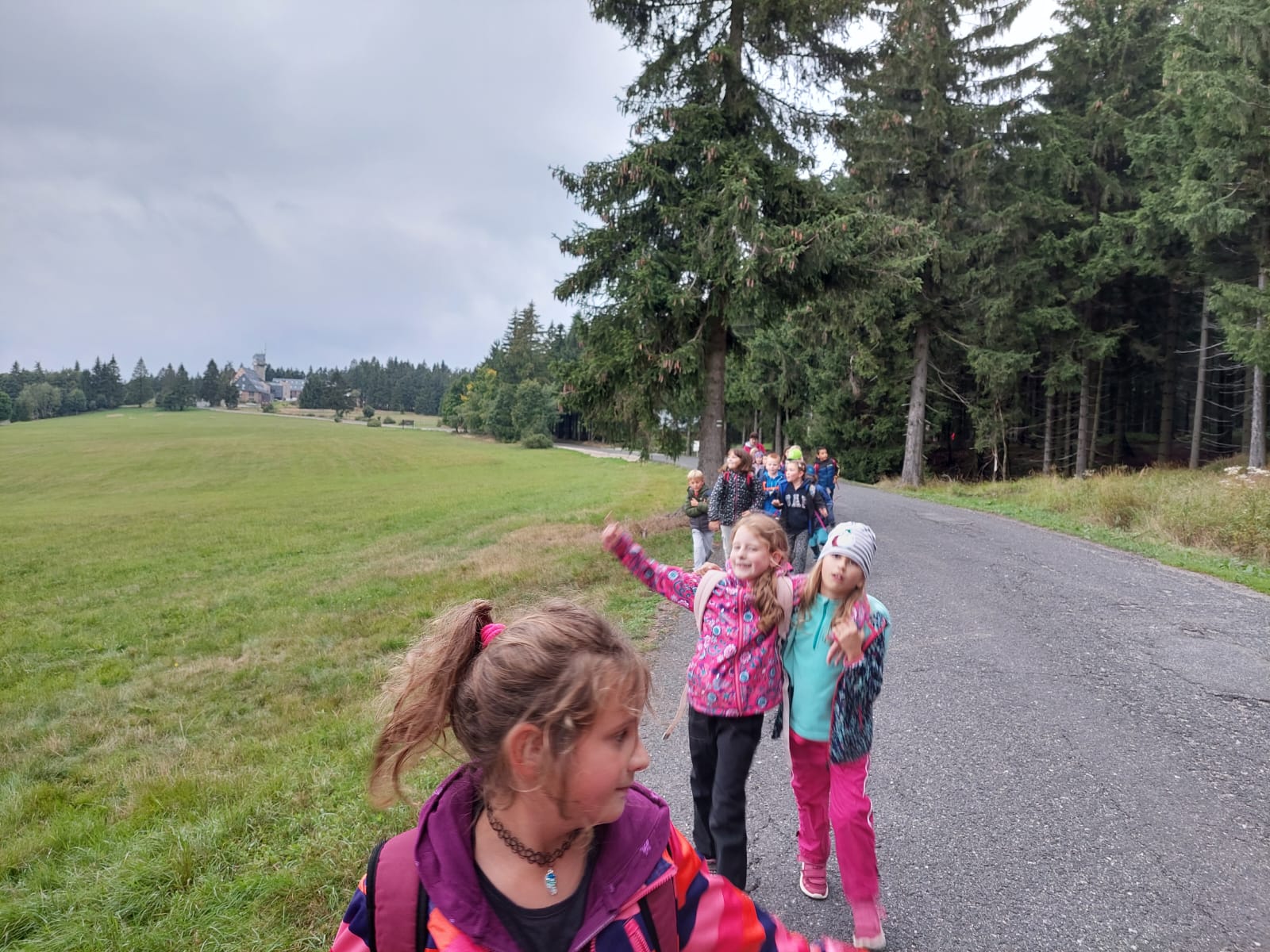 Cesta do Jizerských hor proběhla klidně a po uvítacím obědě, který byl výborný, obě třídy vyrazily do přírody. Poznávali jsme blízké okolí chaty Slovanka a zahráli si několik her.