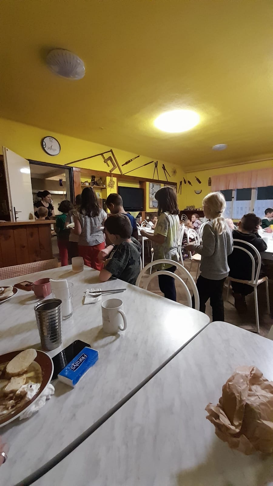 Na Slovance na nás čekala výborná svíčková, kterou si někteří z nás přidali i dvakrát. Ostatně všechna jídla jsou tu skvělá, chutná nám všechno a je nám tu moc fajn!
