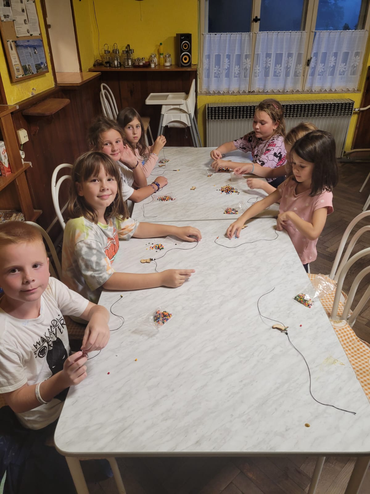 Hurááá, nejsme z cukru! Dnes nám počasí sice tolik nepřálo, ale nás to neodradilo, a tak jsme se vydali na celodenní túru do osady Kristiánov, kde jen pro nás dnes mimořádně otevřeli sklářské muzeum. Moc hezky se o nás postarali, uvařili teplý čajíček, dozvěděli jsme se o výrobě skla a ještě si odnesli knížečku s hrou O skláři Lišákovi. K tomu jako dárek dostal každý pytlíček s korálky, ze kterých jsme si vyrobili náhrdelníky nebo náramky.