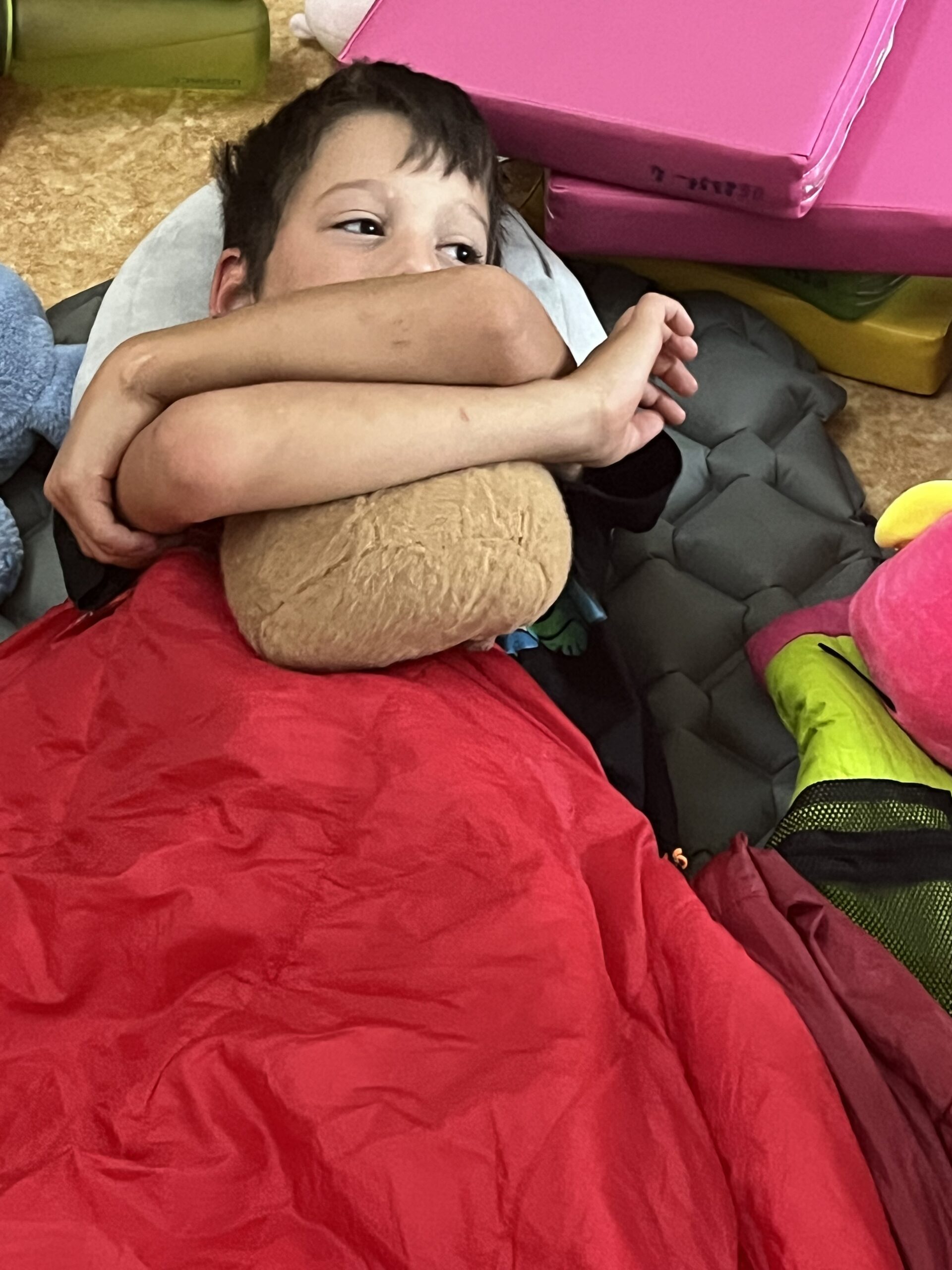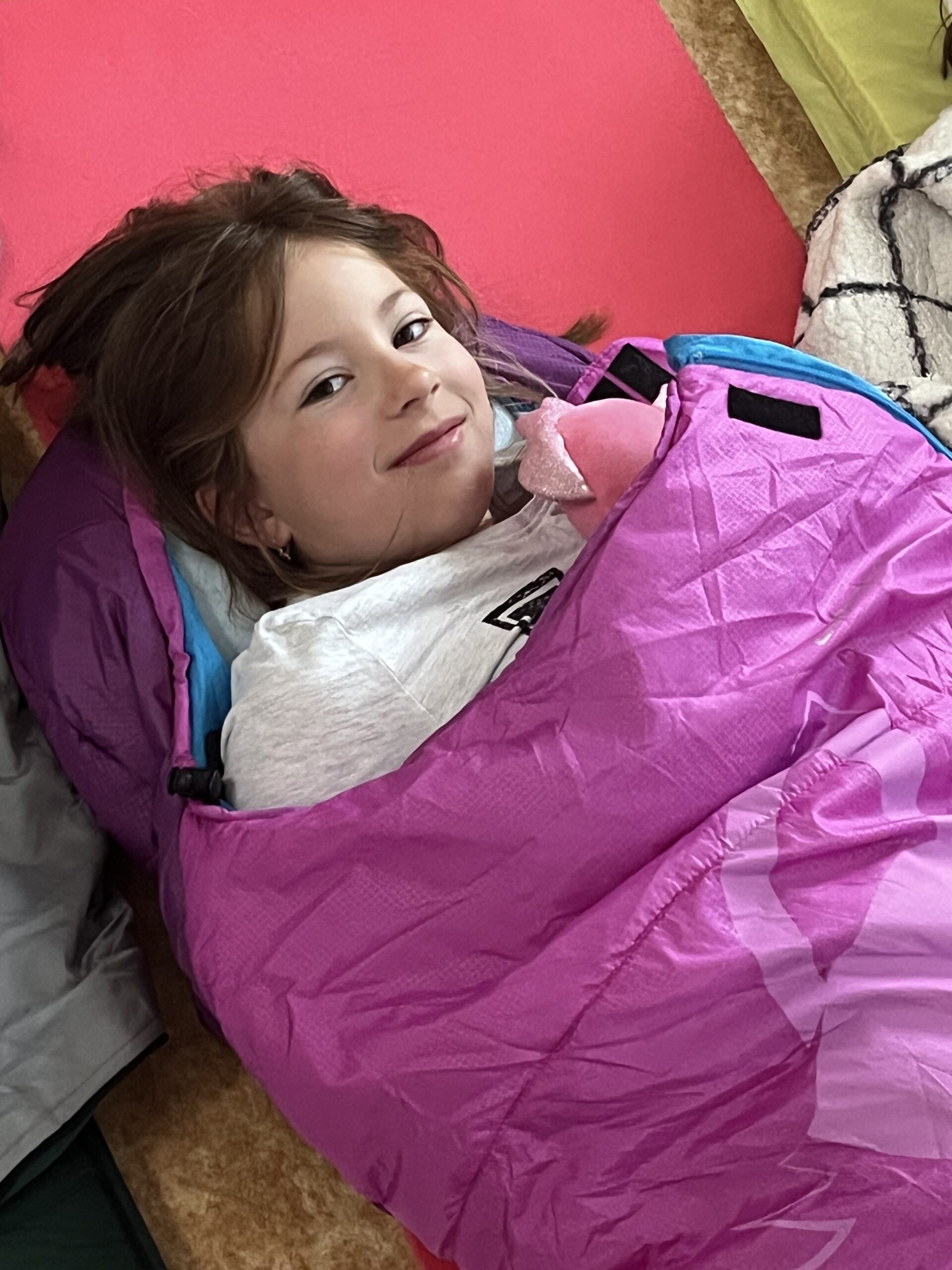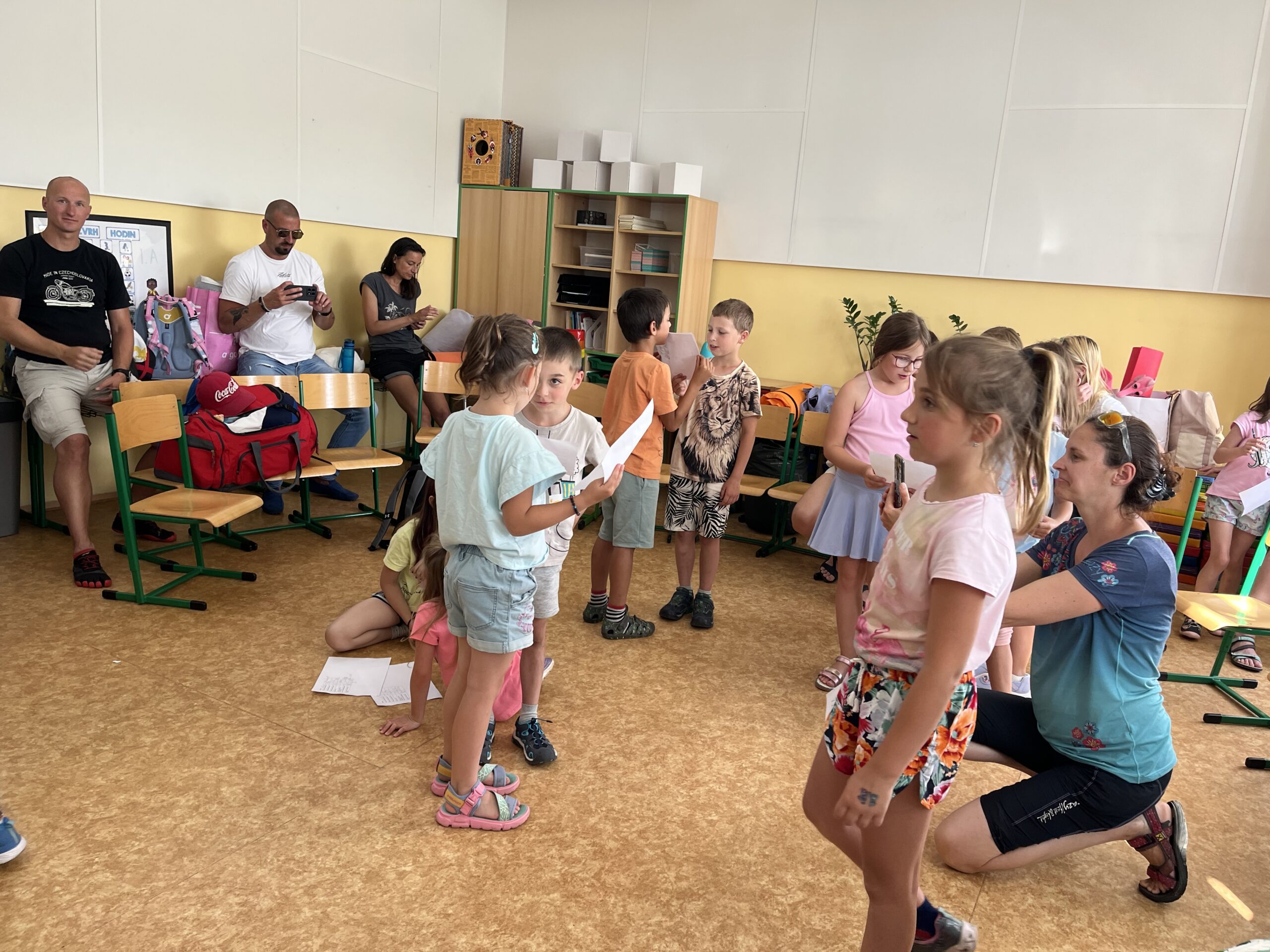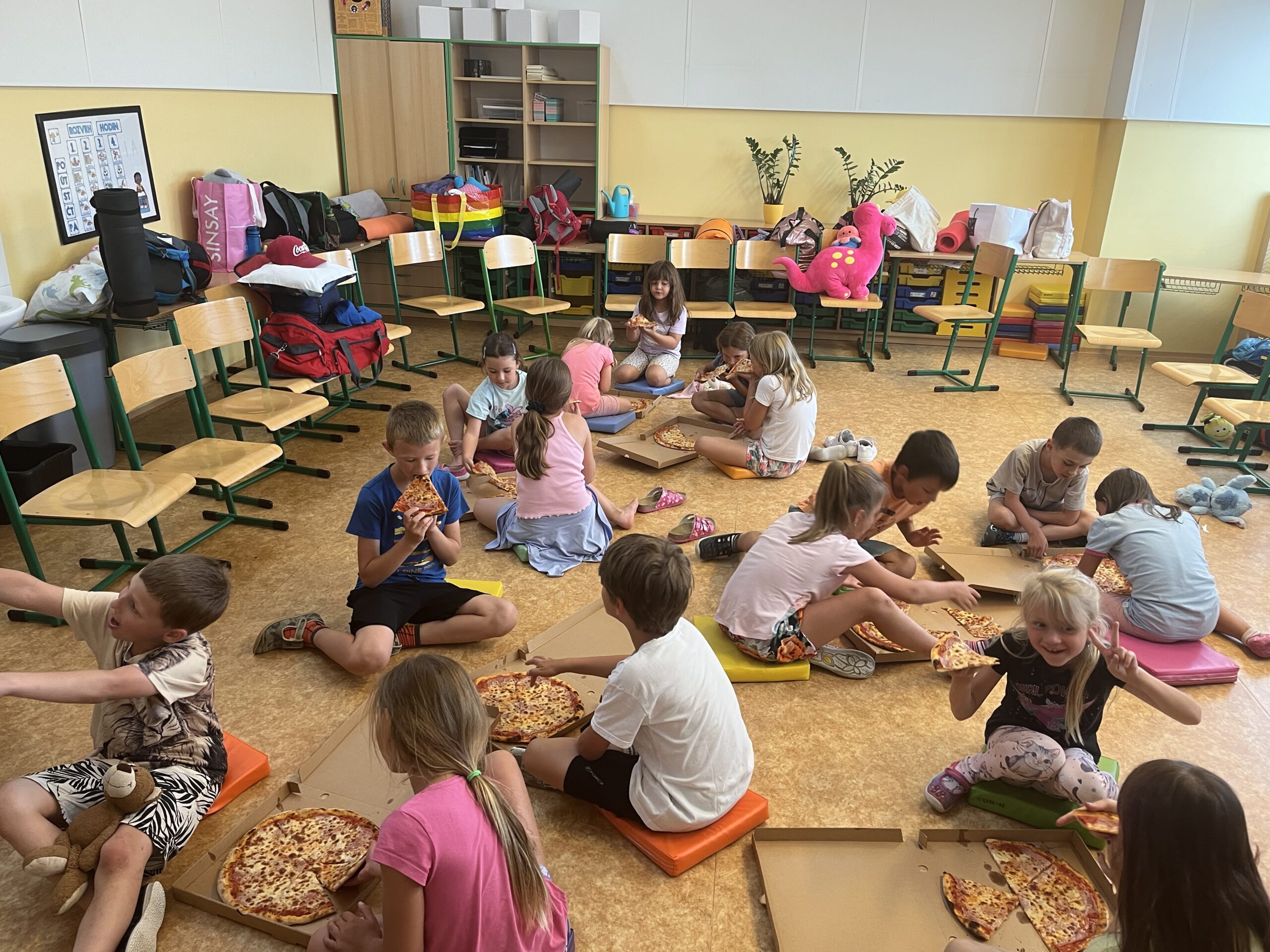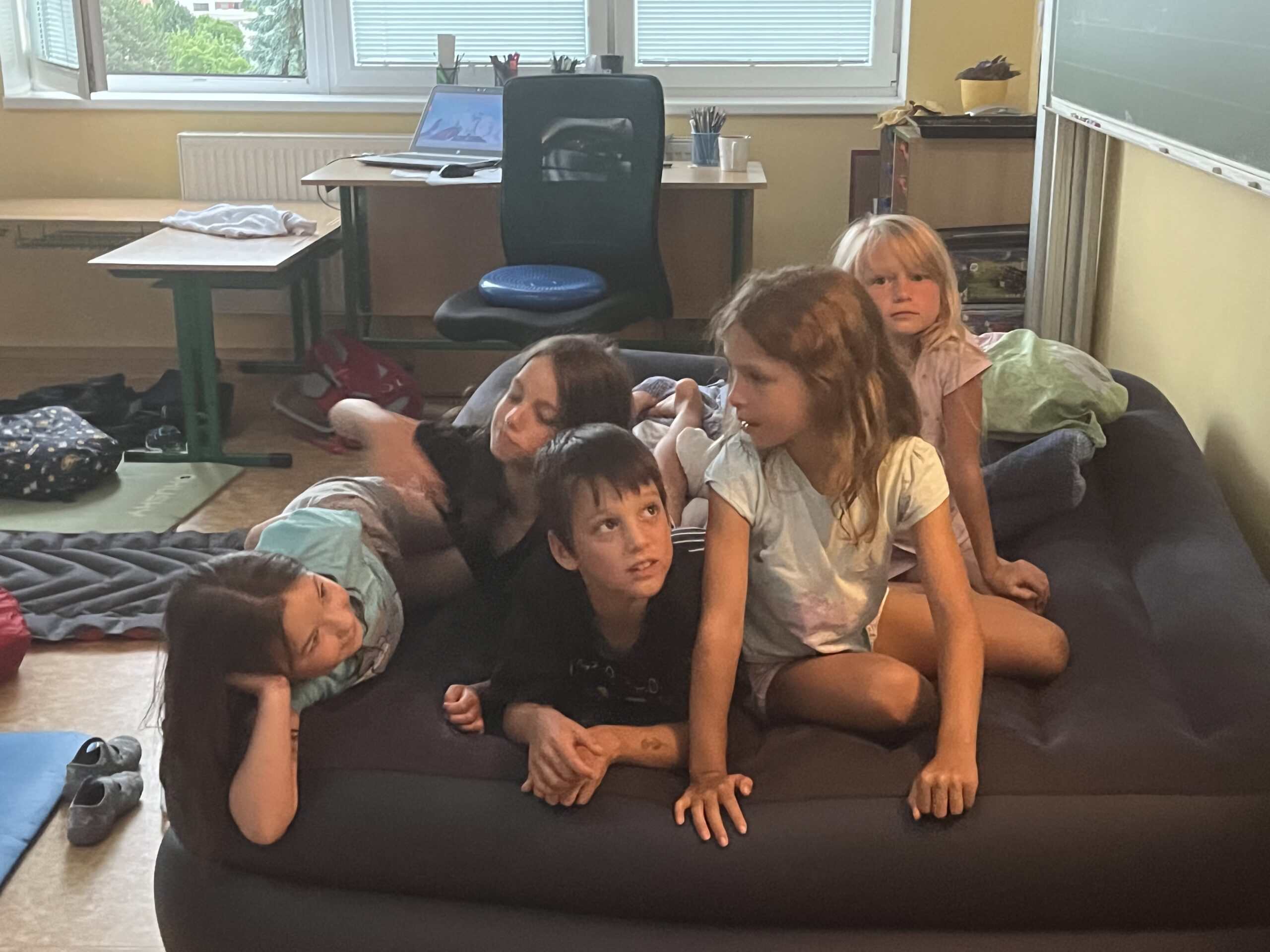 Večer odstartoval setkáním dětí a jejich rodičů. Společně jsme si zahráli zábavnou hru zaměřenou na stmelení kolektivu, což byla skvělá příležitost pro všechny, aby se lépe poznali a odreagovali se. Po odchodu rodičů se děti pustily do výborné večeře – pizzy, po které následovala příprava na noc. Rozložili jsme spacáky, nachystali si pohodlná místa a večer zakončili sledováním oblíbené pohádky. Usínání ve škole byl pro mnohé úplně nový zážitek, který si náramně užívali.