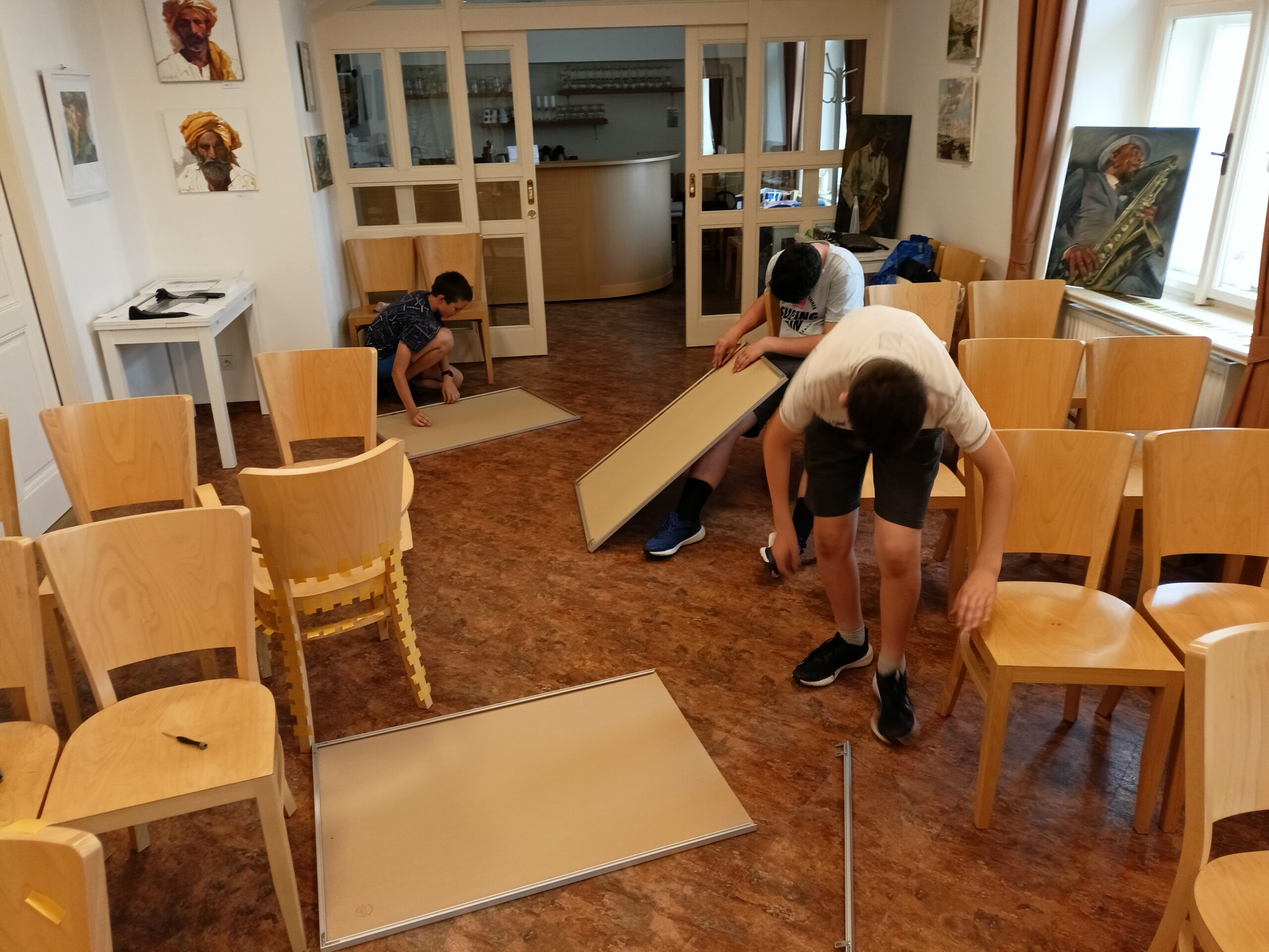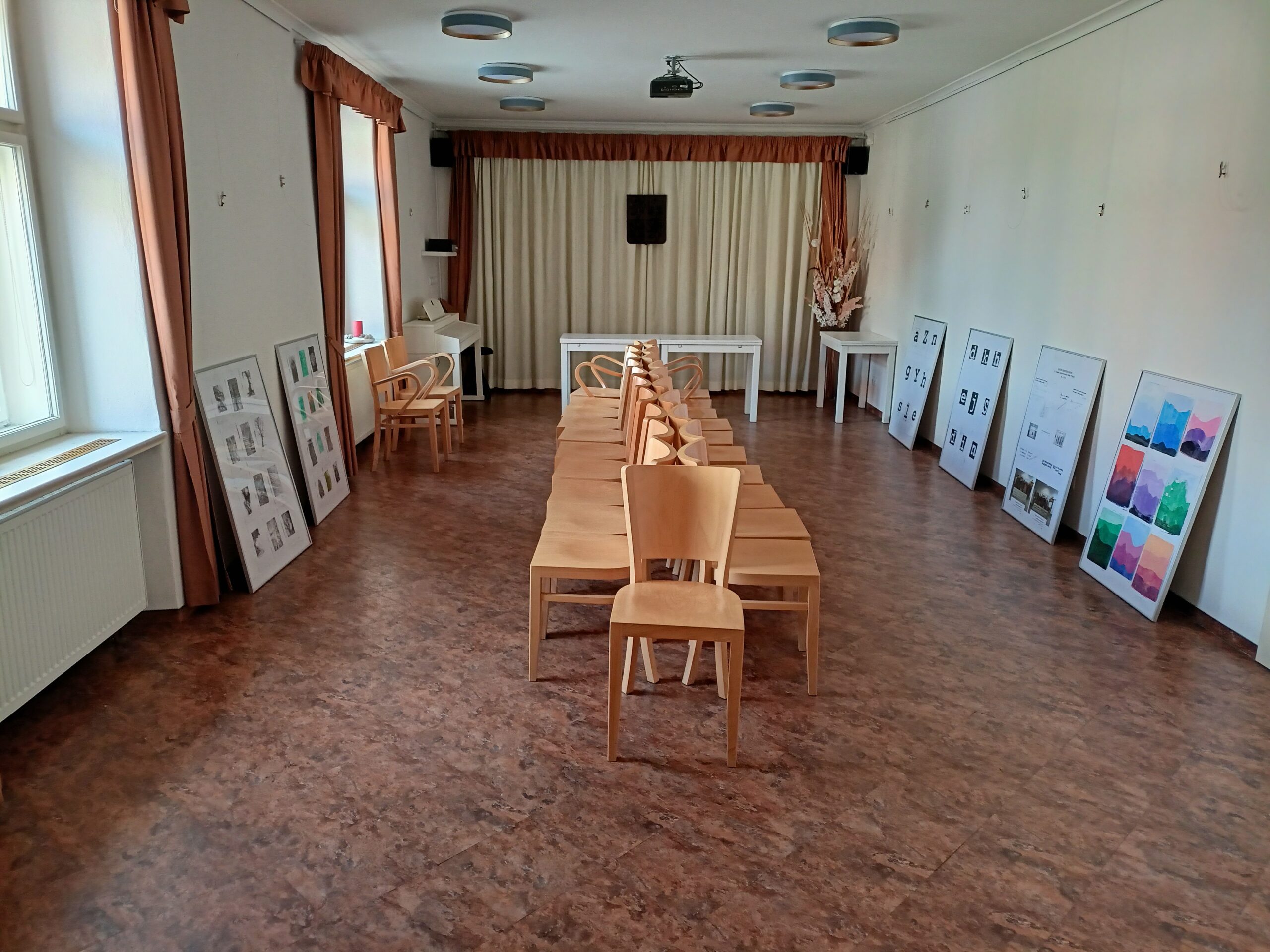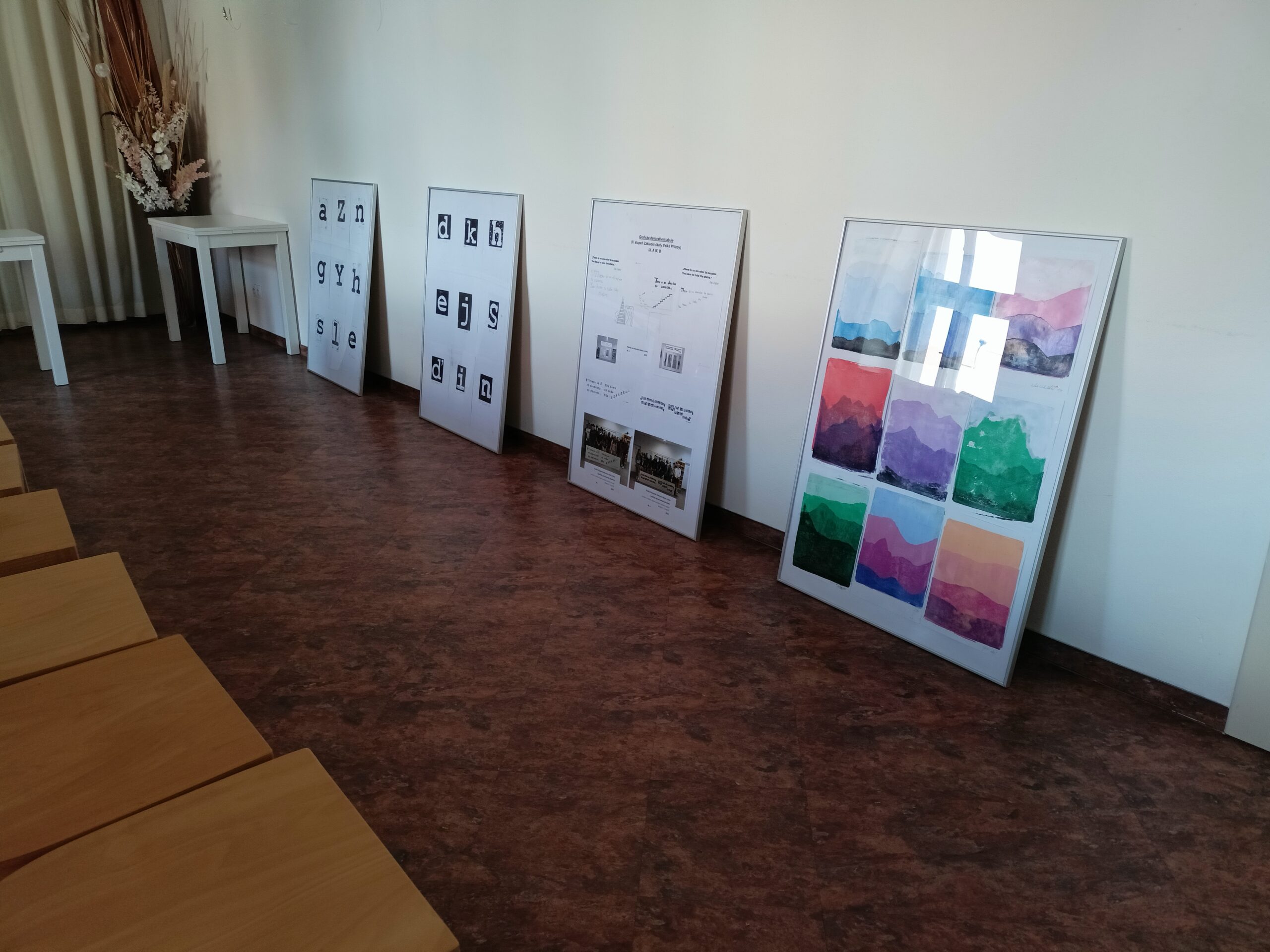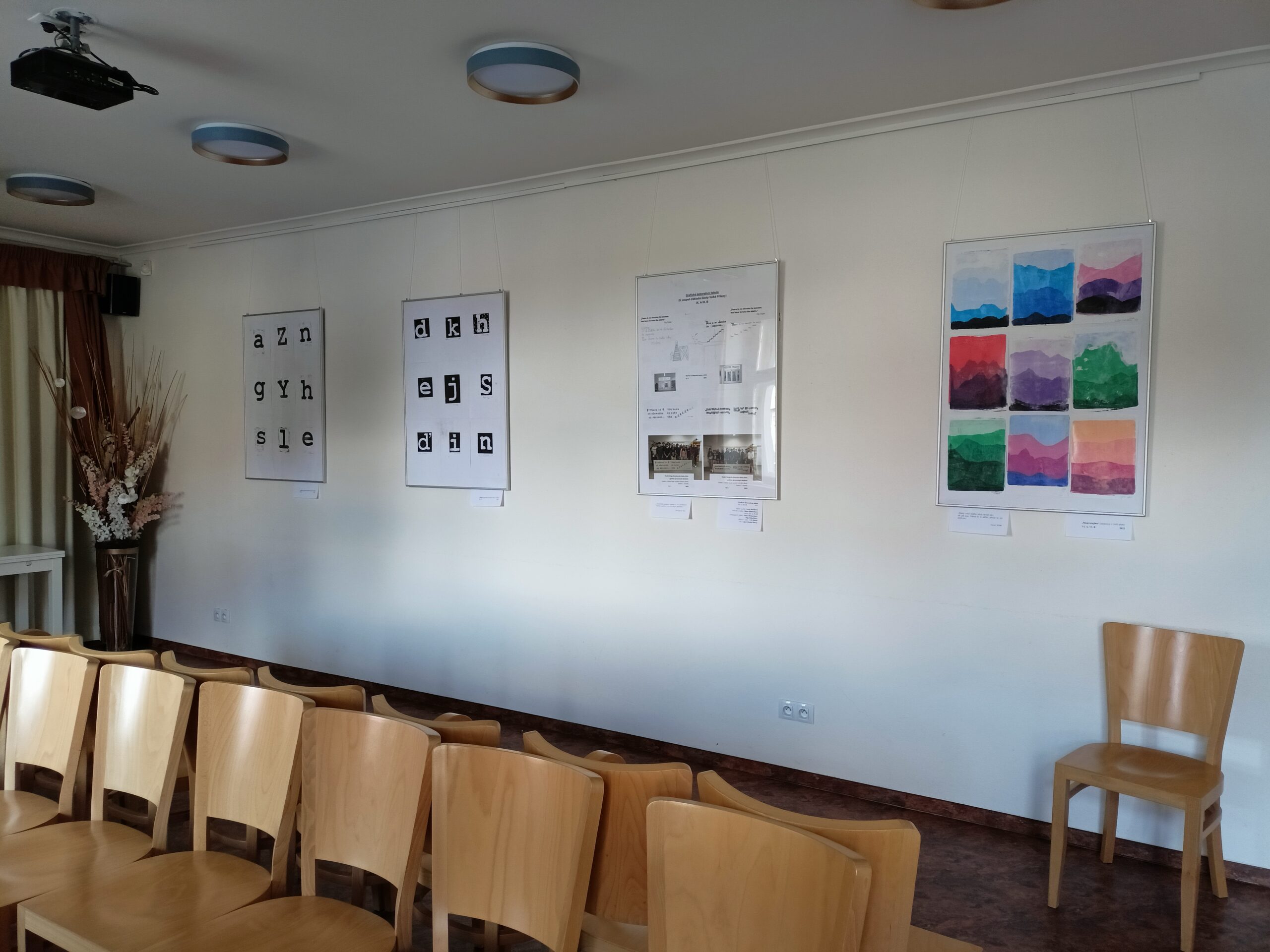 Grafické cedule v interiéru II. stupně Základní školy Velké Přílepy (tvorba žáků IX. A a IX. B)