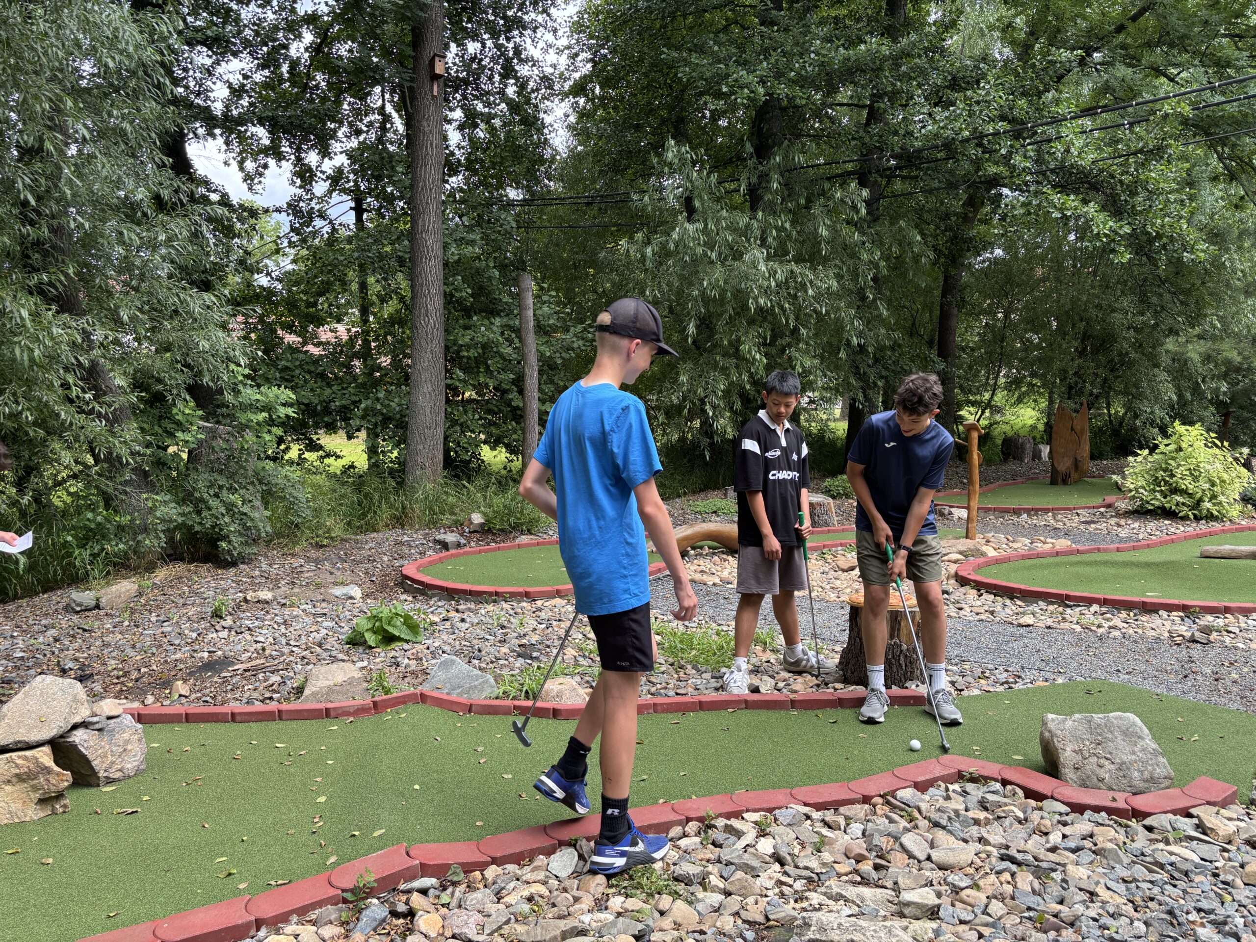 Zlatým hřebem dopoledne byla zastávka na minigolfu v Číčovicích, kde jsme si nejen zasoutěžili v přesnosti odpalu, ale také si dopřáli zaslouženou pauzu s pizzou a studeným pitím. Nabité baterky nám přišly vhod, protože nás čekala ještě část trasy s drobnými výzvami.